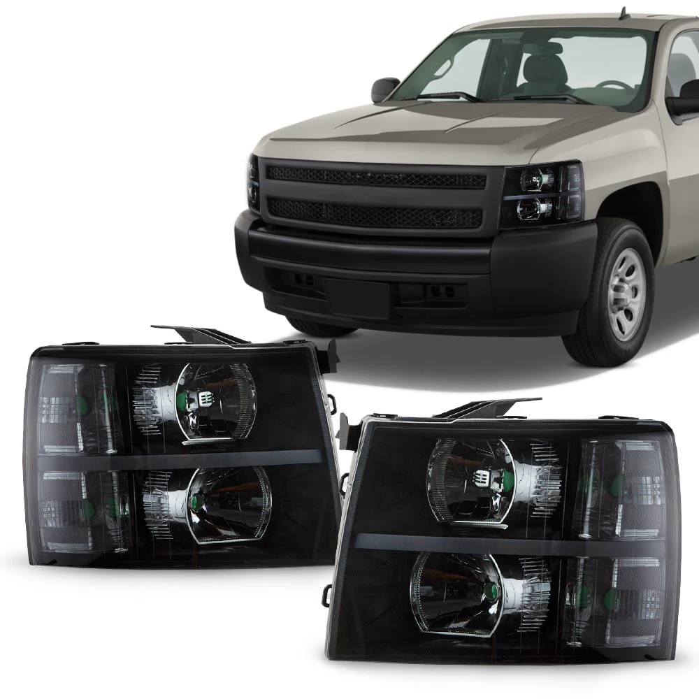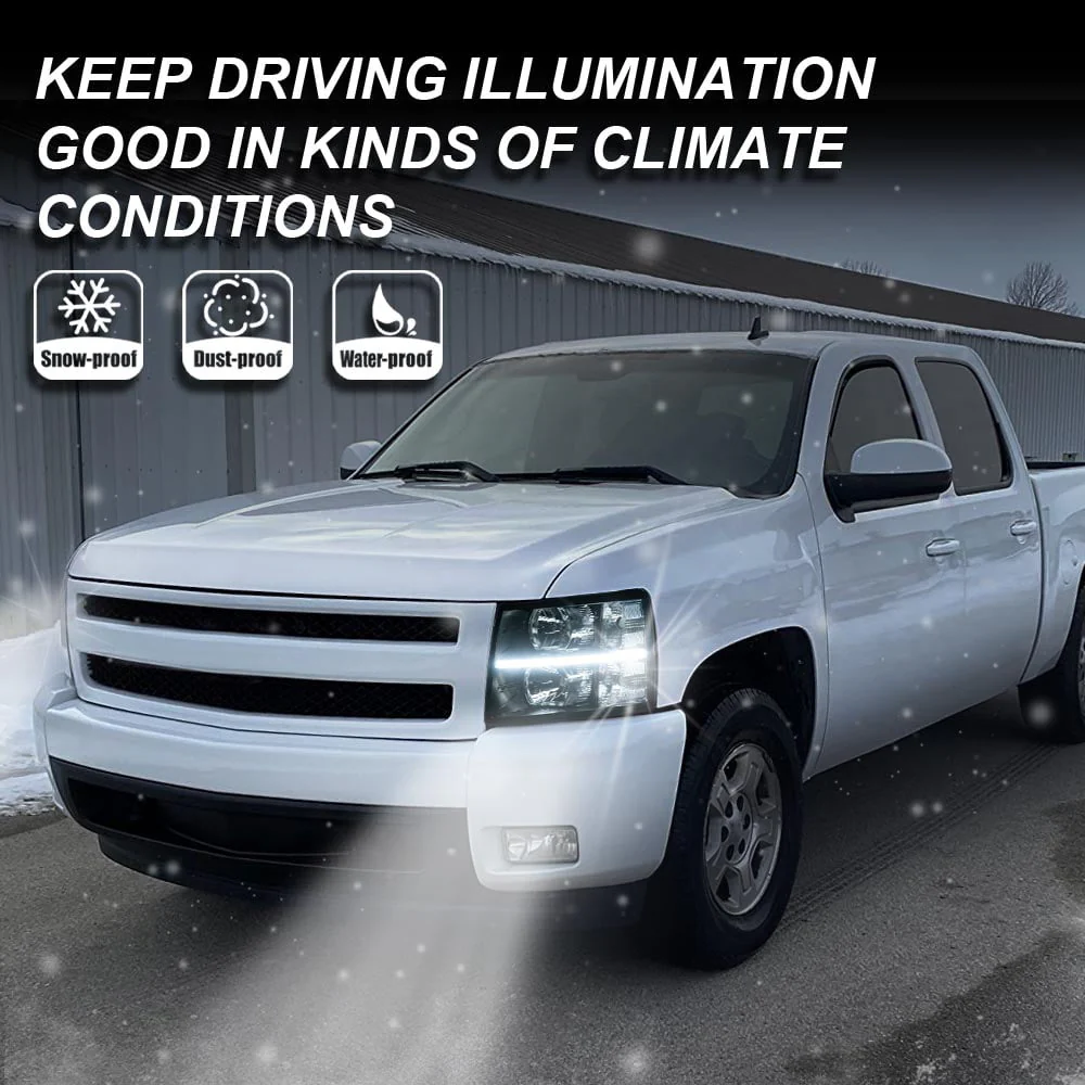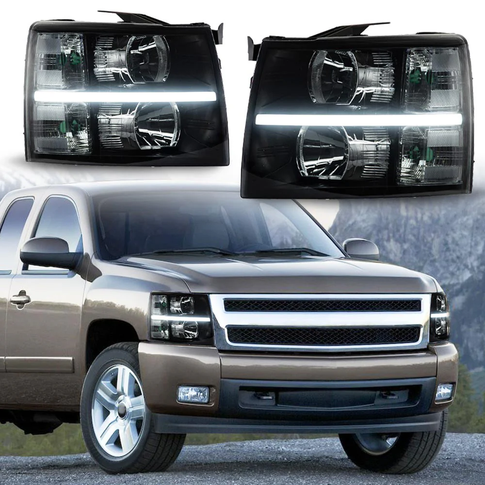 G-Plus Headlights Assembly Fit for 2007-2014 Chevy Silverado LED DRL Strip Headlamps