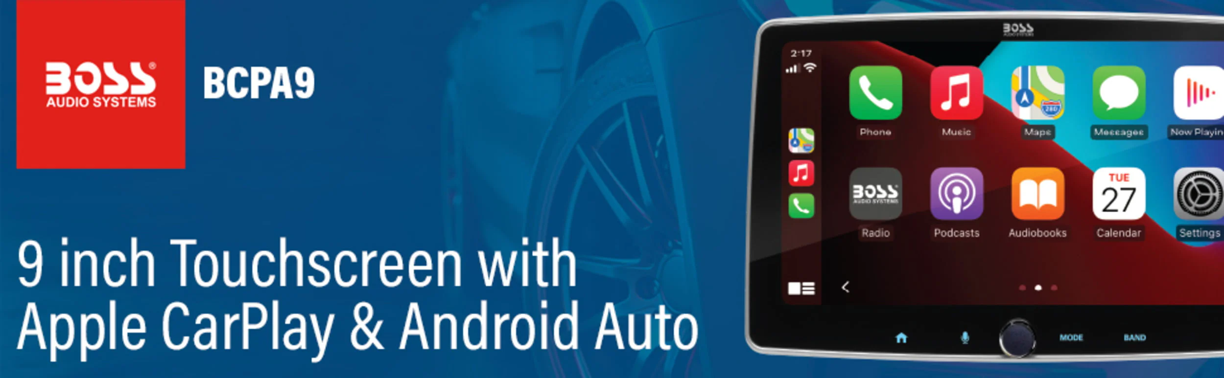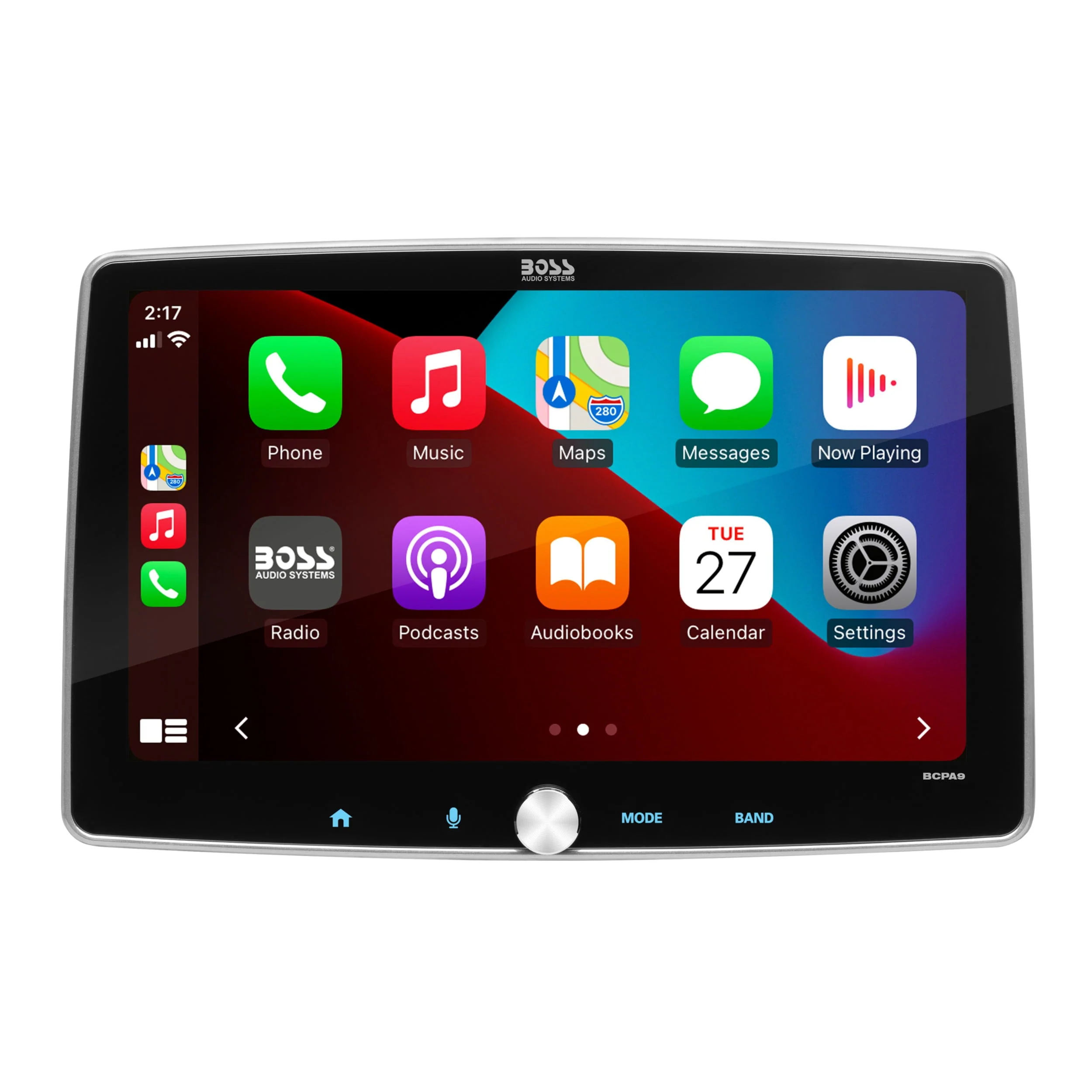 BOSS Audio Systems BCPA9 Car Audio Stereo System - Apple CarPlay, Android Auto, 9 Inch Single Din, Bluetooth Audio and Calling Head Unit, Detachable Touchscreen, Radio Receiver, Amplifier Single Din Chassis, Detachable 9 Inch Touchscreen and Double DIN conversion brackets, Apple CarPlay, Android Auto, Bluetooth, No DVD, RGB Illumination, High Res Flac Audio Choose Apple and third-party iOS apps as well as Android Auto to link to the Apple CarPlay built right into the BCPA9 car multimedia Head Unit. A Single Din chassis supports a detachable 9�?capacitive touchscreen with Double DIN conversion brackets. You will be able to easily select CarPlay related icons as well as all other system settings and configurations with the big 9�?monitor. Siri voice controls assists you with directions, looks for points of interest, checks your messages / replies to them, plays music and more. Hook your Smartphone or MP3 player up to the auxiliary input, tune into AM/FM radio stations, or plug into the USB port for more choices in music. You can charge USB devices with the USB port. Bluetooth technology lets you play and control music apps and make calls hands-free