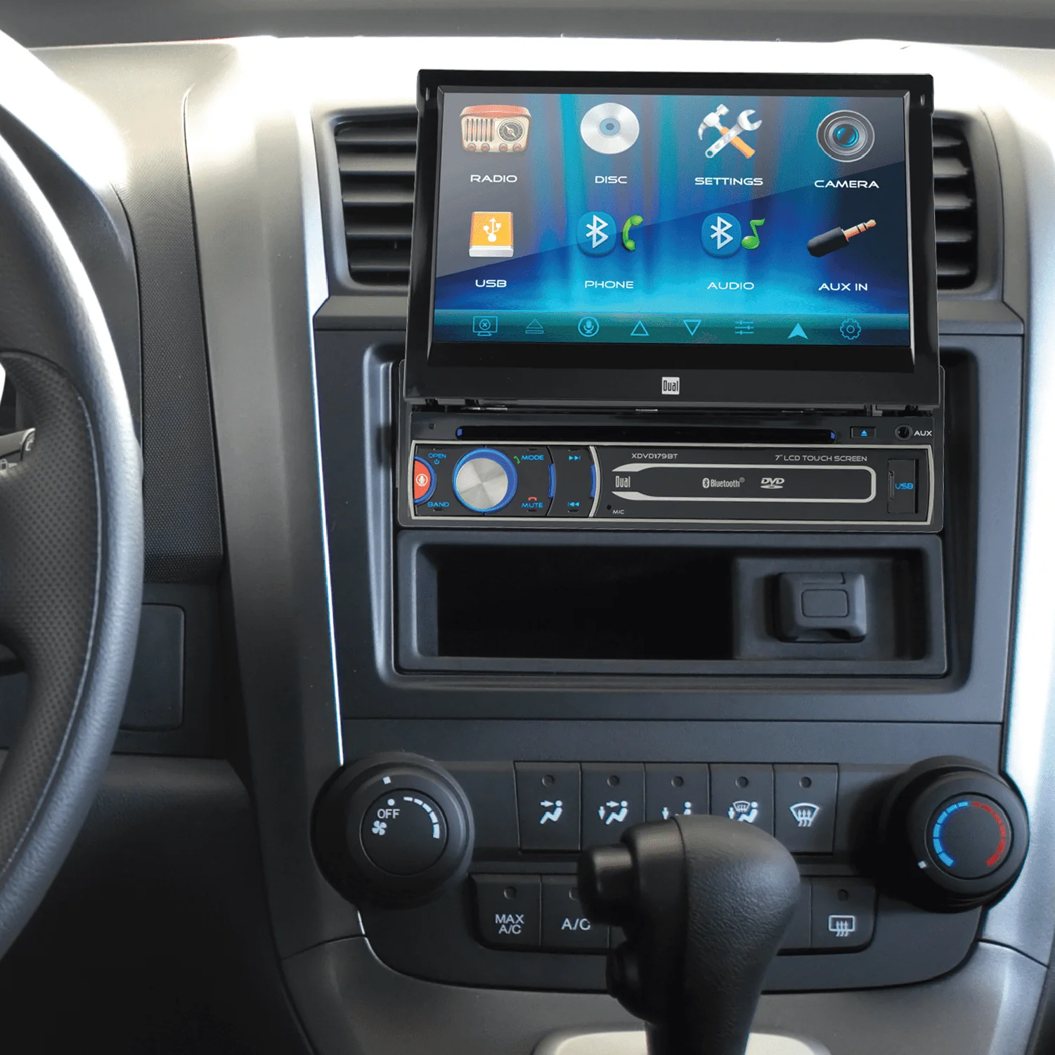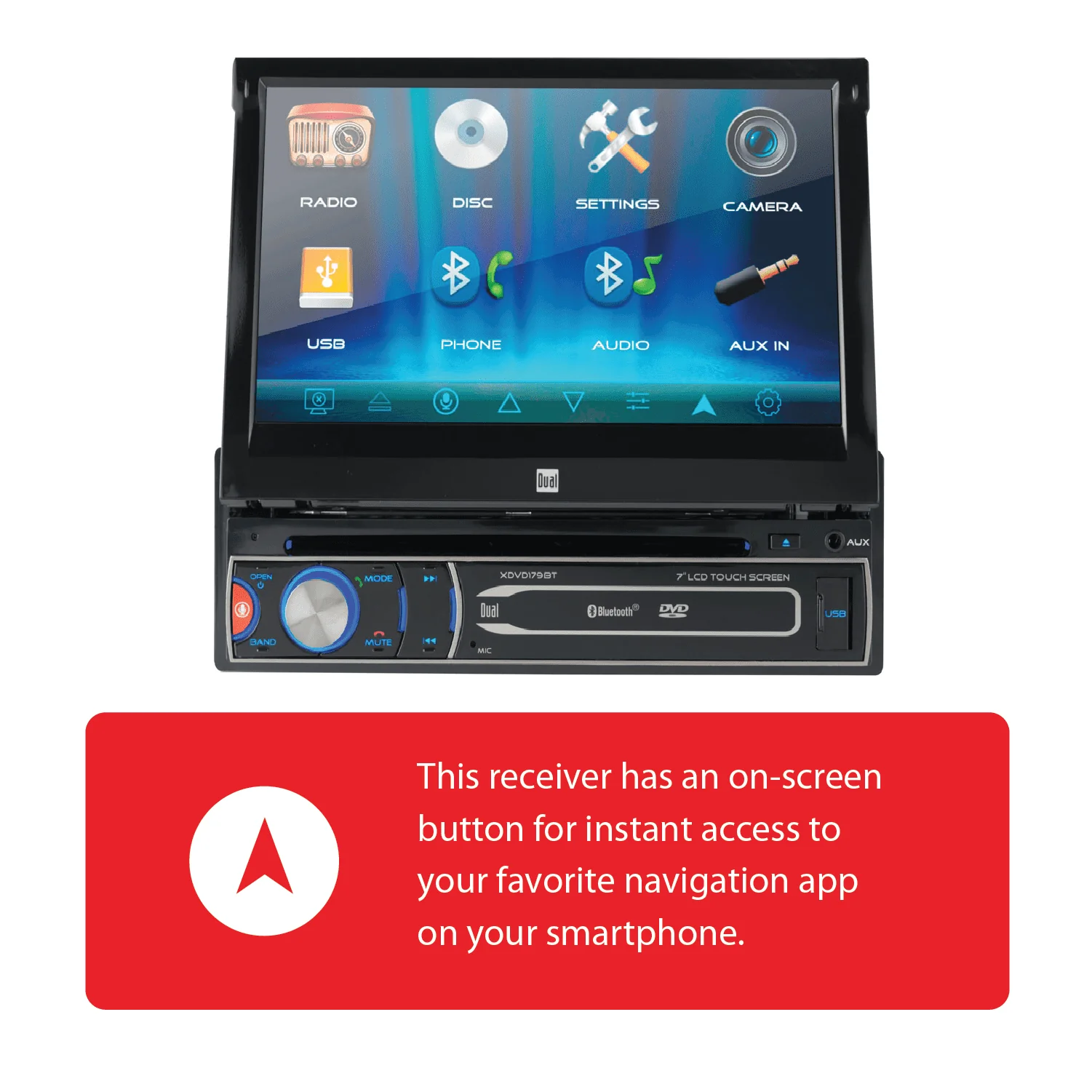 The Dual Electronics XDVD179BT 7-inch Motorized Touch Screen Single DIN Car Stereo Receiver comes with Siri/Google Voice Assist Button. With the touch of a button, you have the power to summon your favorite assistant (Siri or Google) and verbally speak your commands such as play music, podcasts, audio book, navigation and much more.