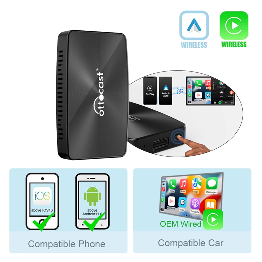 • OTTOCAST U2 - X Pro Wireless Carplay Android Auto Car Adapter 2 in 1 for Wired Carplay Cars Smart Button Faster Connection OTA Update