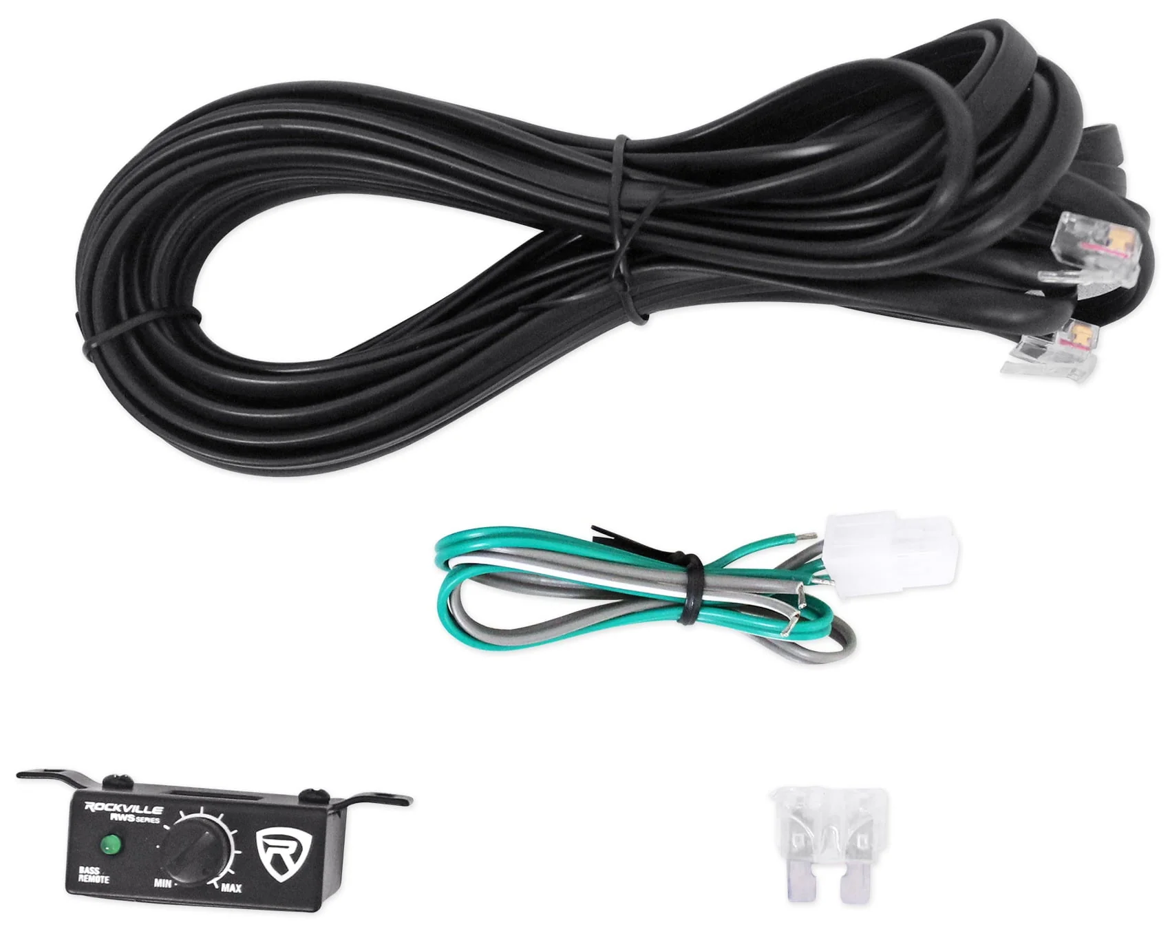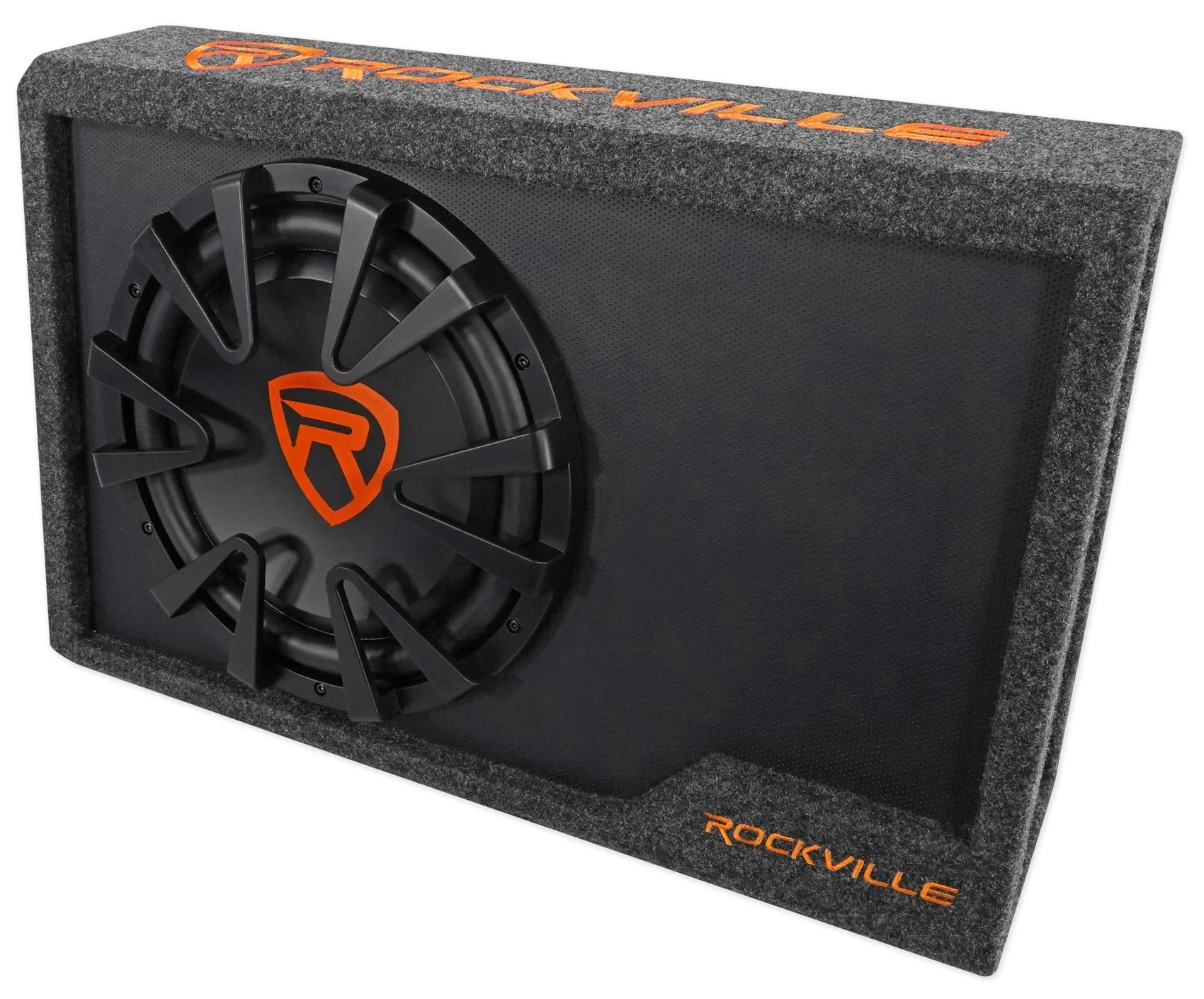 • Rockville RWS12CA Slim 1200 Watt 12" Powered Car Subwoofer Enclosure + Wire Kit