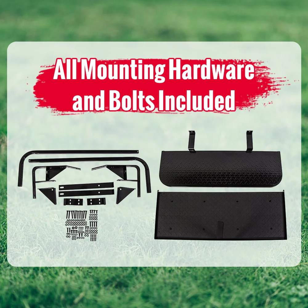 Large Flat Cargo Bed Measuring 42"W x 36"D. 1" Tall Edge, 360 Degrees All The Way Around the Flip Deck when Folded Open.Easily flip down the rear seats using the convenient cargo bed grab handle to convert your golf cart into a light utility vehicle.