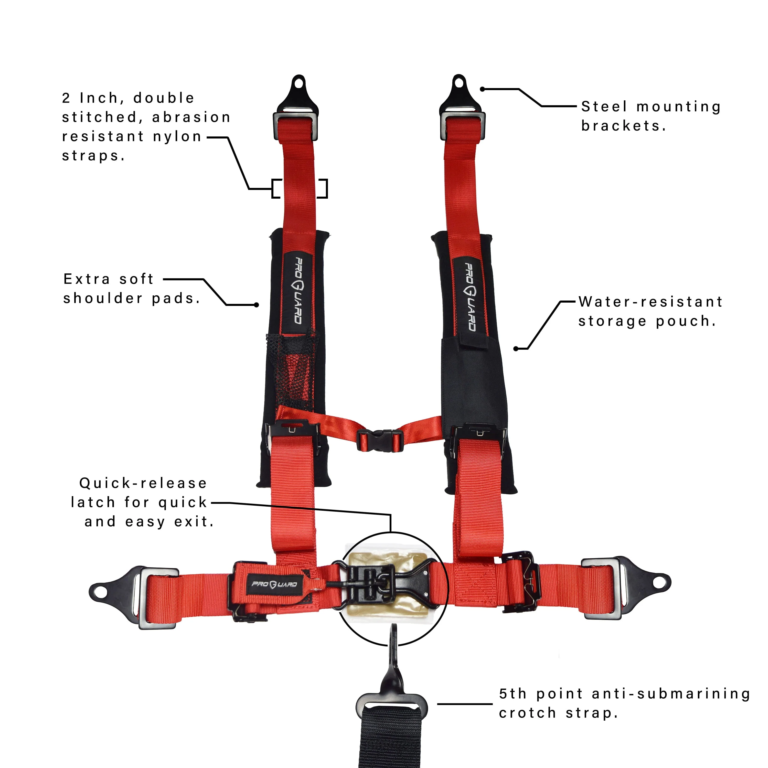 ProGuard Red 5 Point Harness 2" Straps for Off Road Vehicle, ATV, UTV, Go Kart, Buggy, Side by Side, & Rock Bouncer