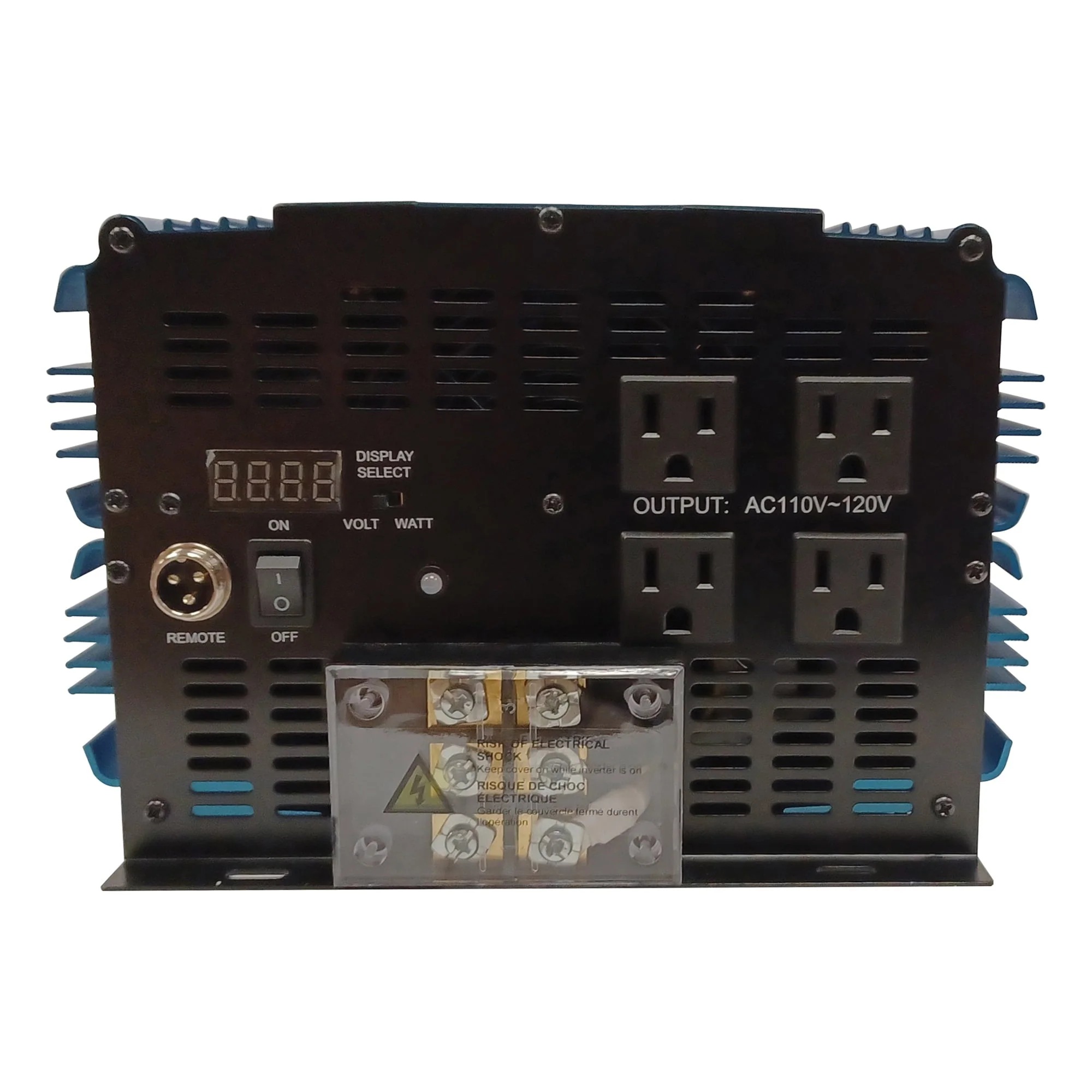 A 12-volt power inverter converts 12-volt DC power or direct current to standard AC power or alternating current, which allows you to run electrical equipment off your car or marine battery for mobile applications. The 6,000-Watt 12-Volt Modified Sine Wave Inverter from PowerBright provides 50 amps, a no-load draw of less than 0.3 amps and four three-prong AC outlets. This inverter also has an anodized aluminum case for durability, an LED display that shows input and output wattages, built-in cooling fan, internal 30-amp spade-type fuses and an overload indicator. It includes an audible low-voltage alarm and will shut down in case of overload, thermal or short circuit problems.