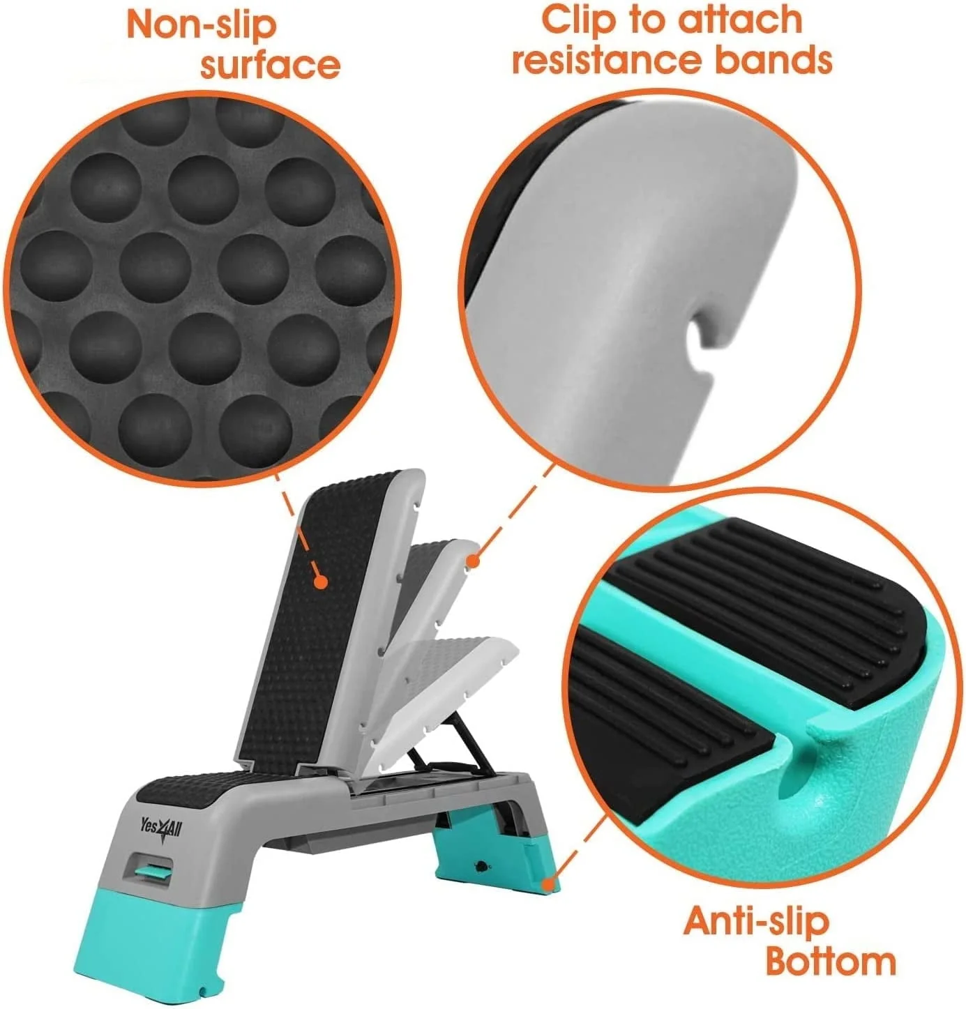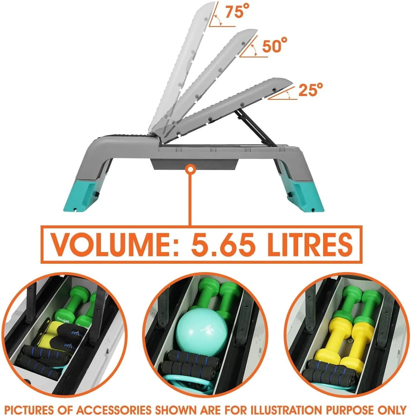 ONE OF THE MOST VERSATILE FITNESS TOOLS YOU CAN EVER FIND: With just one simple yet effective Aerobic Deck, you can do a lot of exercises like when you practice with a weight bench, aerobic stepper, plyometric box, and ramp. Moreover, you can increase or decrease the challenges by adjusting the heights, the angle positions (incline, decline, and flat), or the bracket angle (0 degrees, 25 degrees, 50 degrees, 65 degrees).