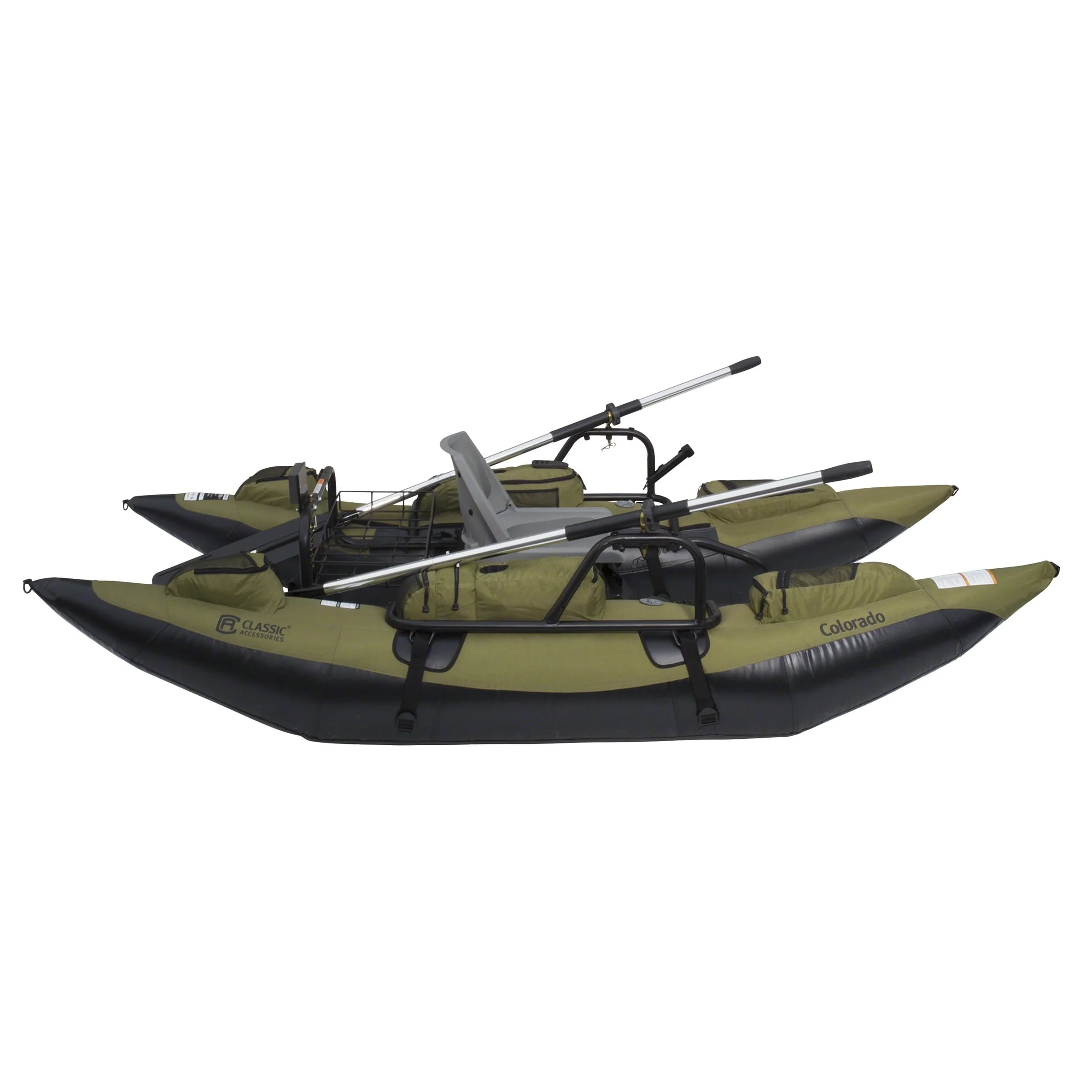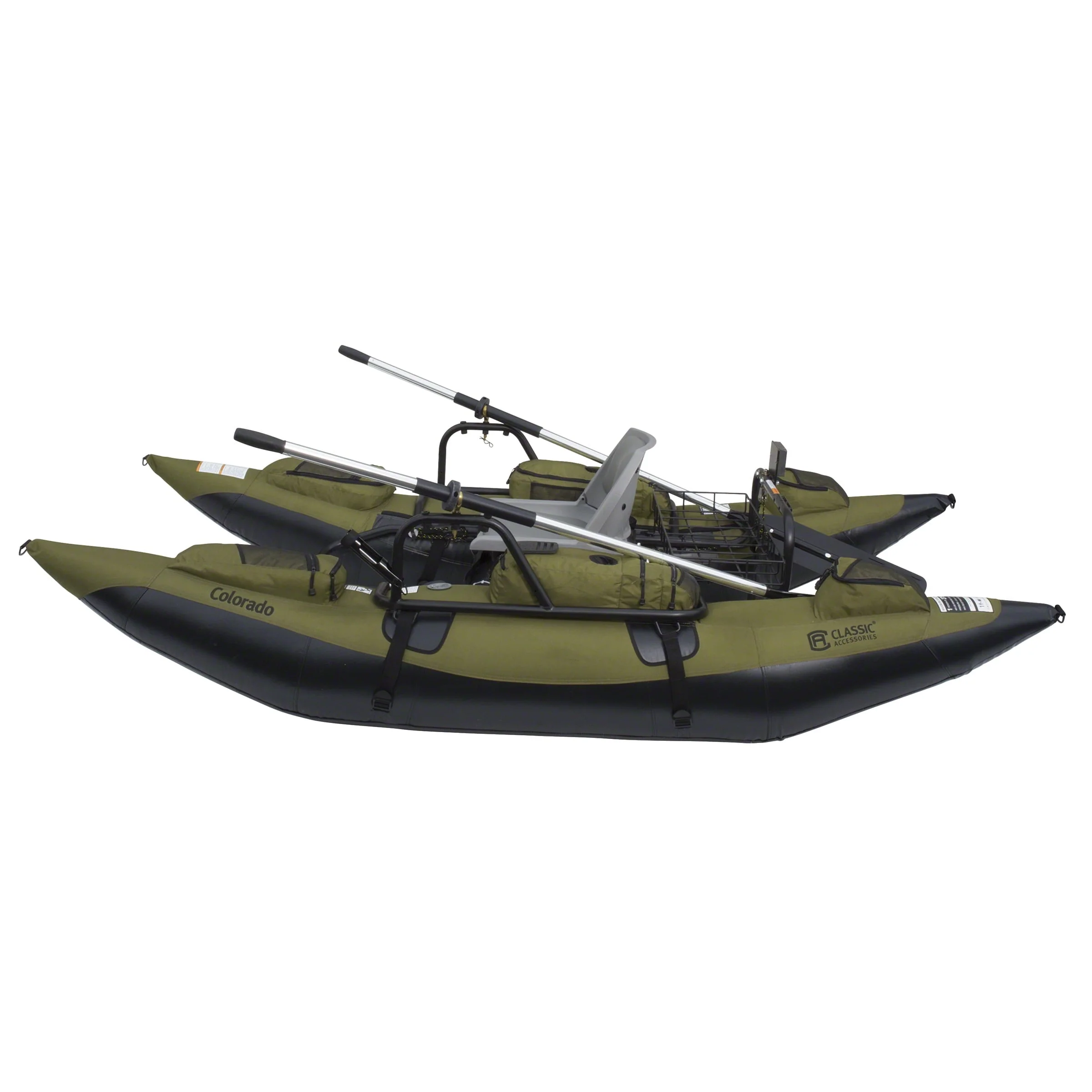 The Colorado Inflatable Pontoon Boat by Classic Accessories is a 9-foot, high-capacity pontoon boat with a padded seat and huge storage capacity; including over 20 pockets and 2 insulated drink holders. We advise that you check with your state agency’s requirements to determine if you will be required to register the pontoon boat. Please note that each state has different registration requirements, forms, and fees. It is important to note that some states require a bill of sale document, and the manufacturer cannot provide the bill of sale.