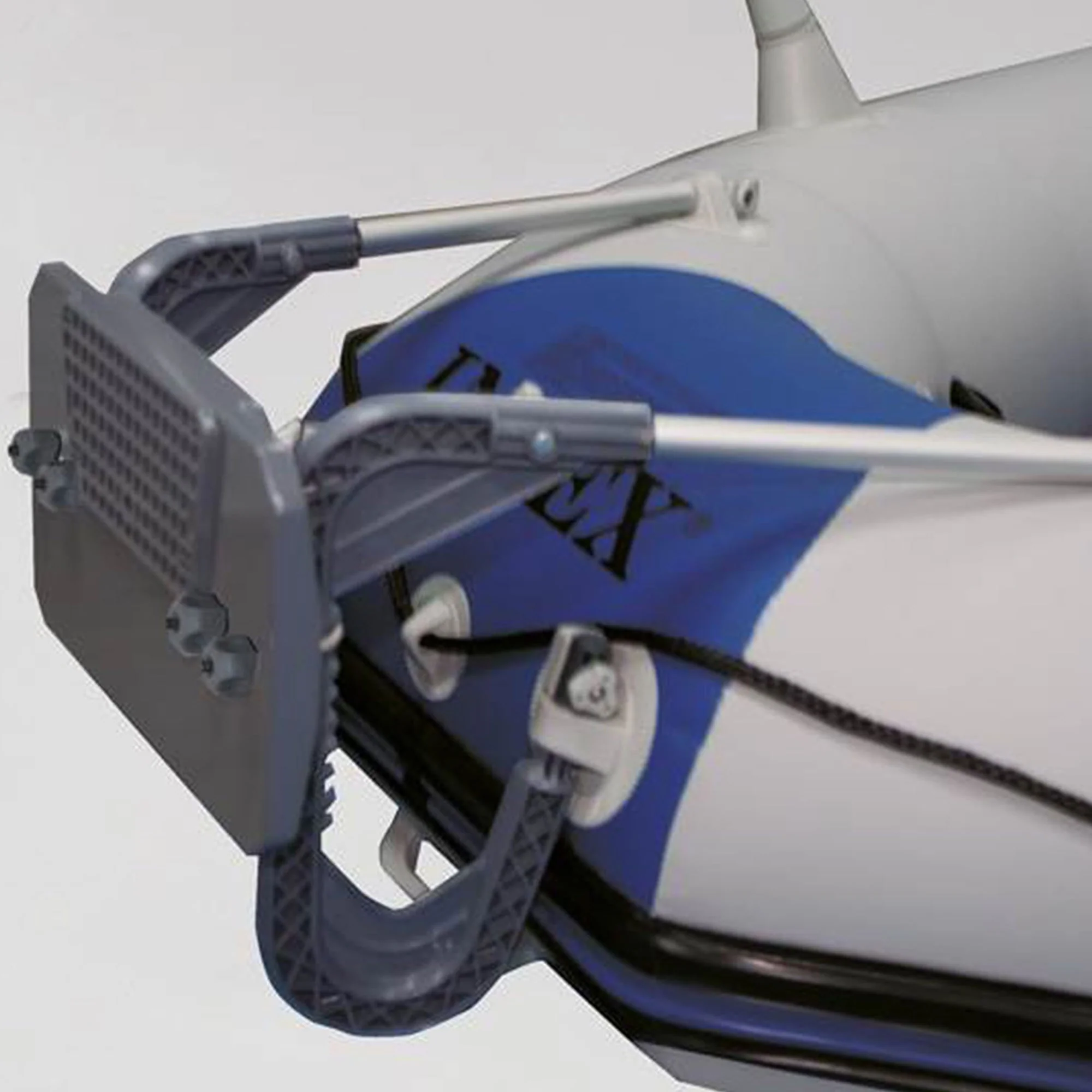 The Intex Motor Mount Kit fits all inflatable Intex boats with mount fittings on the rear of the boat. The kit attaches in minutes and expands the capability of your Intex inflatable boat. Effortlessly cruise across the water with motors up to 3.0 horsepower and when you're finished, it detaches and disables in minutes for easy storage and transportation.