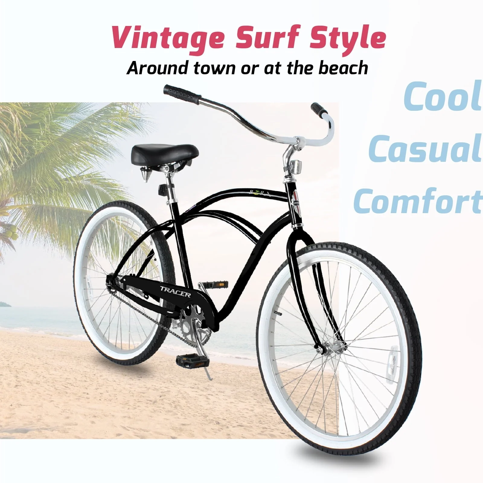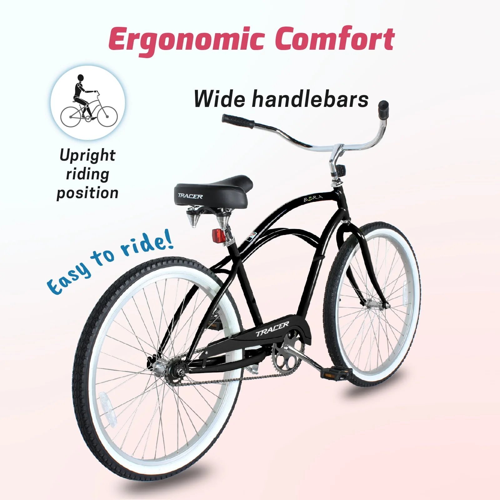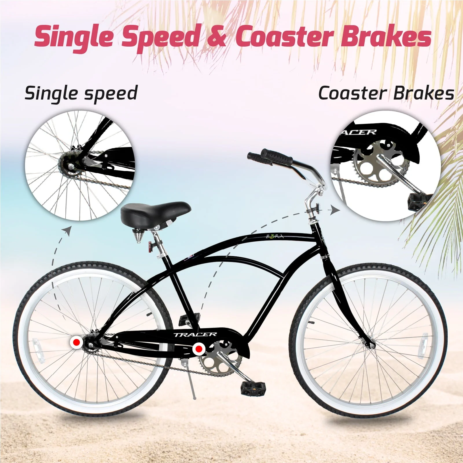 Hybrid bike for adults combines the features of a comfort bike, a commuter bike and a cruiser bike. The single-speed model offers ultimate simplicity and is ideal for flat terrain. An intuitive rear coaster brake (pedal backwards to stop) provides simple stopping power. High-density foam grips on the wide handlebars, and a dual-spring cushioned wide seat that ensures tailbone comfort on long rides.