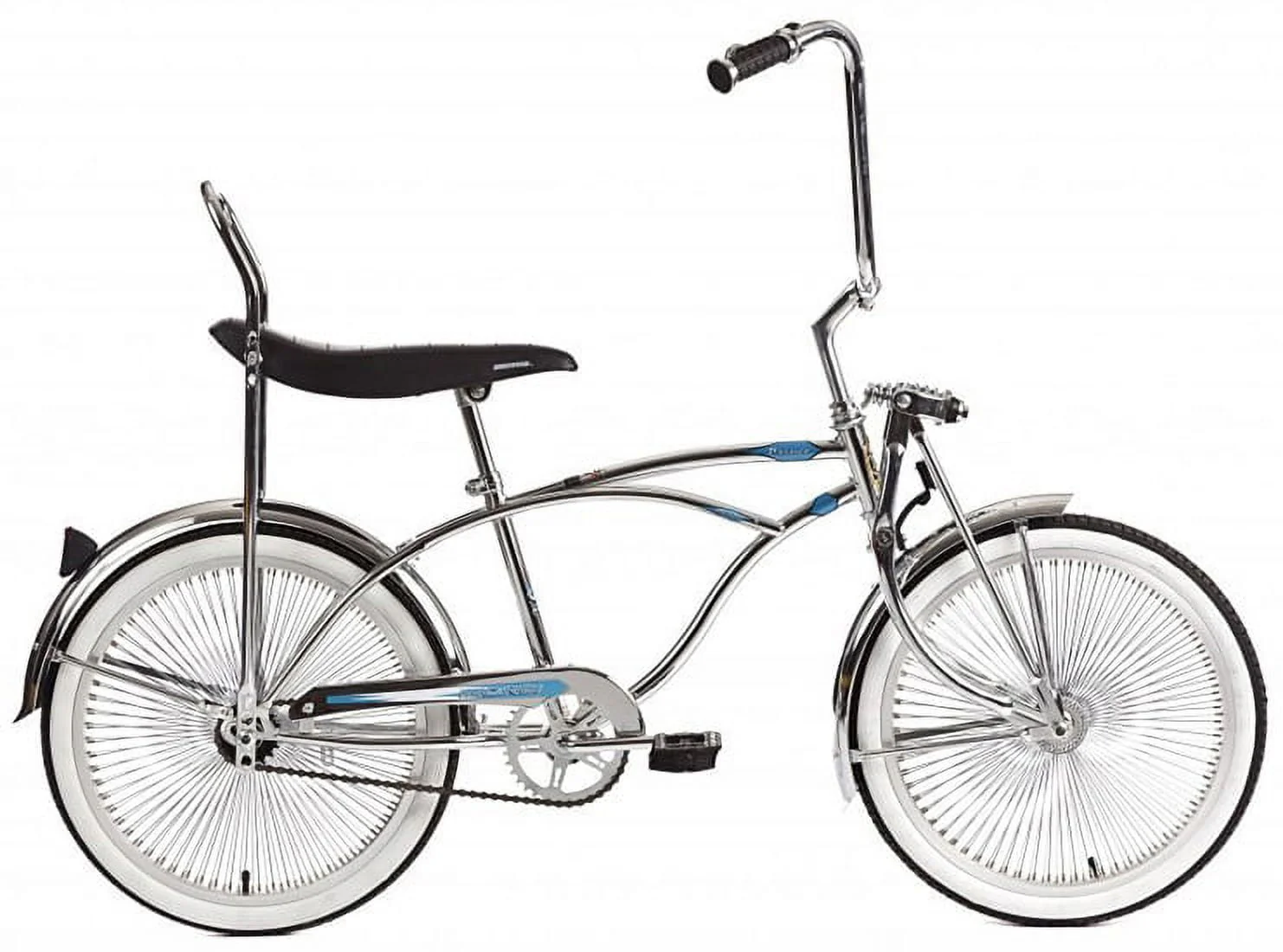Micargi PRINCE 20" low rider coaster brake single speed one-piece crank steel chrome rims 68h chrome the Micargi prince, chrome, boys' 20" lowrider bike features the old-school components such as the retro banana seat with sissy bar, front-end springer fork, mini version ape-hanger handlebar, 68 spokes, and a pair of whitewall tires. Start riding this cool looking Micargi prince in an old-school style!