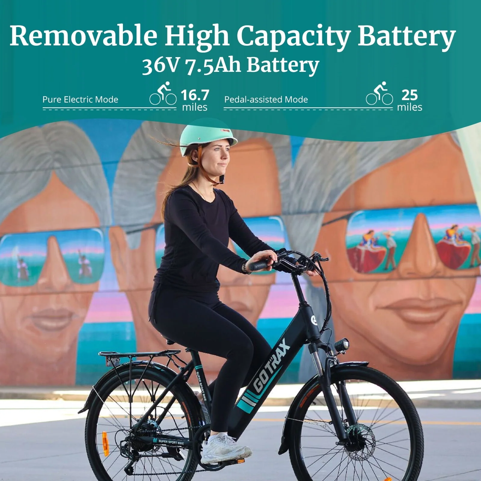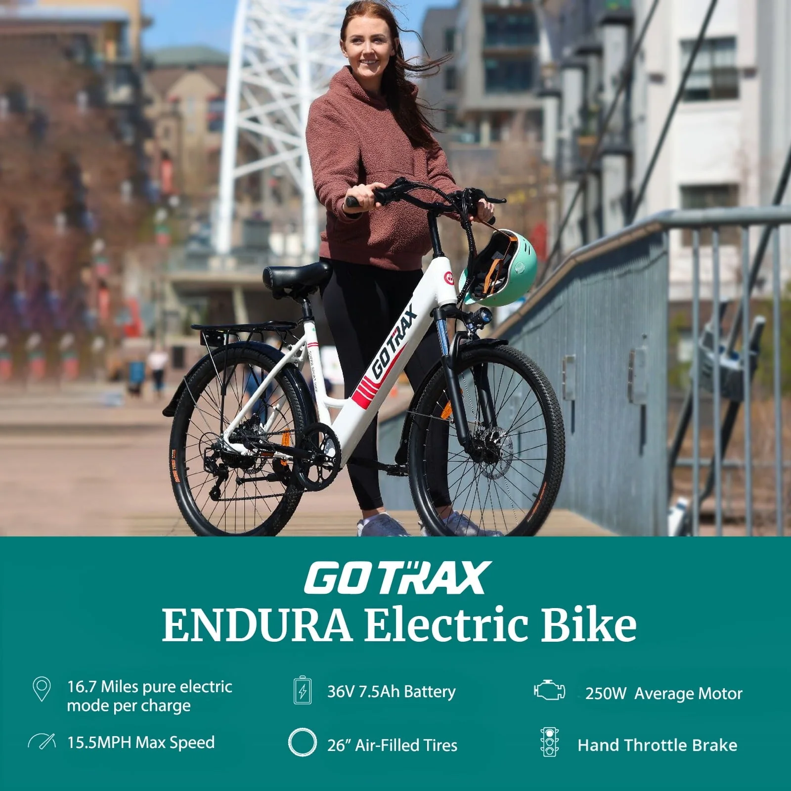 GOTRAX Endura 26" Electric Bike with 270Wh Removable Battery, 250W Powerful Motor up 15.5mph, Shimano Professional 7 Speed Gear and Dual Disc Brakes Alloy Frame Electric Bicycle