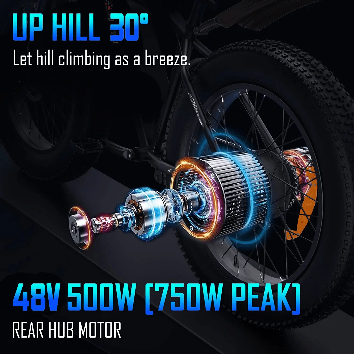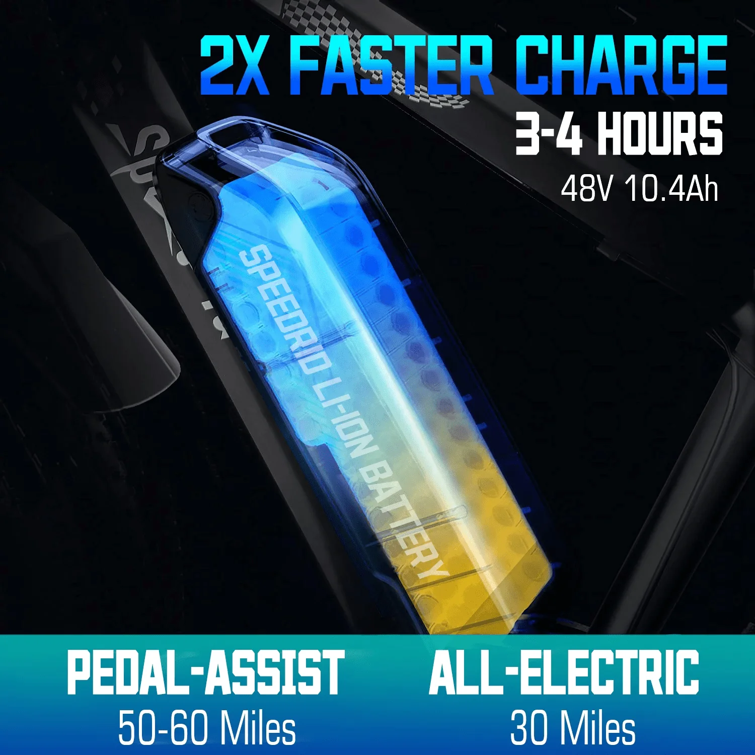 - Powerful 500W motor and long-lasting 48V battery help you travel up to 50-60miles in the assist mode.