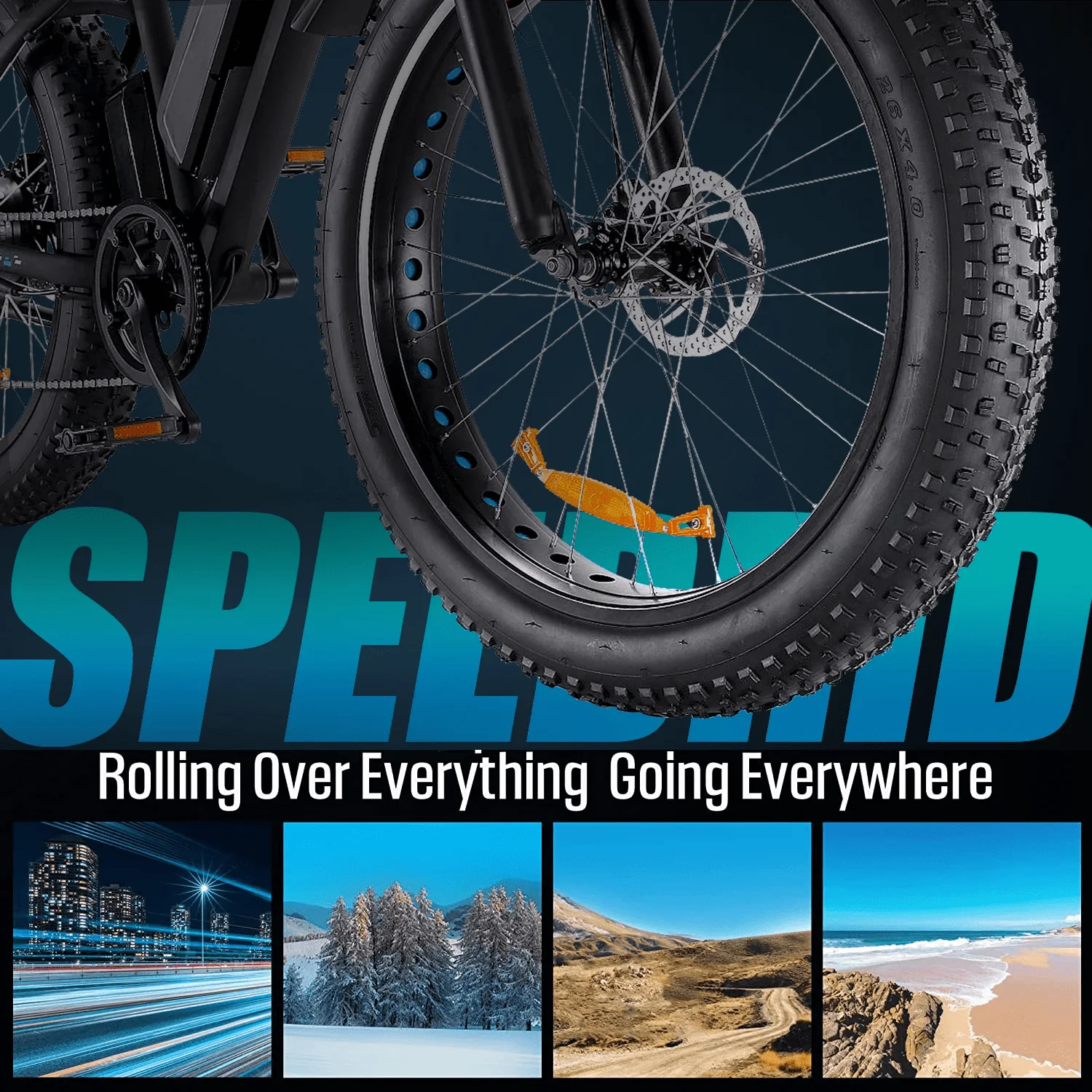 Funcid 26"x4.0" fat tire electric bike for adults is combined with a stable aluminum alloy frame, powerful motor, removable battery, front shock absorbers and disc brakes. All features will make your biking and commuting easier and safer. Fun way to explore parks, mountains, beaches, forest trails, city roads.....where ever you want to go and go without hesitation with this dependable ebike.
