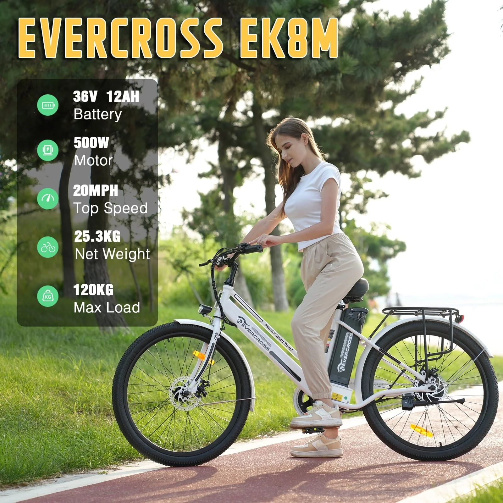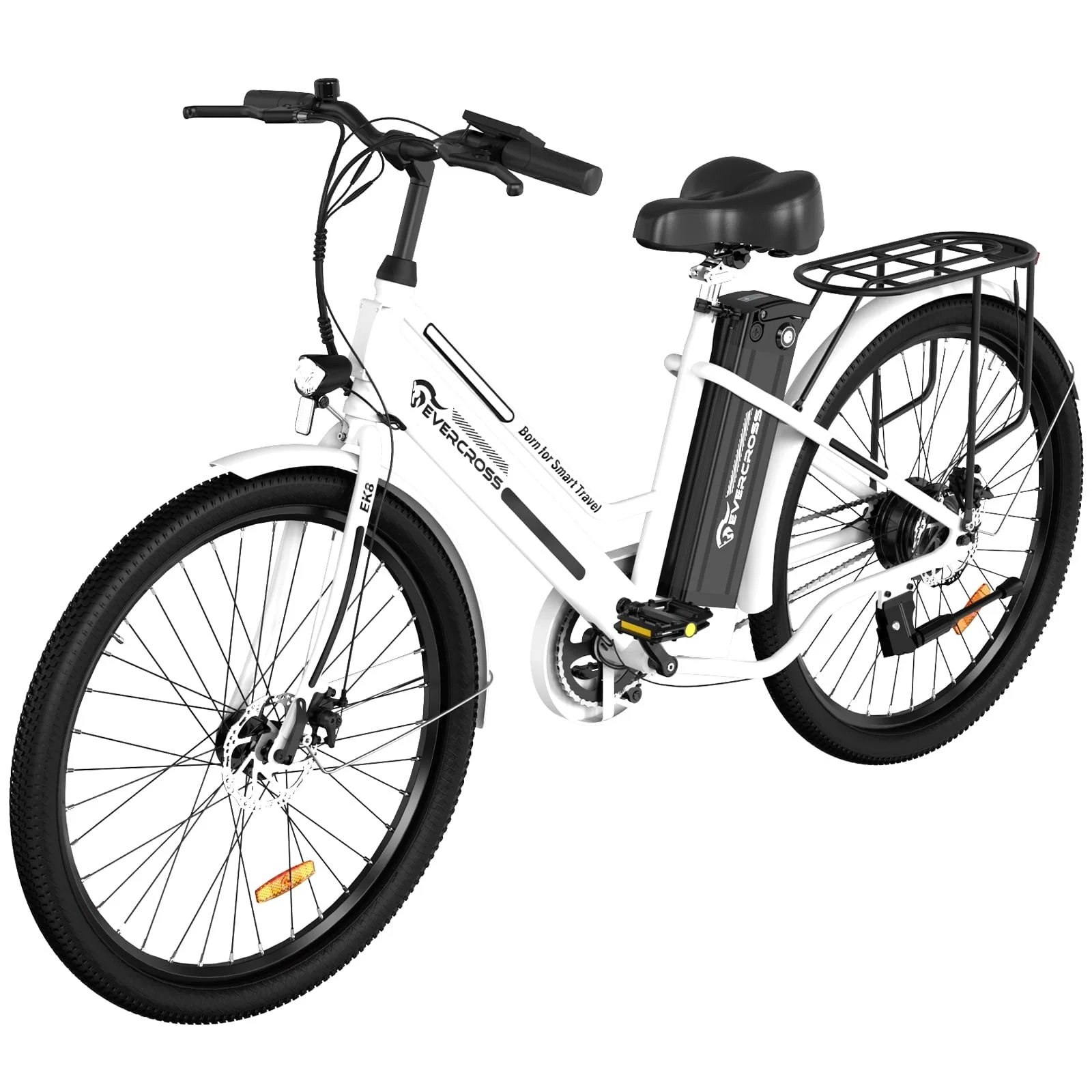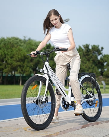 Designed for bike enthusiasts: EVERCROSS electric bicycle is equipped with 26*2.35 inch tires, ensuring outstanding traction and the ability to conquer various terrains, including city streets, beach, snow, gravel, rain, dirt, sand. Whether you seek daily commutes or mountain adventures, this e-bike has you covered.