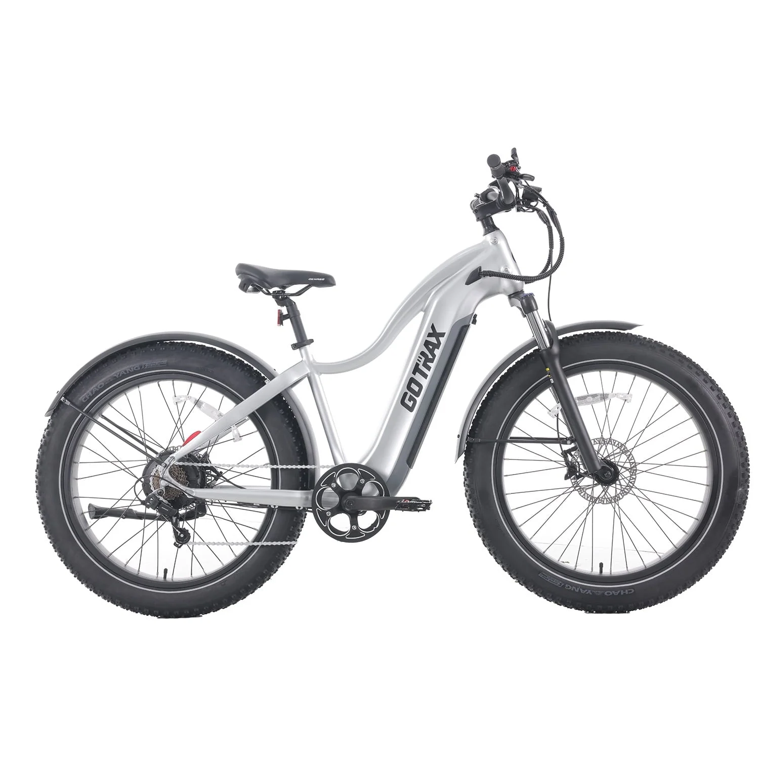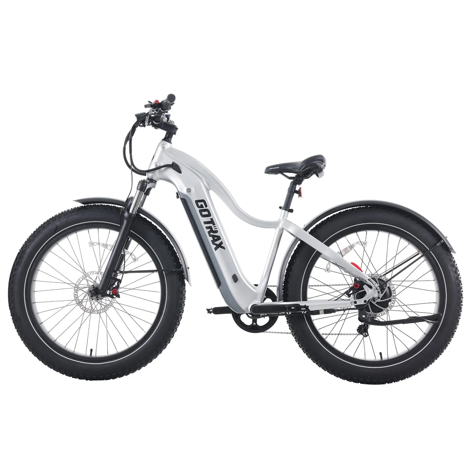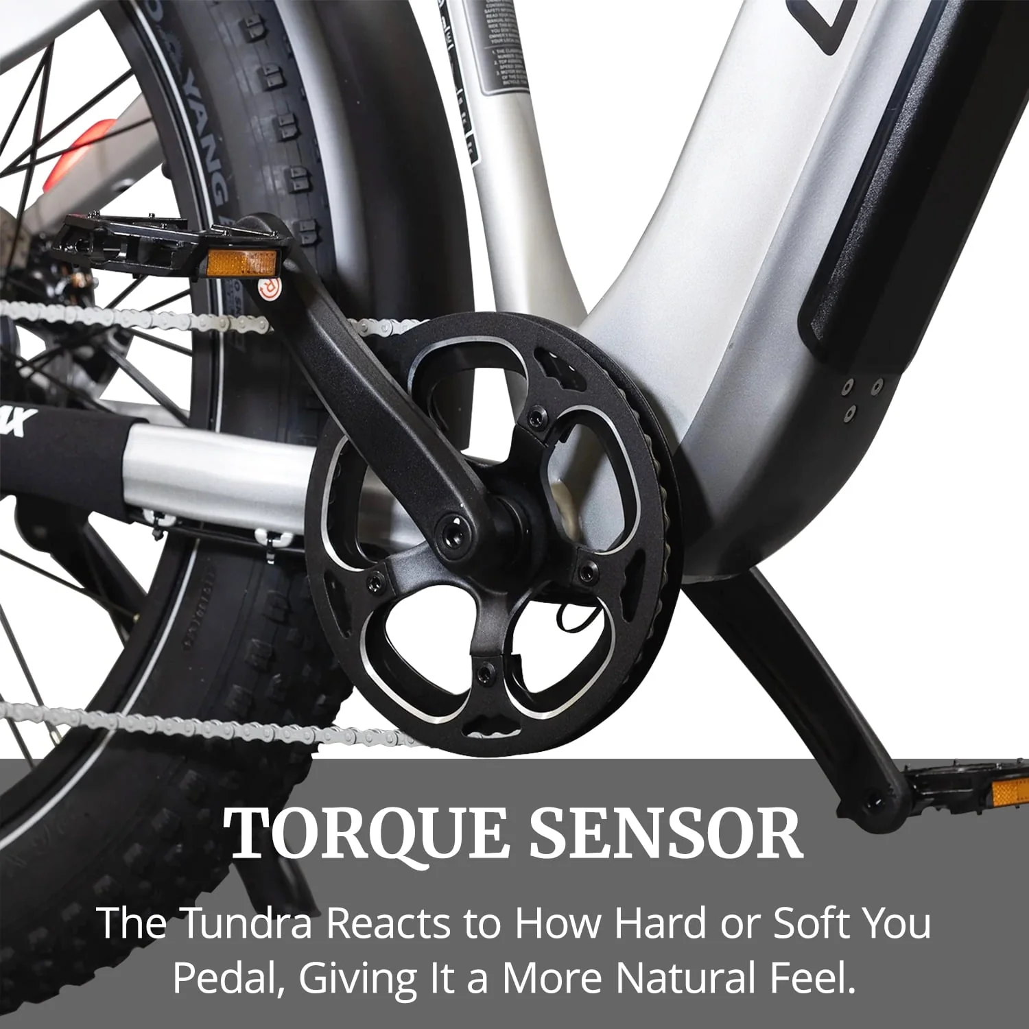 The ultimate electric Adults bike. Durable frame and off road tires are ready for more than just your average weekend adventure.The Gotrax Tundra eBike is a powerful and stylish mode of transportation designed for a multitude of uses. Whether its city streets, or an off road trail the Tundra is ready for any situation. Ride in comfort using the adjustable front suspension, 26"; fat tires, and a shock absorbing seat. We've fine tuned every detail for performance, including a 33% larger battery, 750w motor and a built in torque sensor to create the most natural riding experience with your new eBike. Un-limit your adventures with the new GOTRAX Tundra.