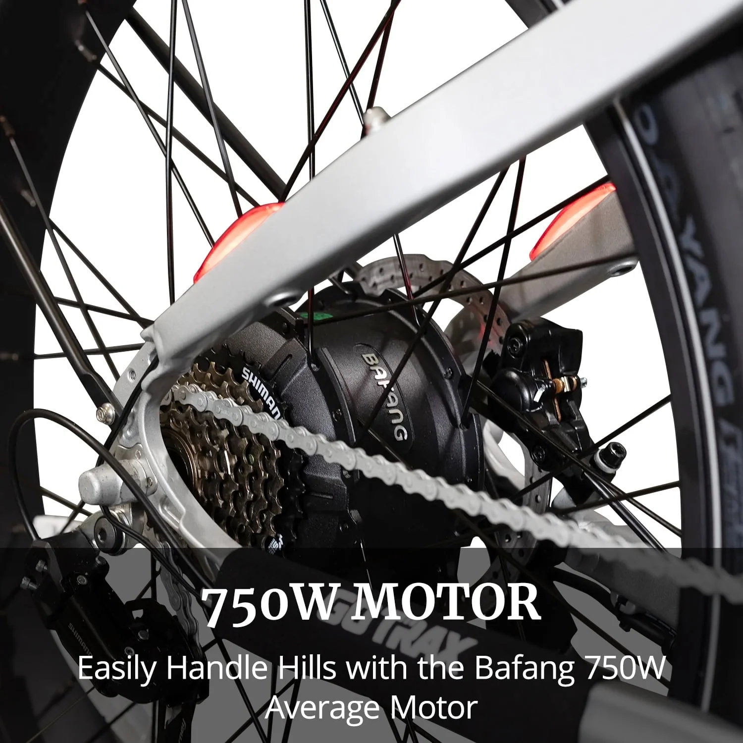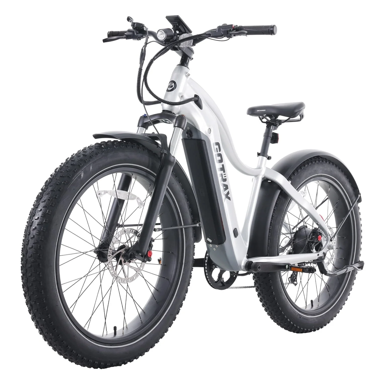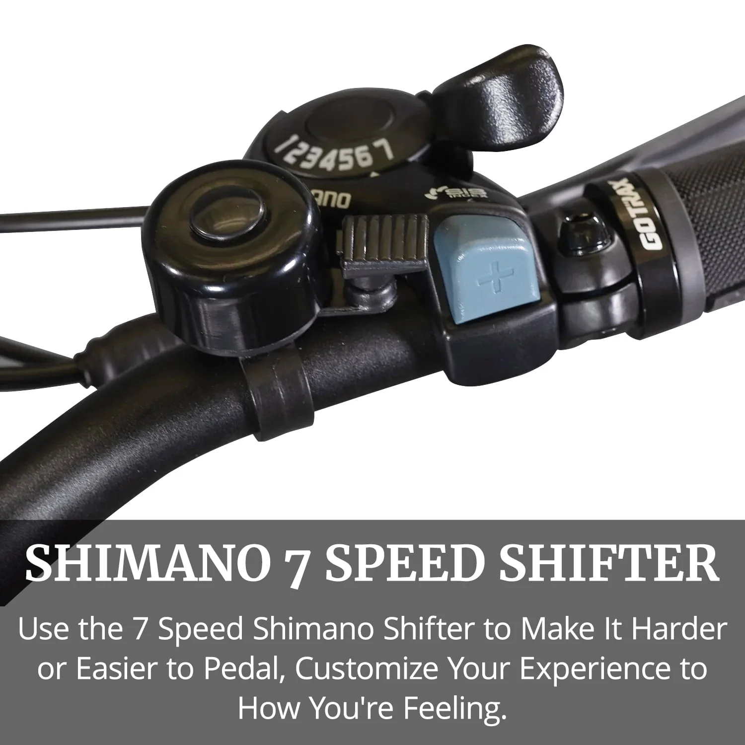 The ultimate electric Adults bike. Durable frame and off road tires are ready for more than just your average weekend adventure.The Gotrax Tundra eBike is a powerful and stylish mode of transportation designed for a multitude of uses. Whether its city streets, or an off road trail the Tundra is ready for any situation. Ride in comfort using the adjustable front suspension, 26"; fat tires, and a shock absorbing seat. We've fine tuned every detail for performance, including a 33% larger battery, 750w motor and a built in torque sensor to create the most natural riding experience with your new eBike. Un-limit your adventures with the new GOTRAX Tundra.