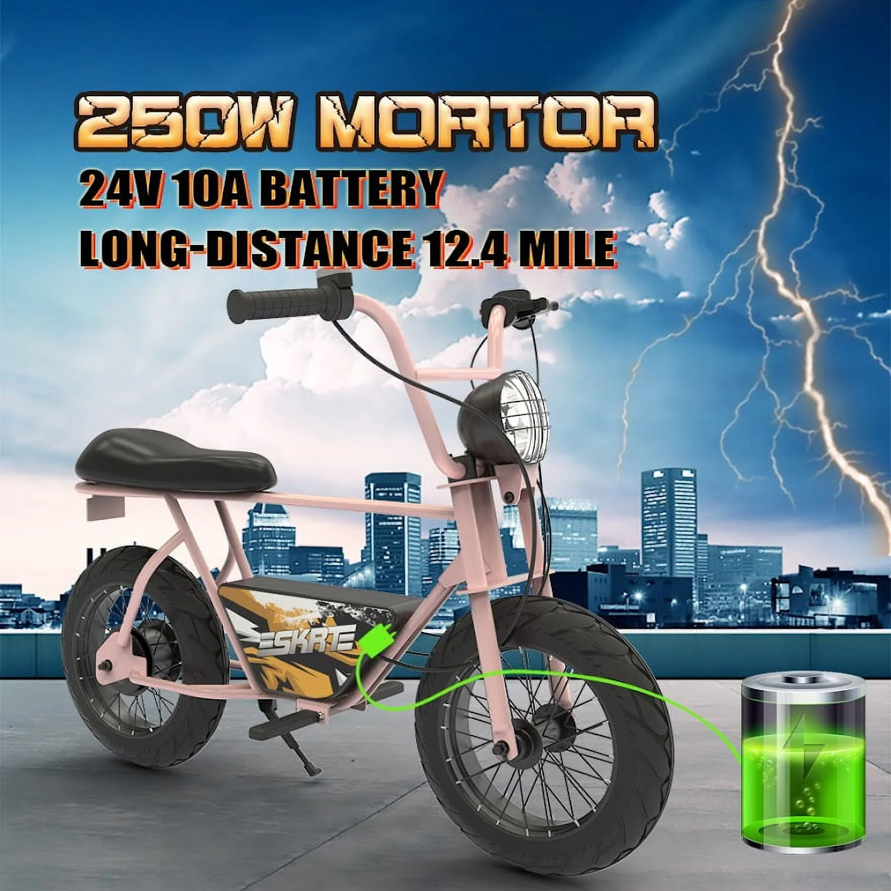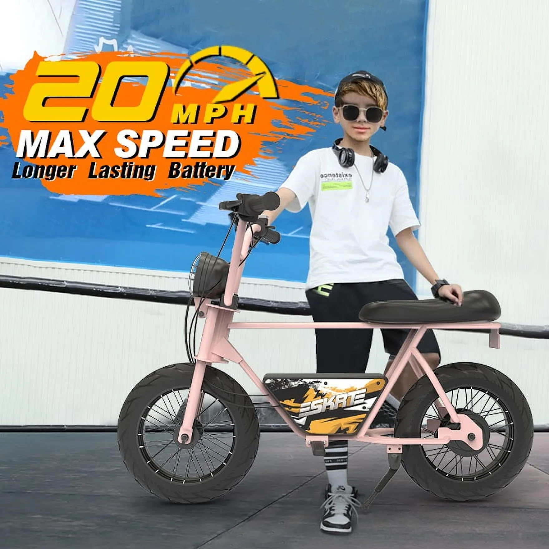 SKRT Electric Balance Bike Bicycle Scooter, 250W 24V Brushless Motor, Big LED, 16 in Rubber Tire, Max Distance 12 MILES, Max Speed 12.4MILE/H, Max Load 165 lb, Safety Battery Switch