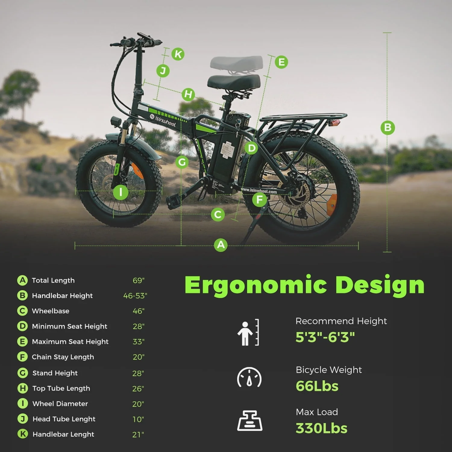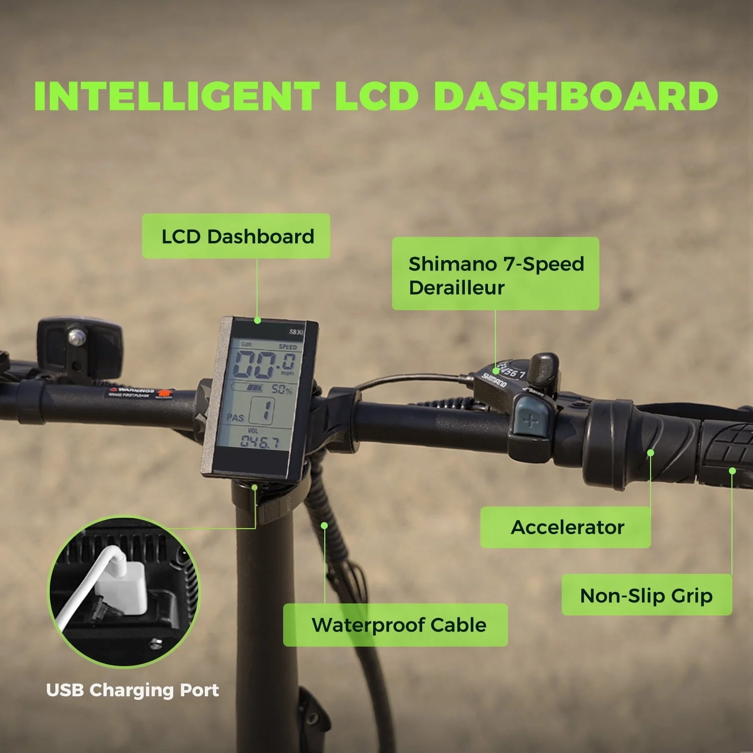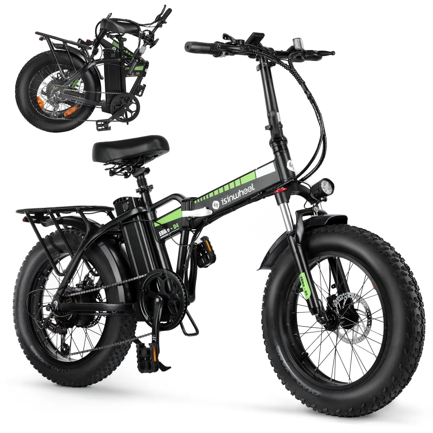 【Bring Fun to Your Way: Excellent Riding Performance�? The D4 electric mountain bike frame is made of high-quality aluminum alloy, which is sturdier and more durable than a typical bike frame. Equipped with professional SHIMANO 7-speed shift gears, it is also more accurate and stable. A strong headlight, LCD intelligent display, non-slippery 20''x4.0 fat tires.