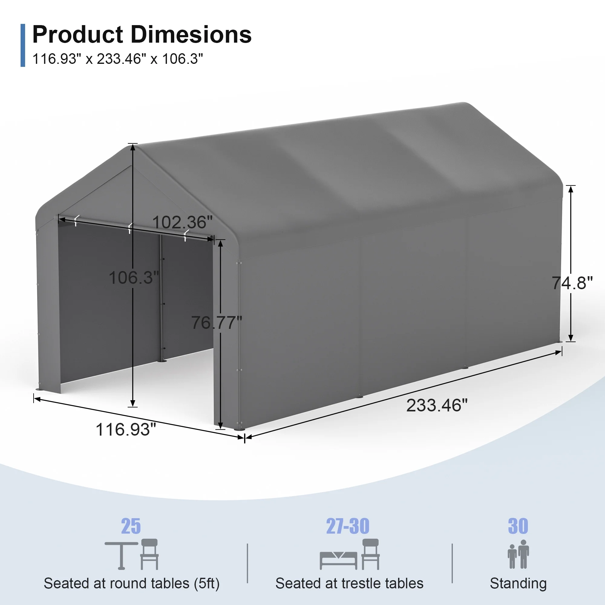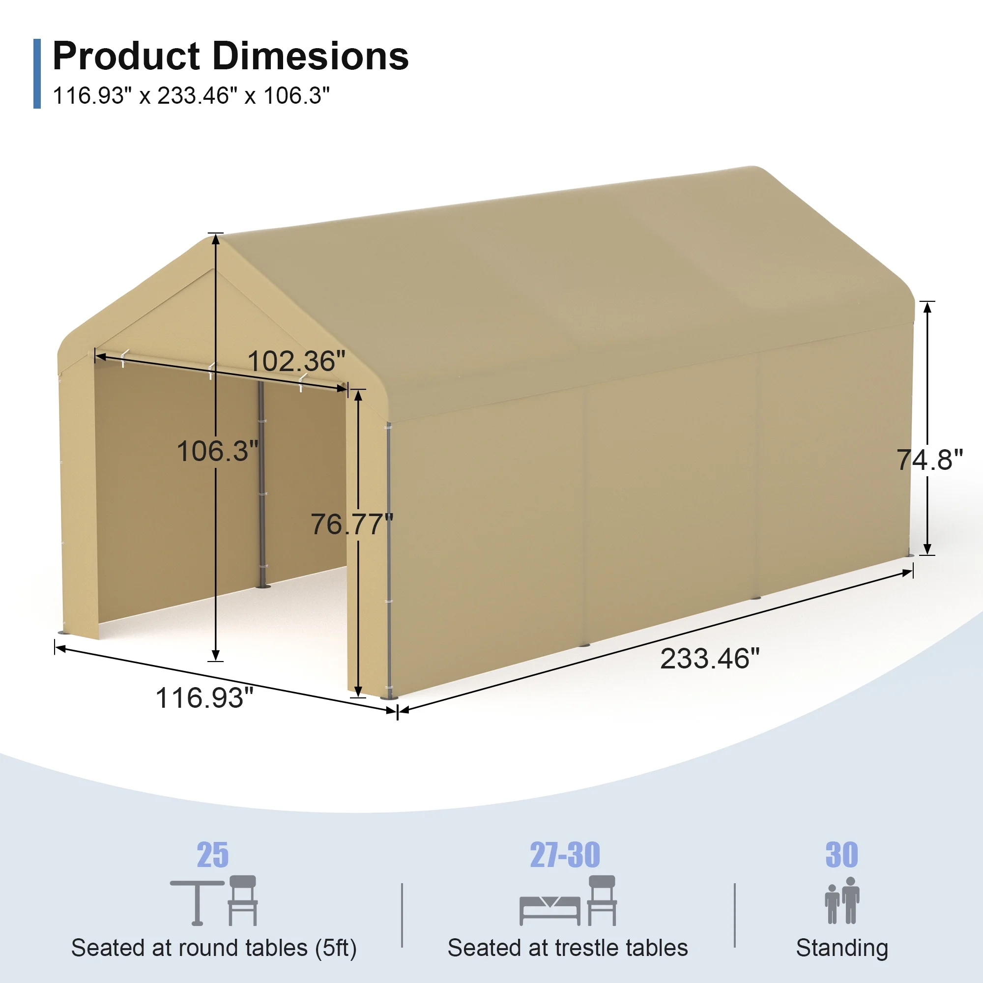 - 【Multipurpose Carport】The canopy tent is designed to be versatile, allowing you to use it for various purposes such as parking your car, storing equipment, or creating a covered area for outdoor activities.