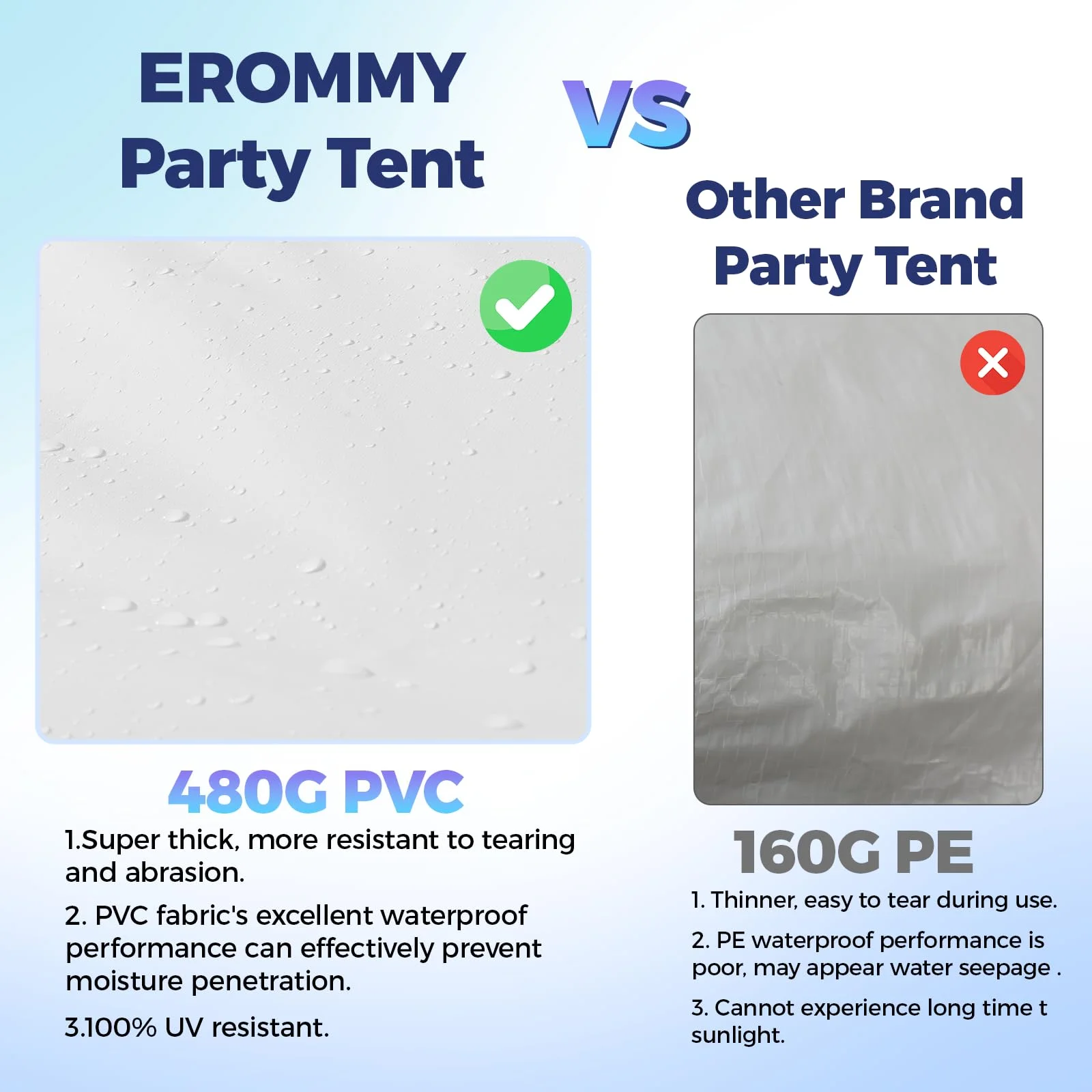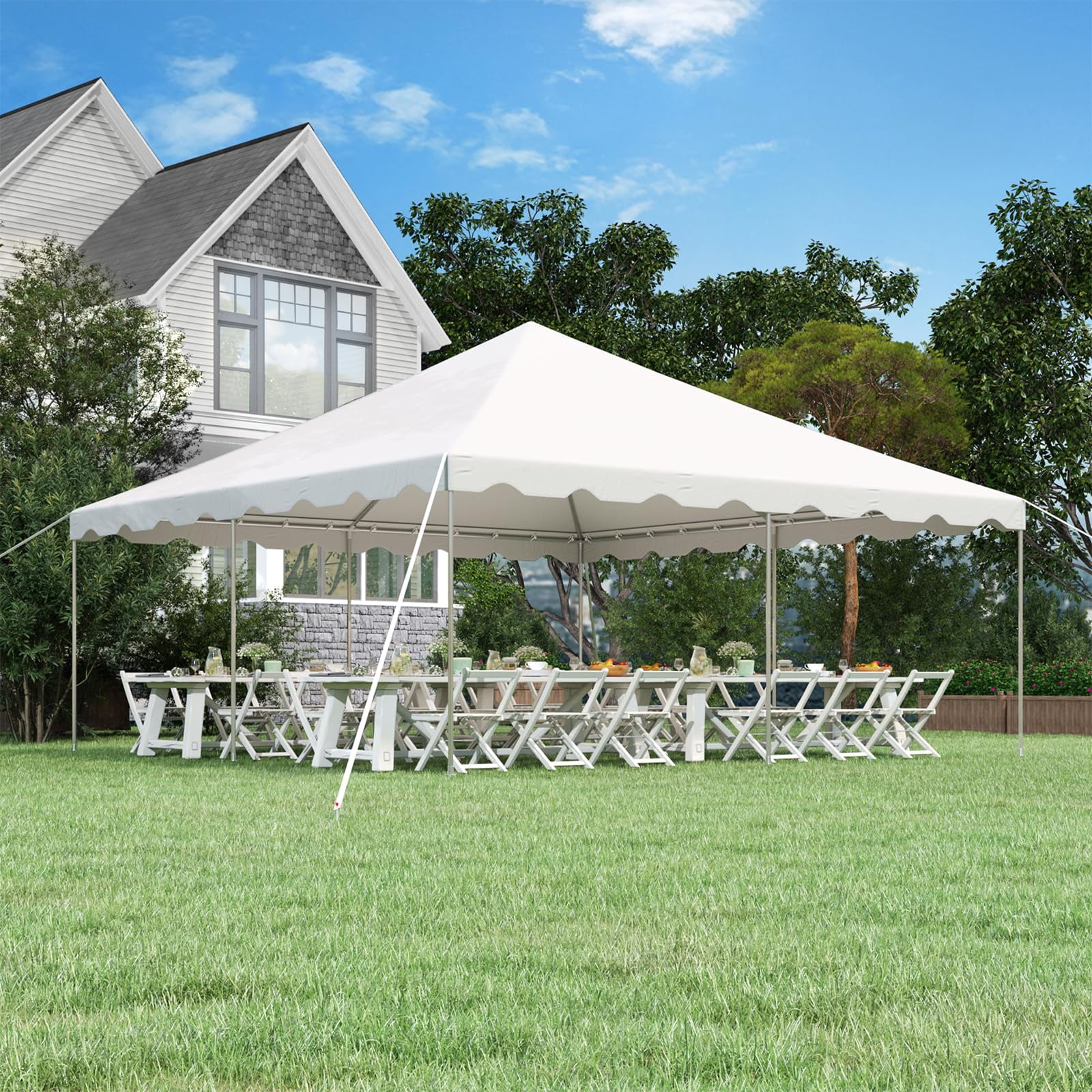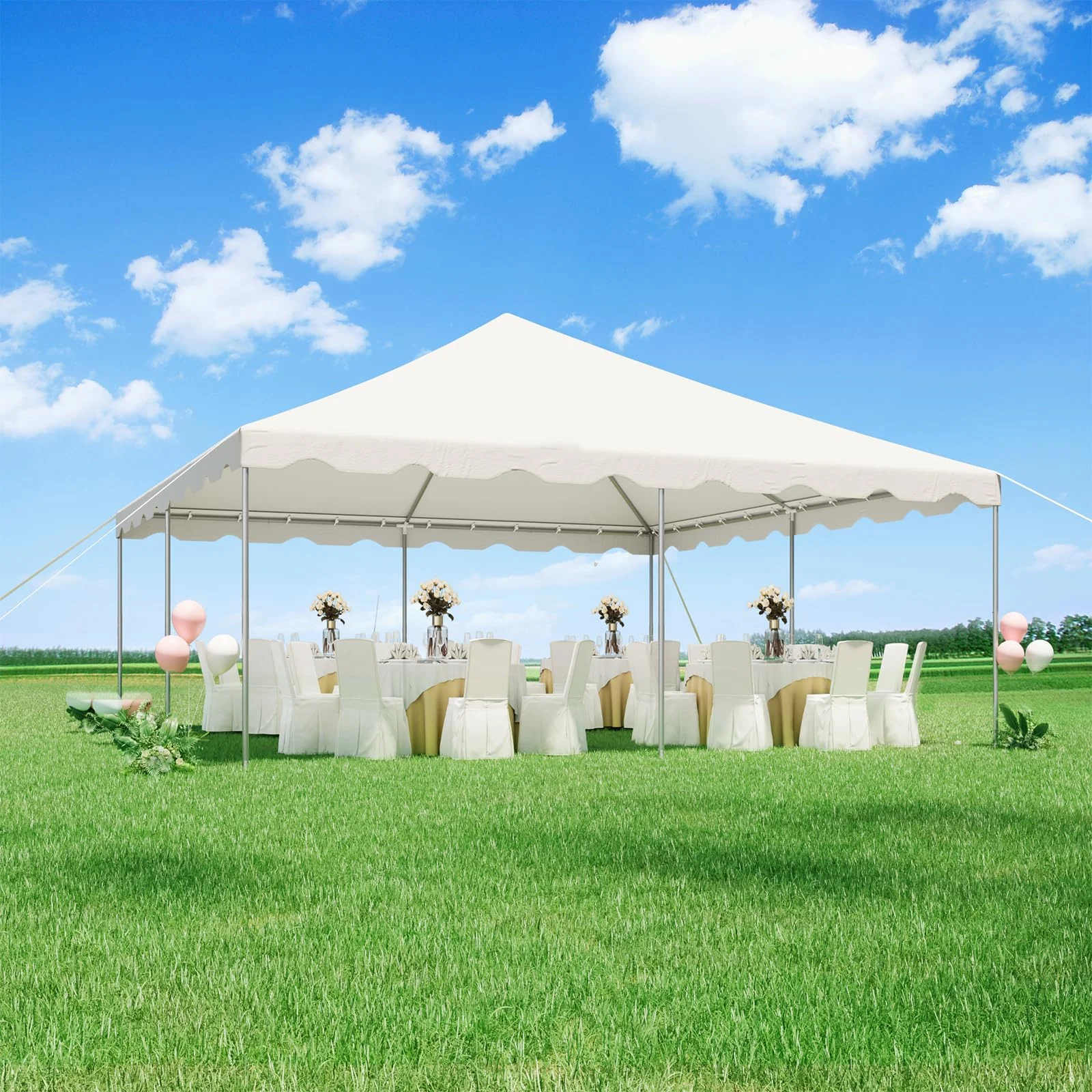 - 【HIGH-QUALITY THICKENED PVC FABRIC】The roof of this wedding and event tent is made from premium 480GSM high-density PVC fabric, which is 100% waterproof, 99% UV-resistant, and tear-resistant, ensuring long-term durability in various weather conditions
