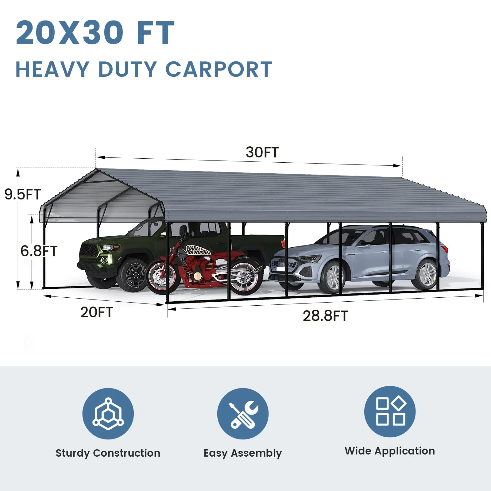 - Spacious 20'W x 20'D x 9.5'H size offers ample coverage, allowing you to use this versatile shelter as an outdoor work area, garden storage space, farm tool warehouse, or workshop.
