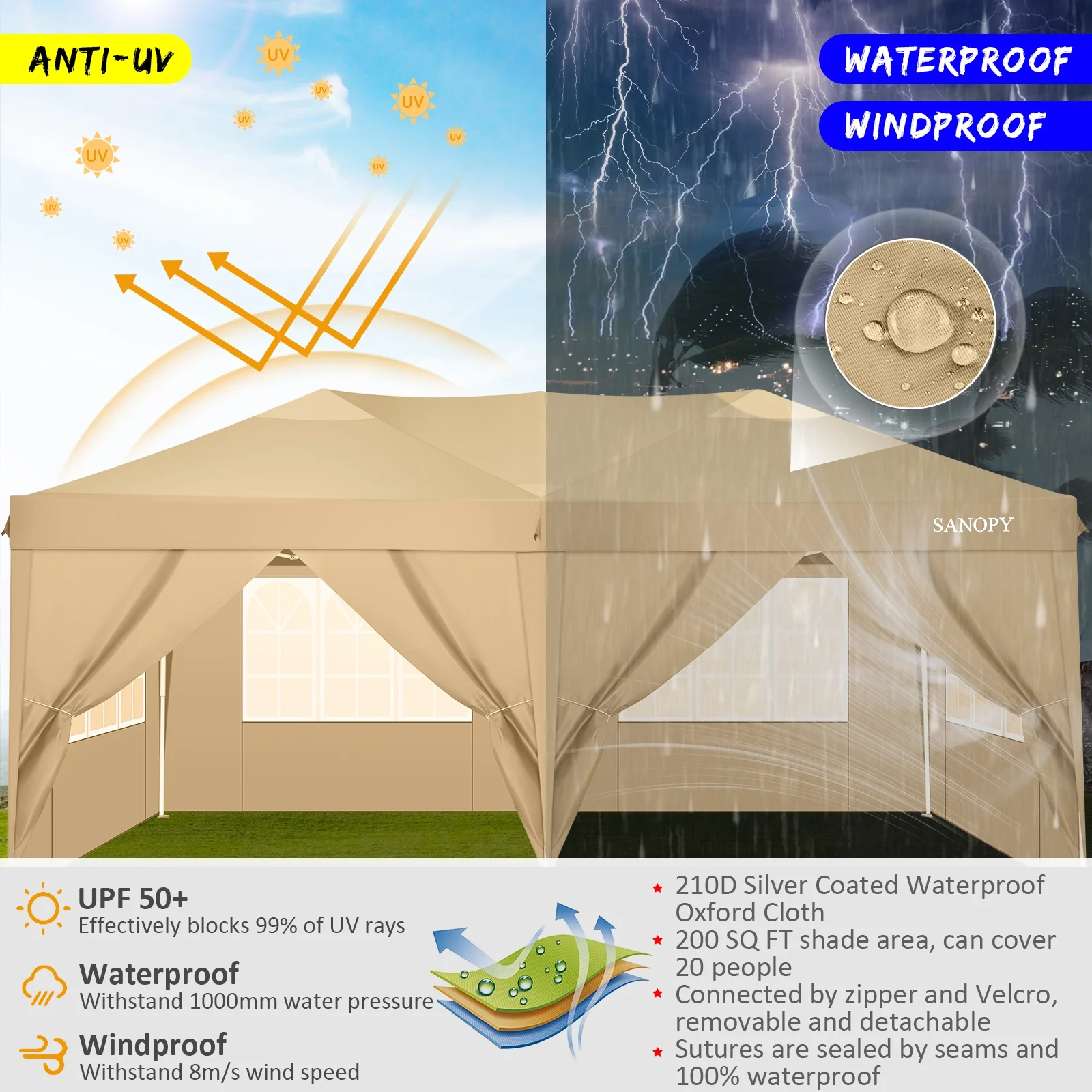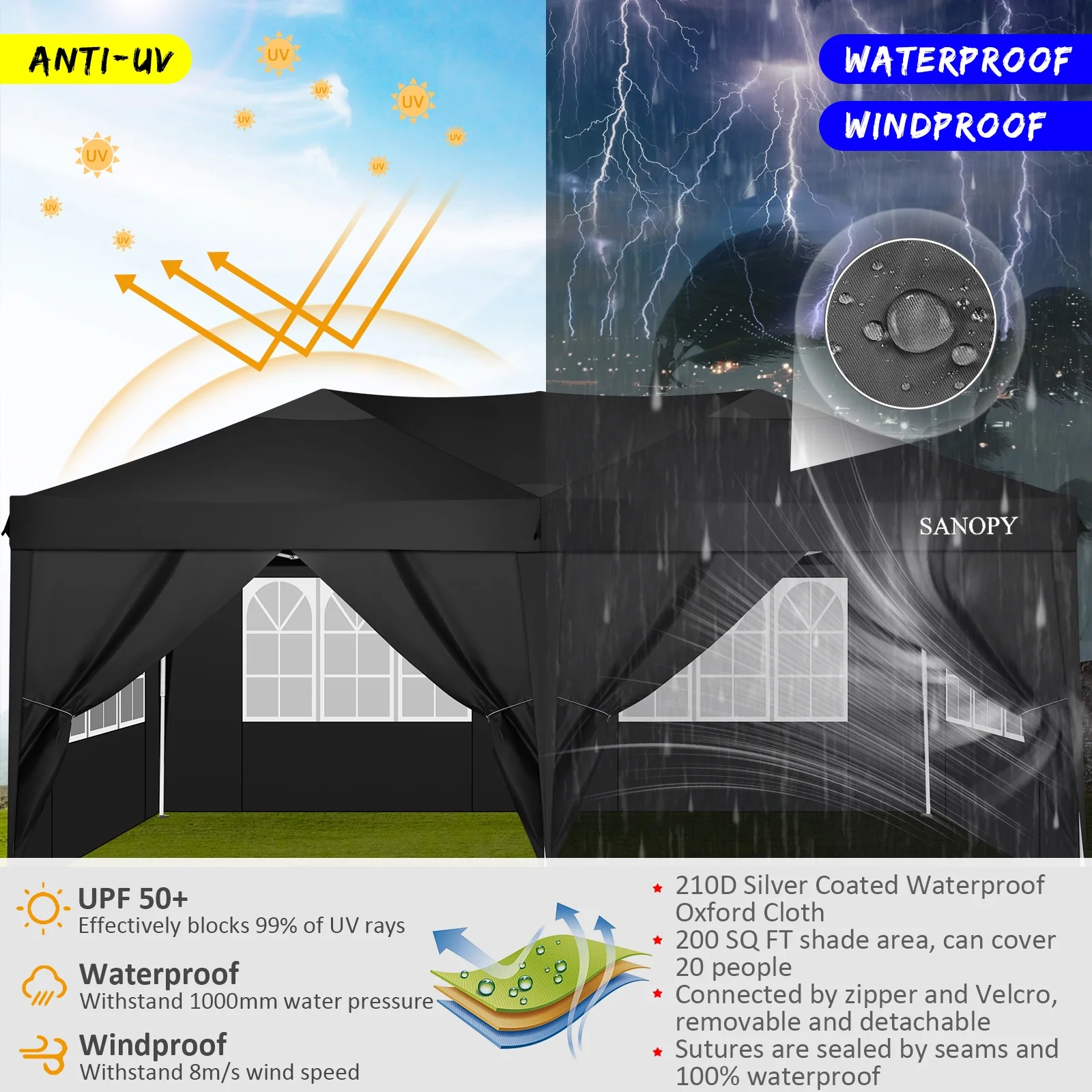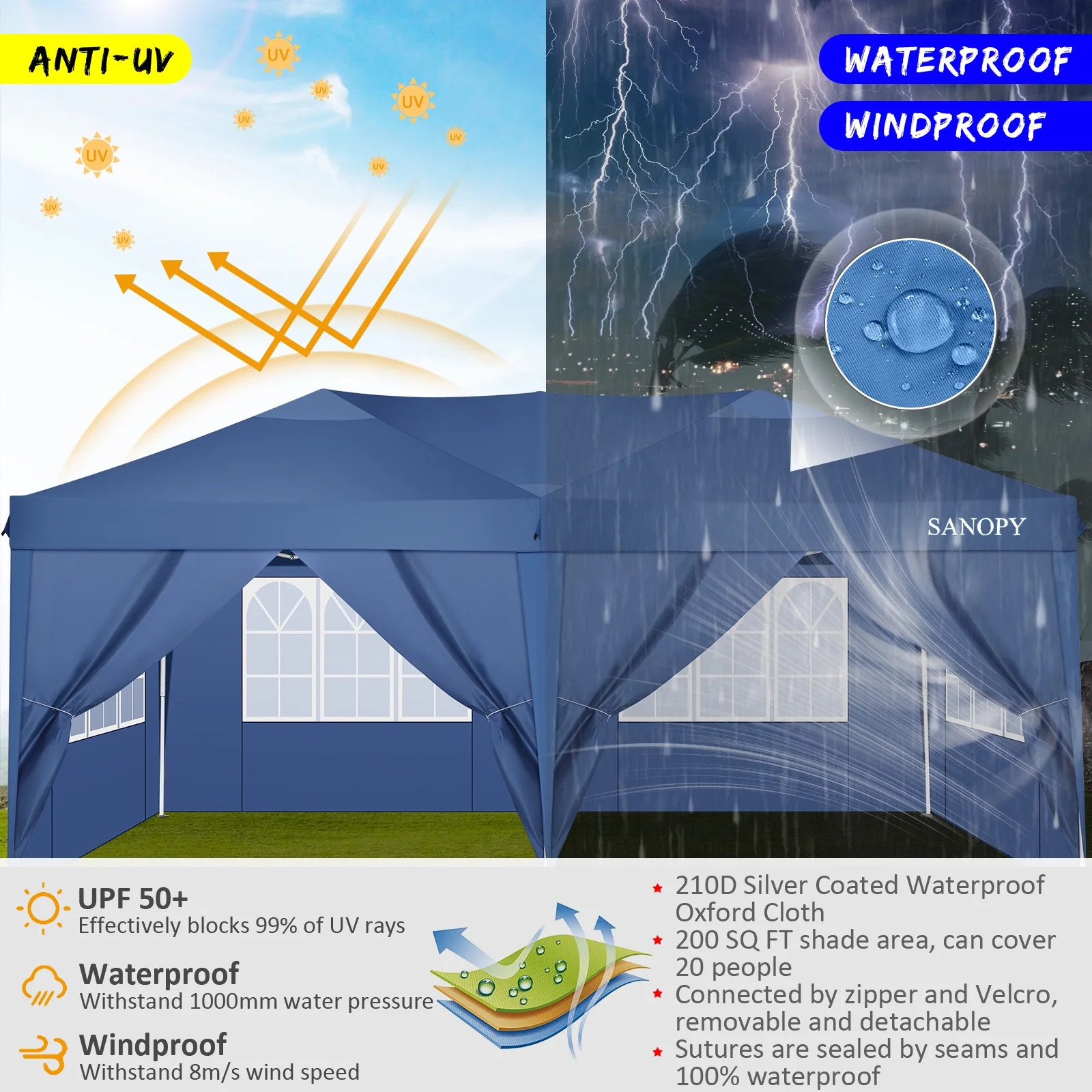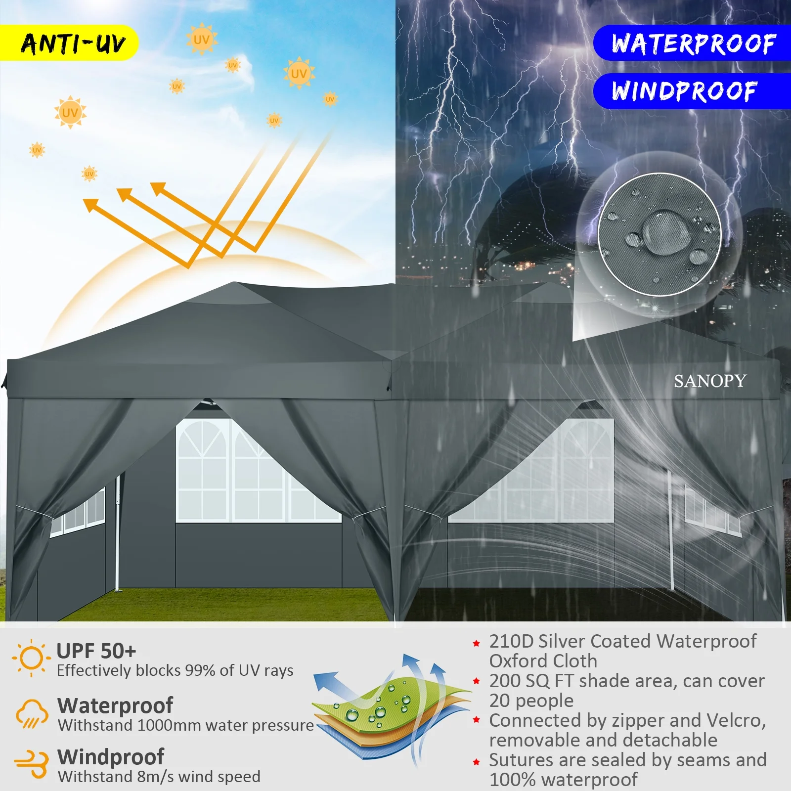 【Canopy Wide Coverage�?/strong>: Garden gazebo length is 20 ft and width is 10 ft, has 200 Sq ft of shade, we can use our pop-up canopy in the garden, invite 10-15 friends, hold a barbecue, cocktail party, or take our family to a beach holiday and sunbathe.