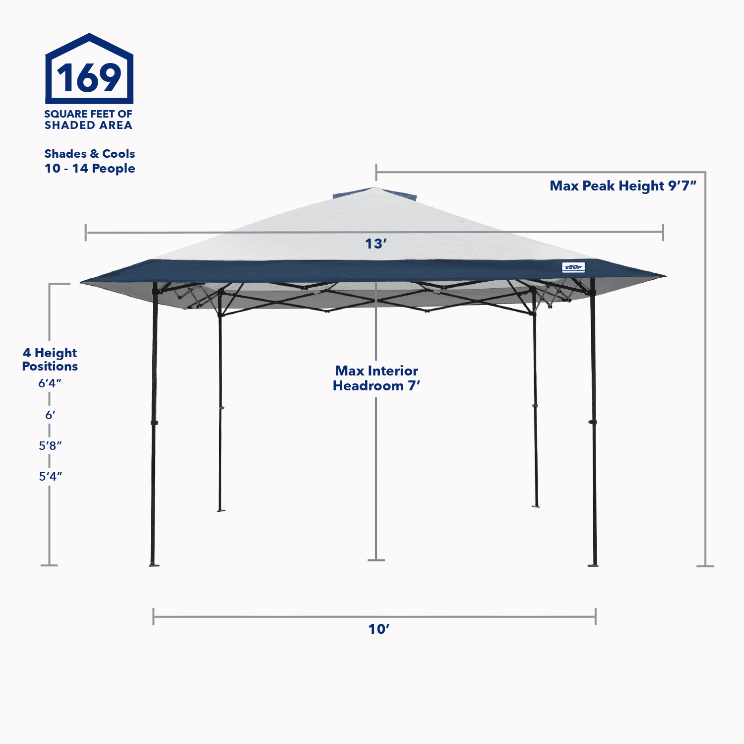 - Provides 169 Square Feet of Shade to Protect and Cool 10-14 People
