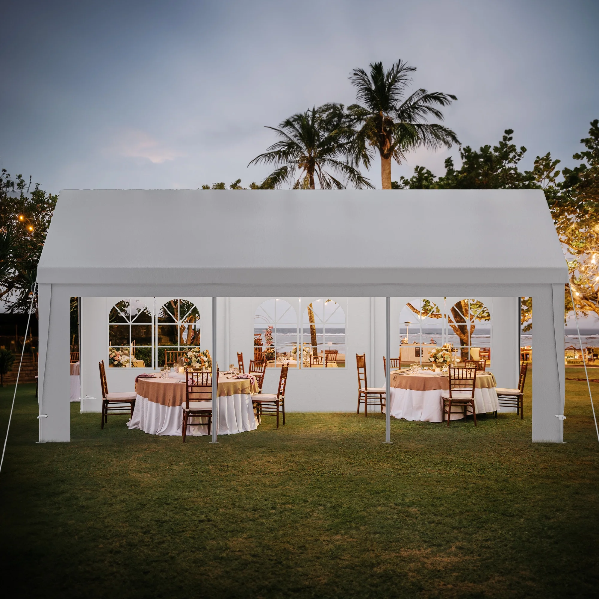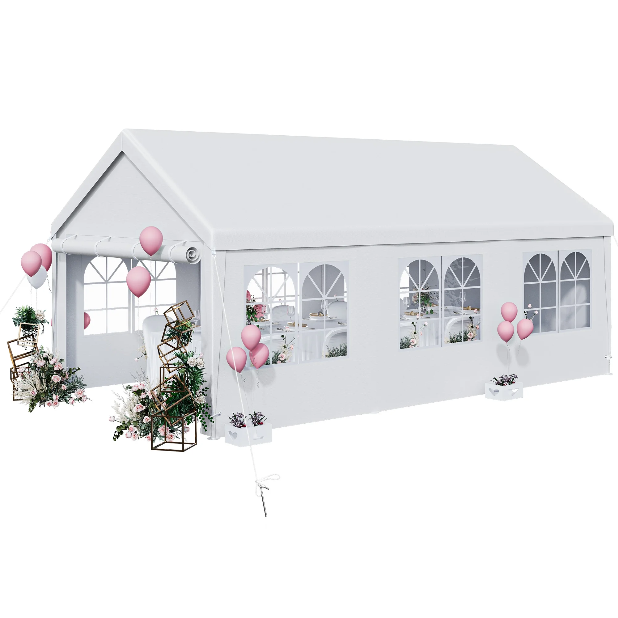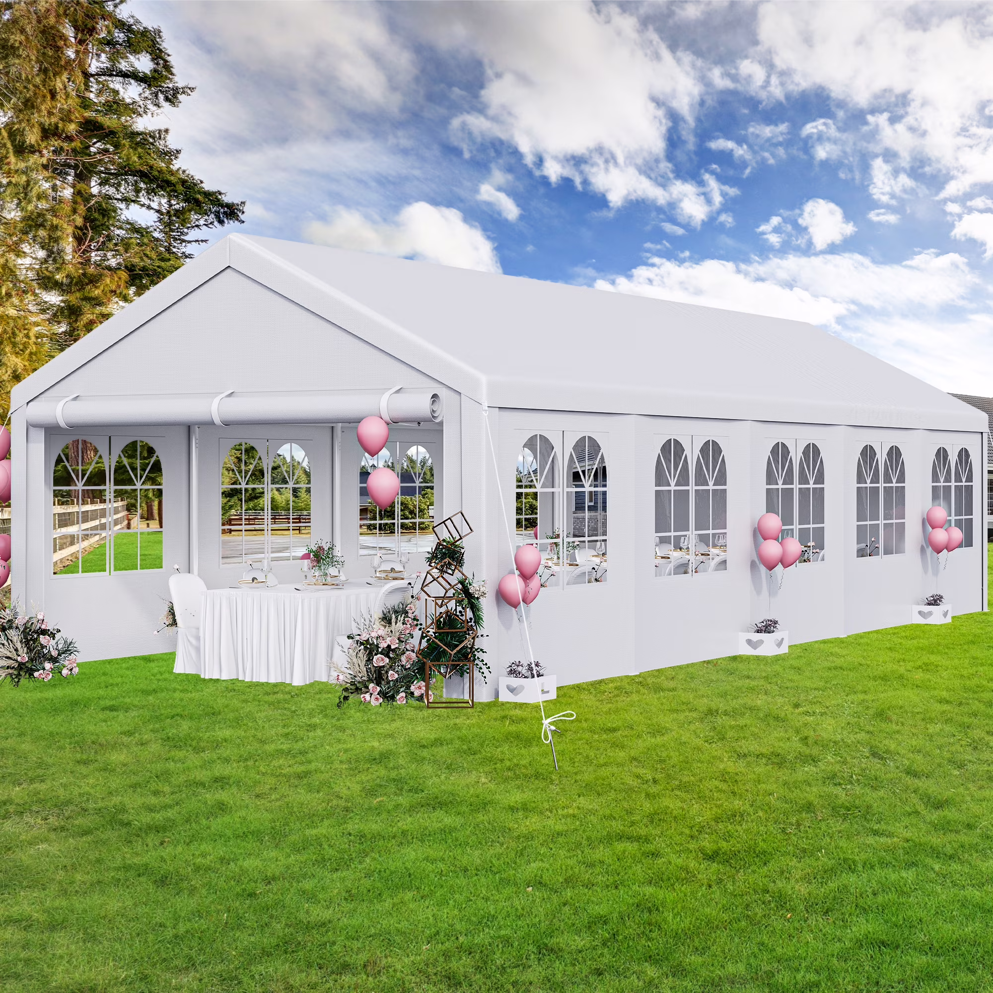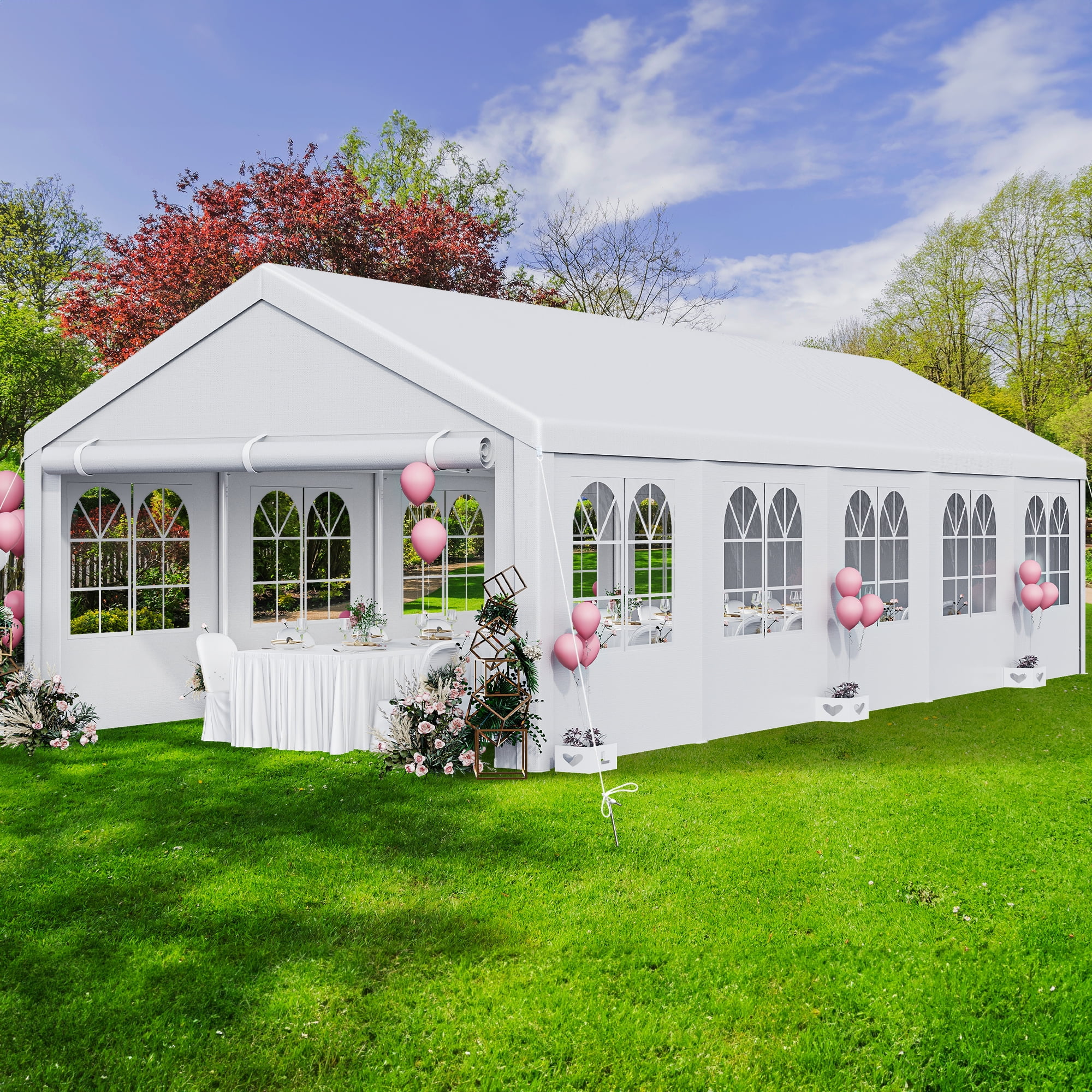 Dextrus 16x32ft Party Tent Heavy Duty Outdoor Wedding Tent Canopy Event Shelters Upgraded Galvanized Steel Carport with Removable Sidewall Windows for Commercial and Parties, White