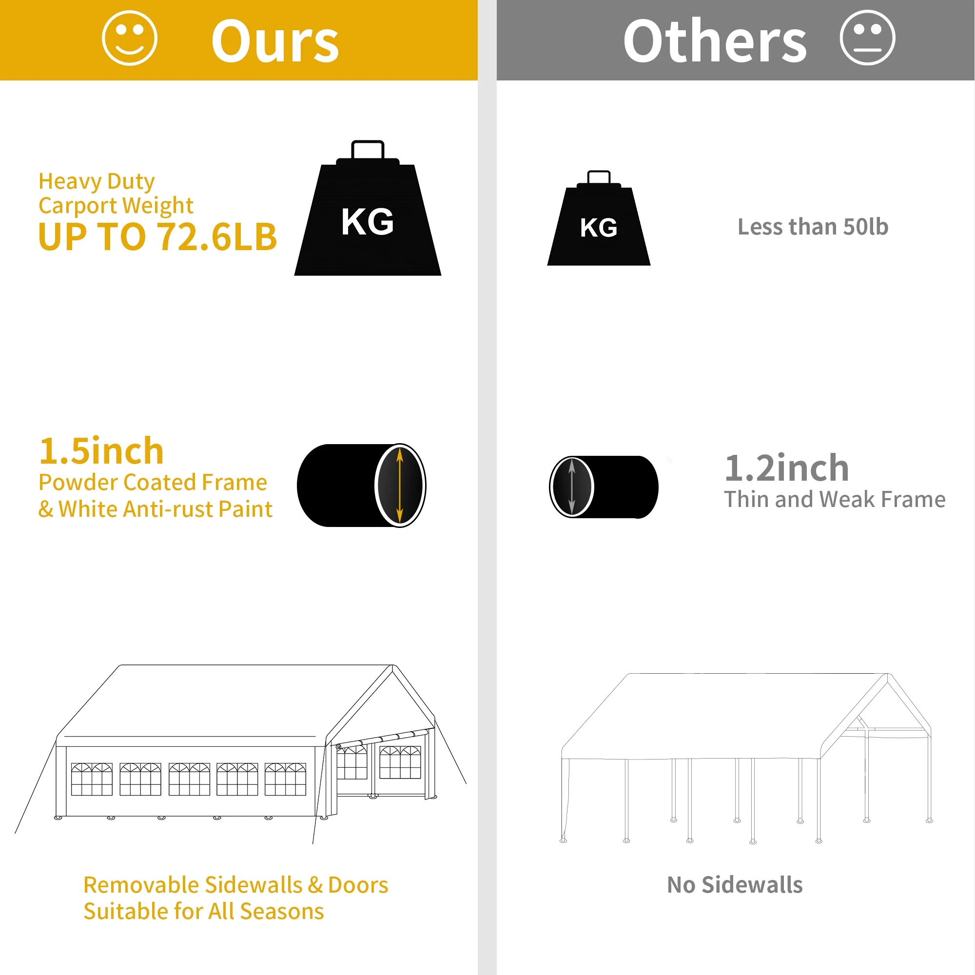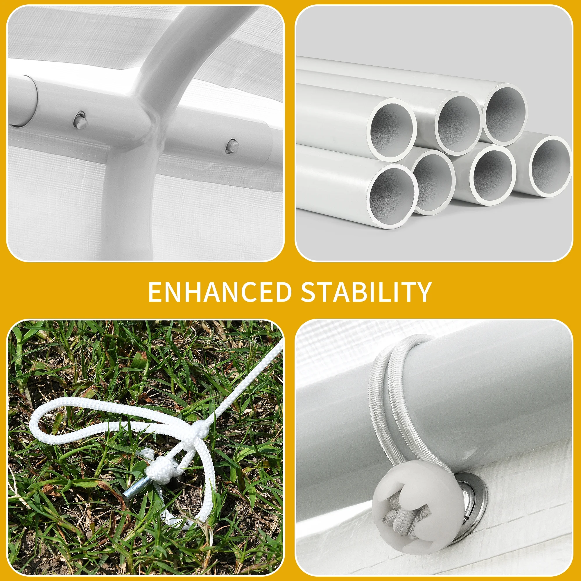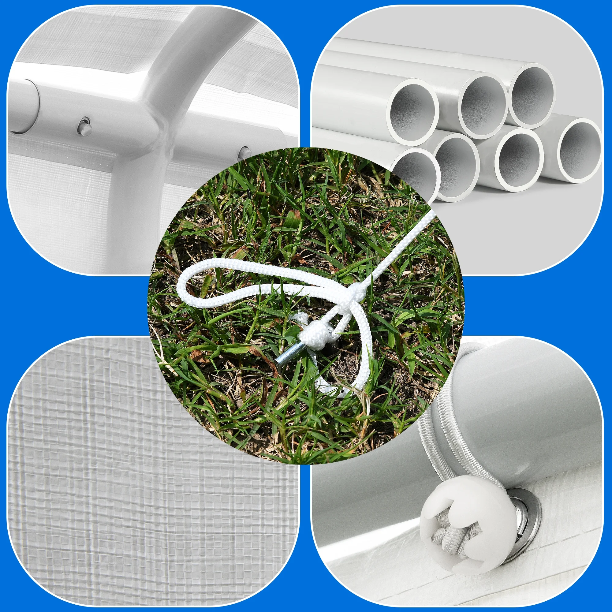 - UPGRADED MATERIAL- Using upgraded 1.65inch galvanized steel pipe, the surface has a white powder-coating to prevent rust and prolong the service life, the 140gPE cloth can carry 2inch of snow, and it is equipped with ground spikes and ropes to make your tent more stable;