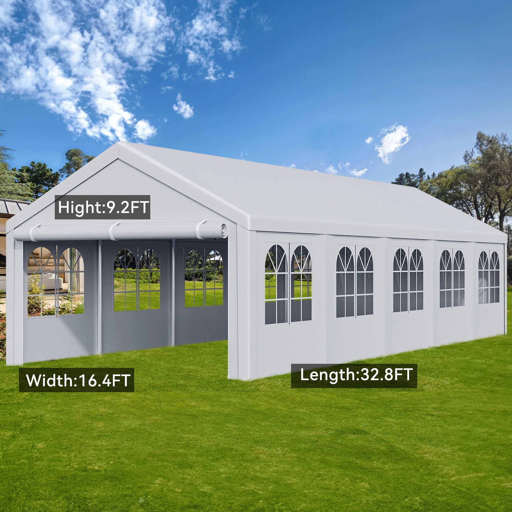 - LARGE SIZE & SPACE- The heavy duty gazebo measures 16x32ft and consists of 10 detachable sidewalls, which can accommodate up to 70 people for gatherings or hosting parties;