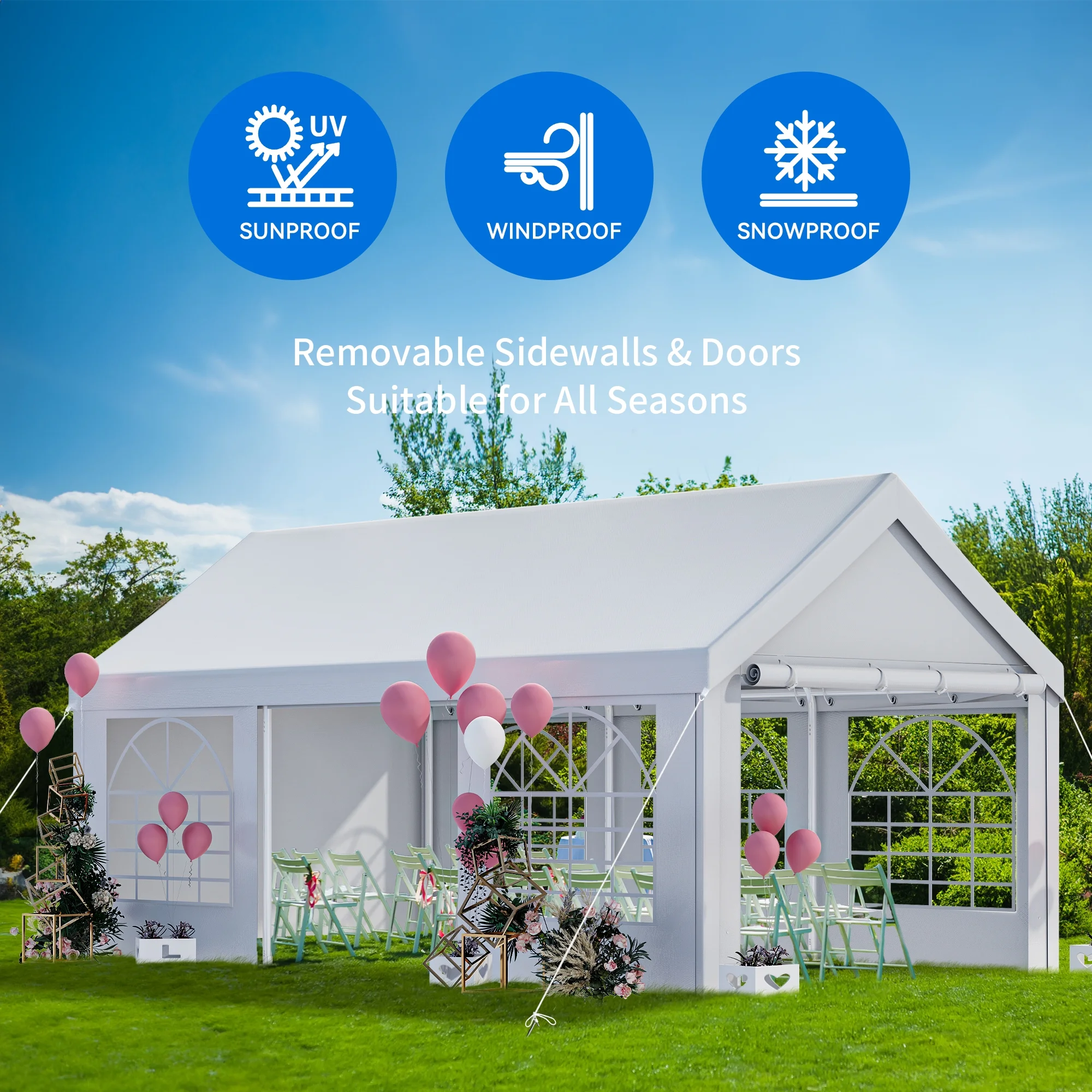 - MULTIPLE USES- Heavy Duty party tents are perfect for weddings, parties, conferences, camping and more. It is the best choice for your friends gathering, patio barbecue, birthday party. Package contains several boxes, The outer box may arrive in different time periods, Please find the customer service inquiry number or wait patiently