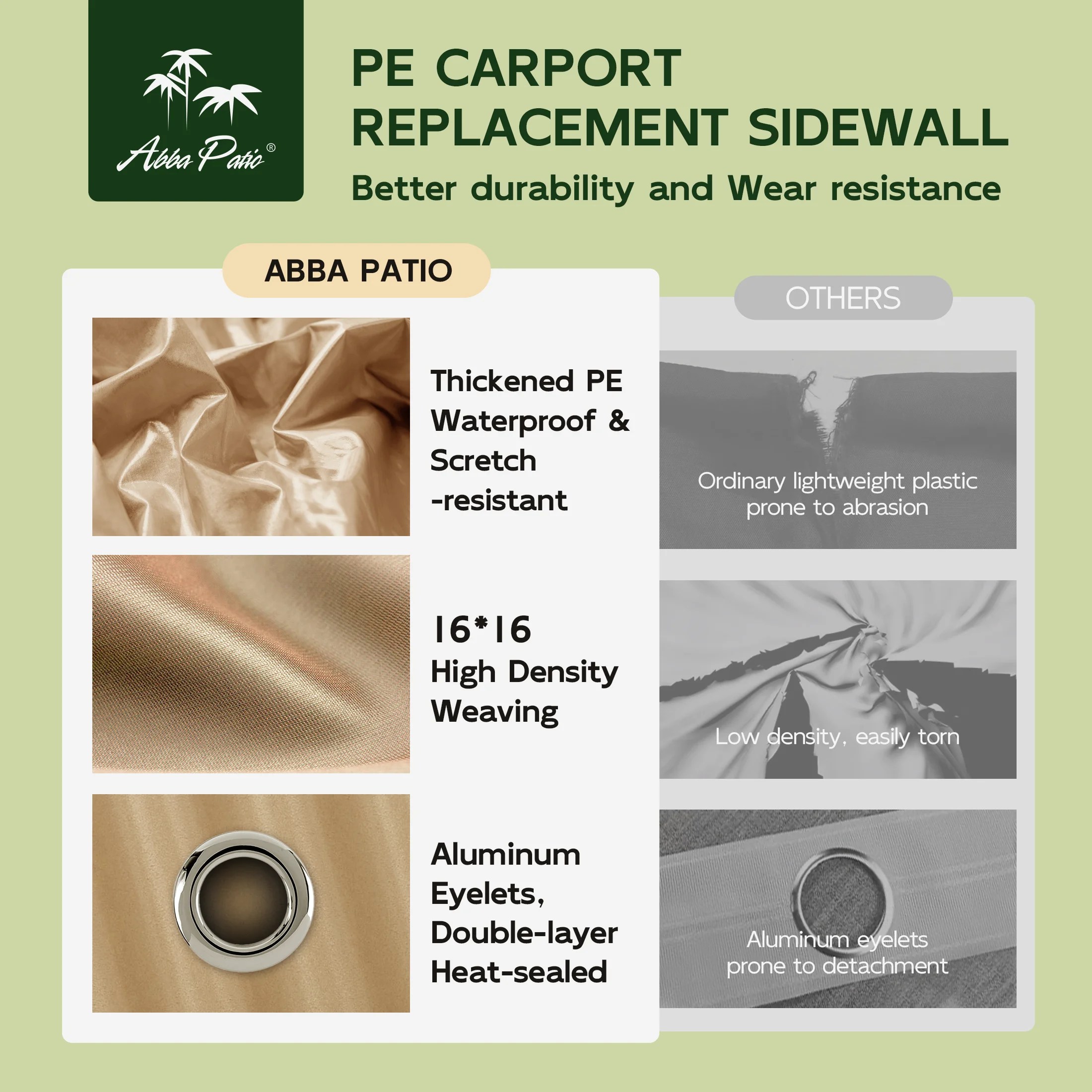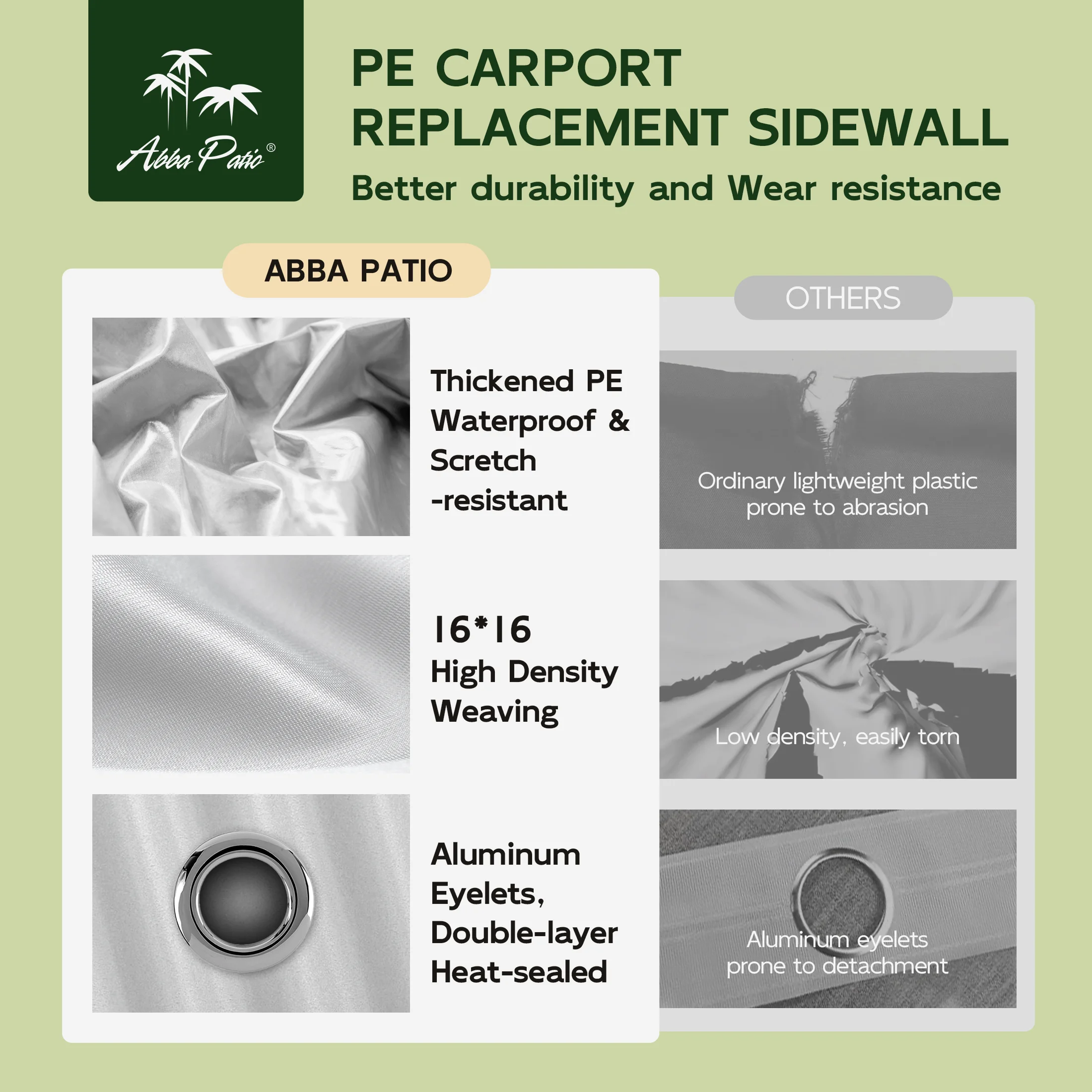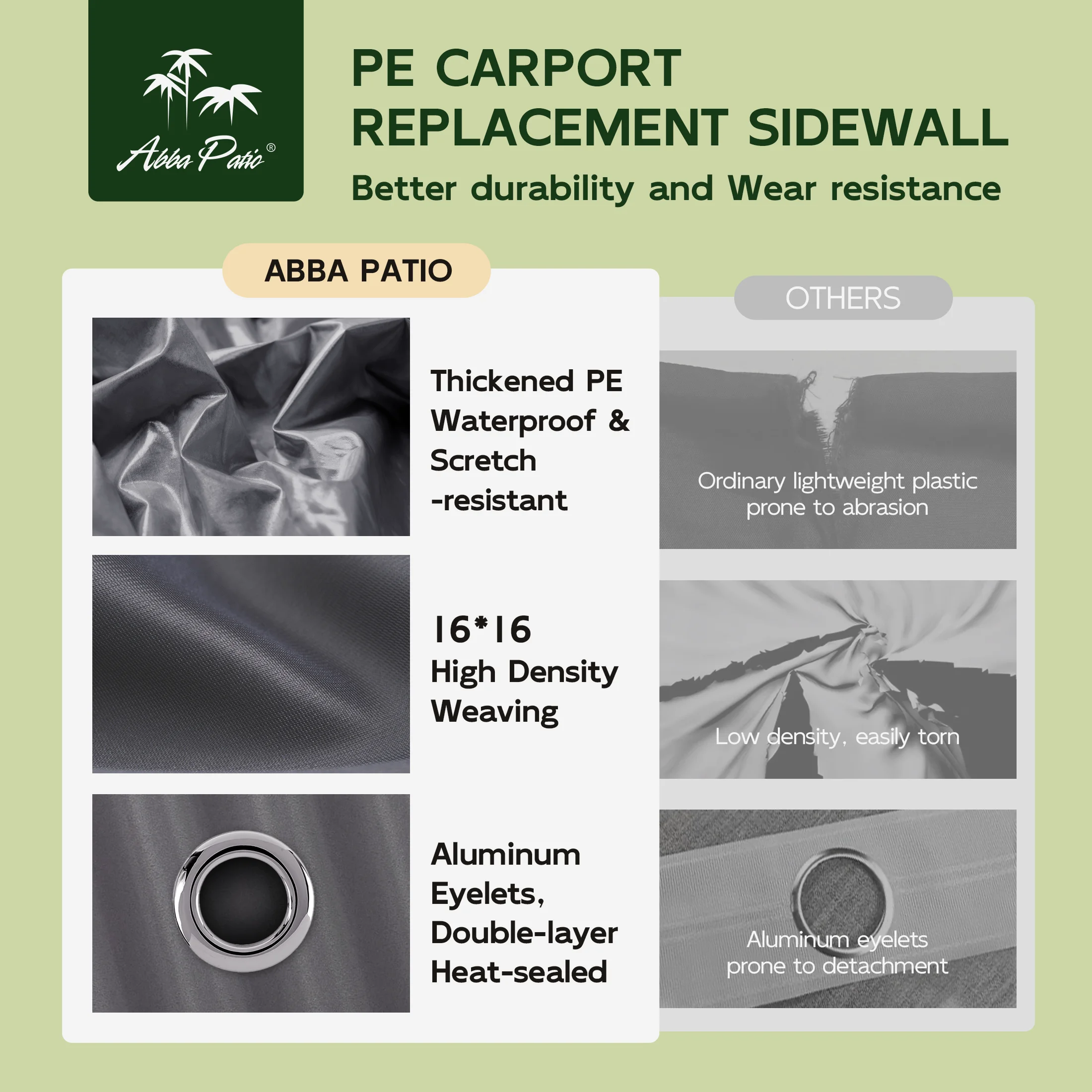 - Triple-layer Sun-proof PE Fabric: Made from 3 layers of heat-sealed PE fabric, our carport replacement canopy cover is resistant to high temperatures, strong wind, and water. It is fade-resistant and doesn't tear easily, enabling the whole carport to accompany you for a long-lasting time. We got you covered. Note: (Frame is not included)