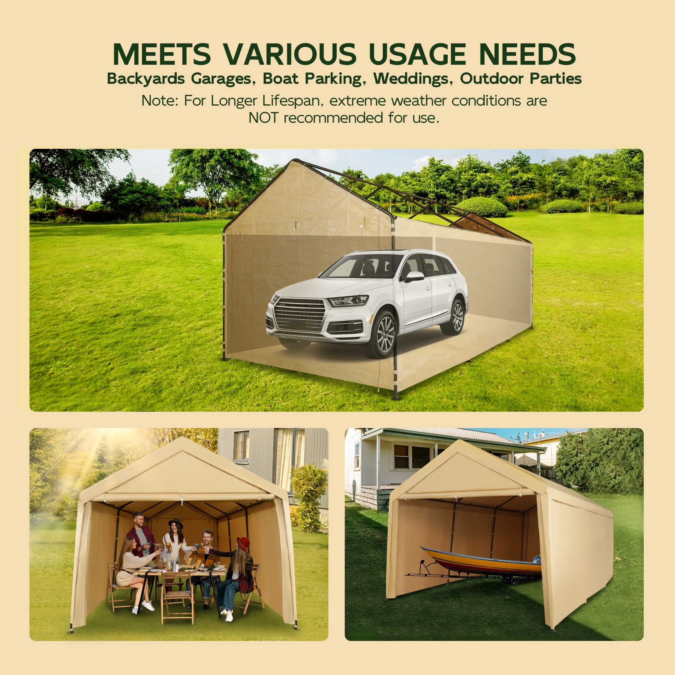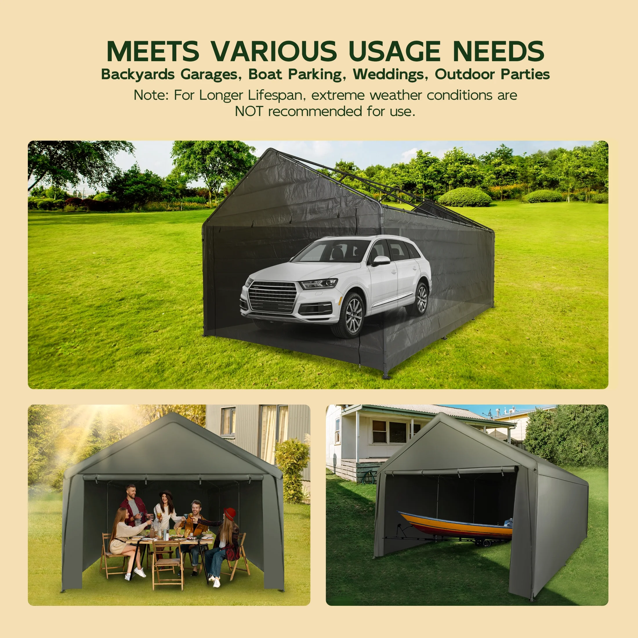 - More Than A Carport Cover: Create a day to remember. Our carport replacement canopy tent is a must-have for vehicles and outdoor activities. Whether you want to hold an outdoor wedding or gathering, park your car, or enjoy a barbecue, it will always be by your side, no matter the conditions.