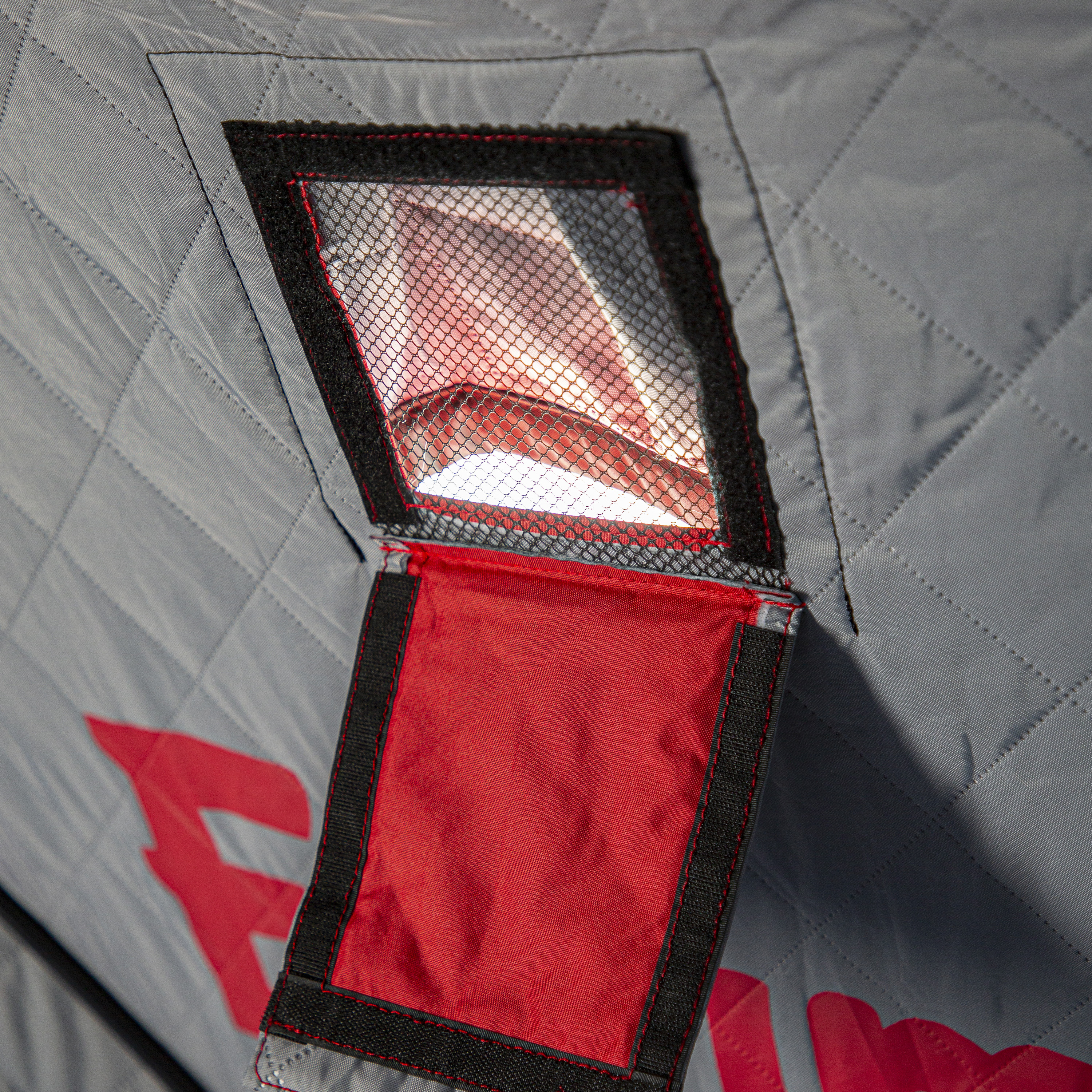 • Interior window flap hook-and-loop retainer strips