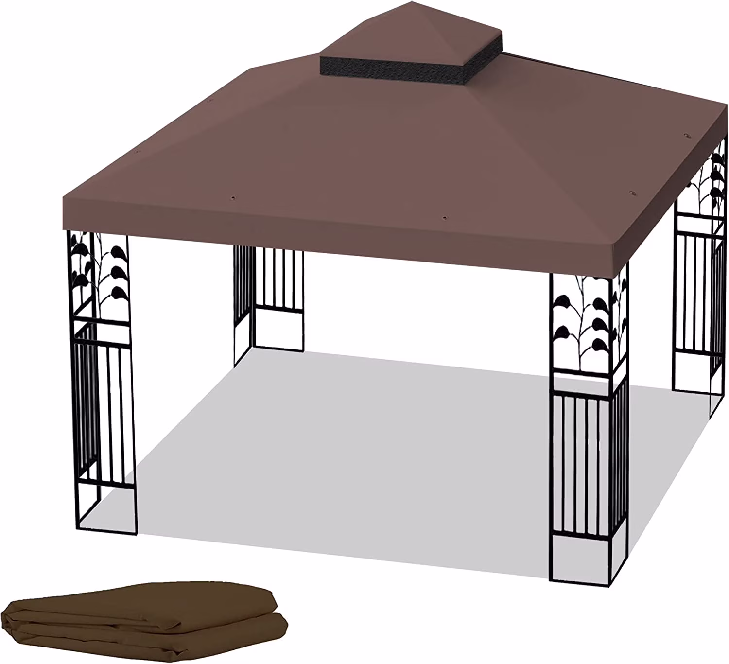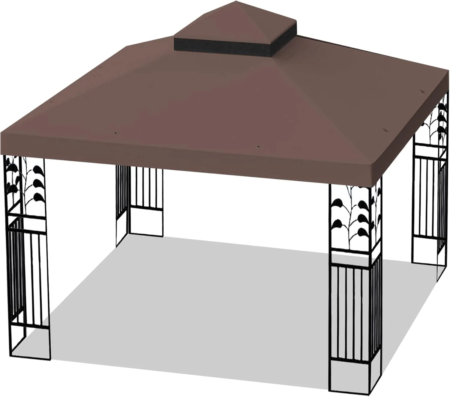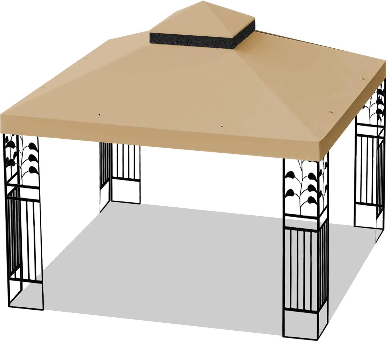 10x10 Ft Outdoor Patio Gazebo Replacement Canopy,Double Tiered Gazebo Tent Roof Top Cover Only(Frame Not Include)