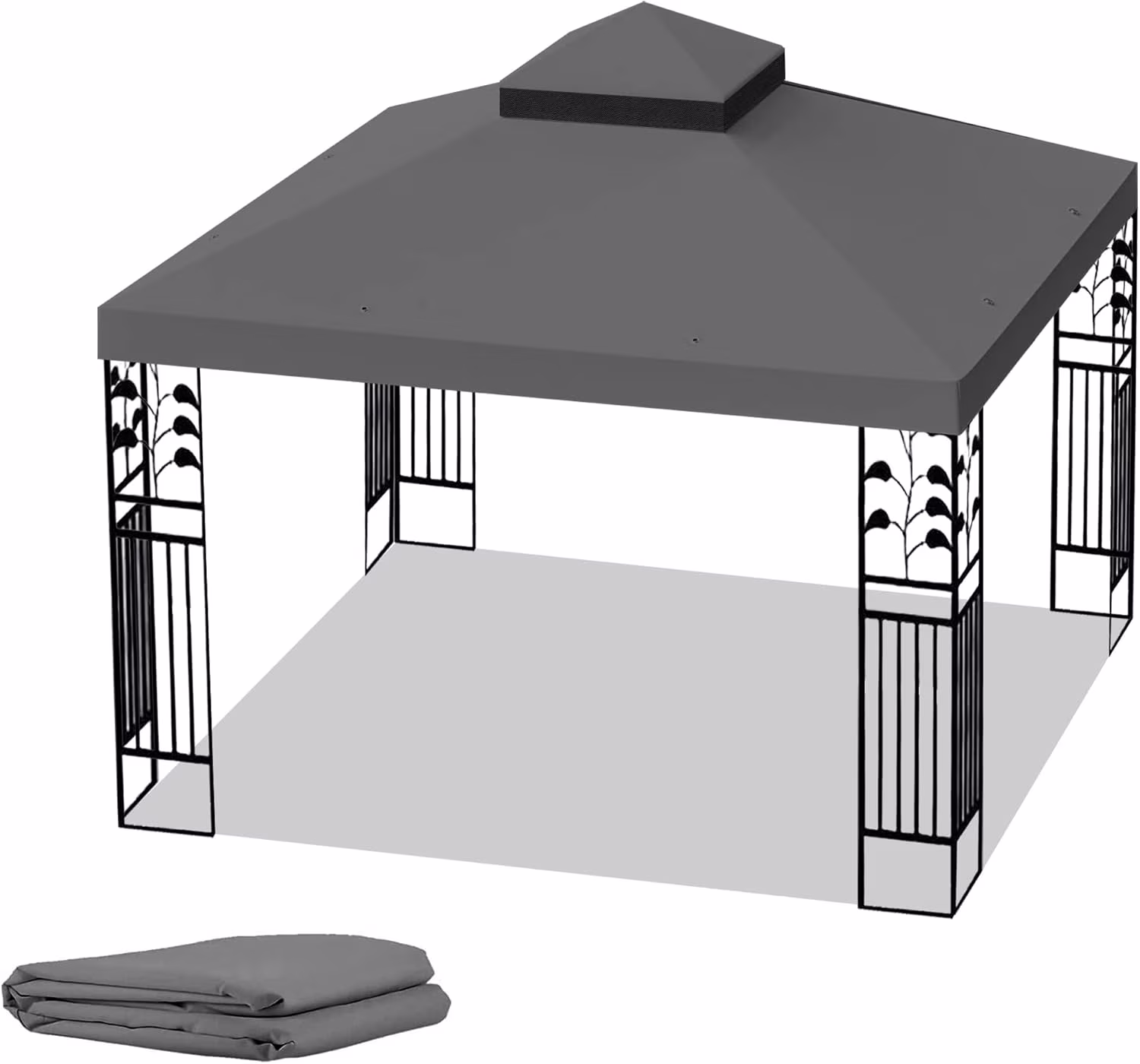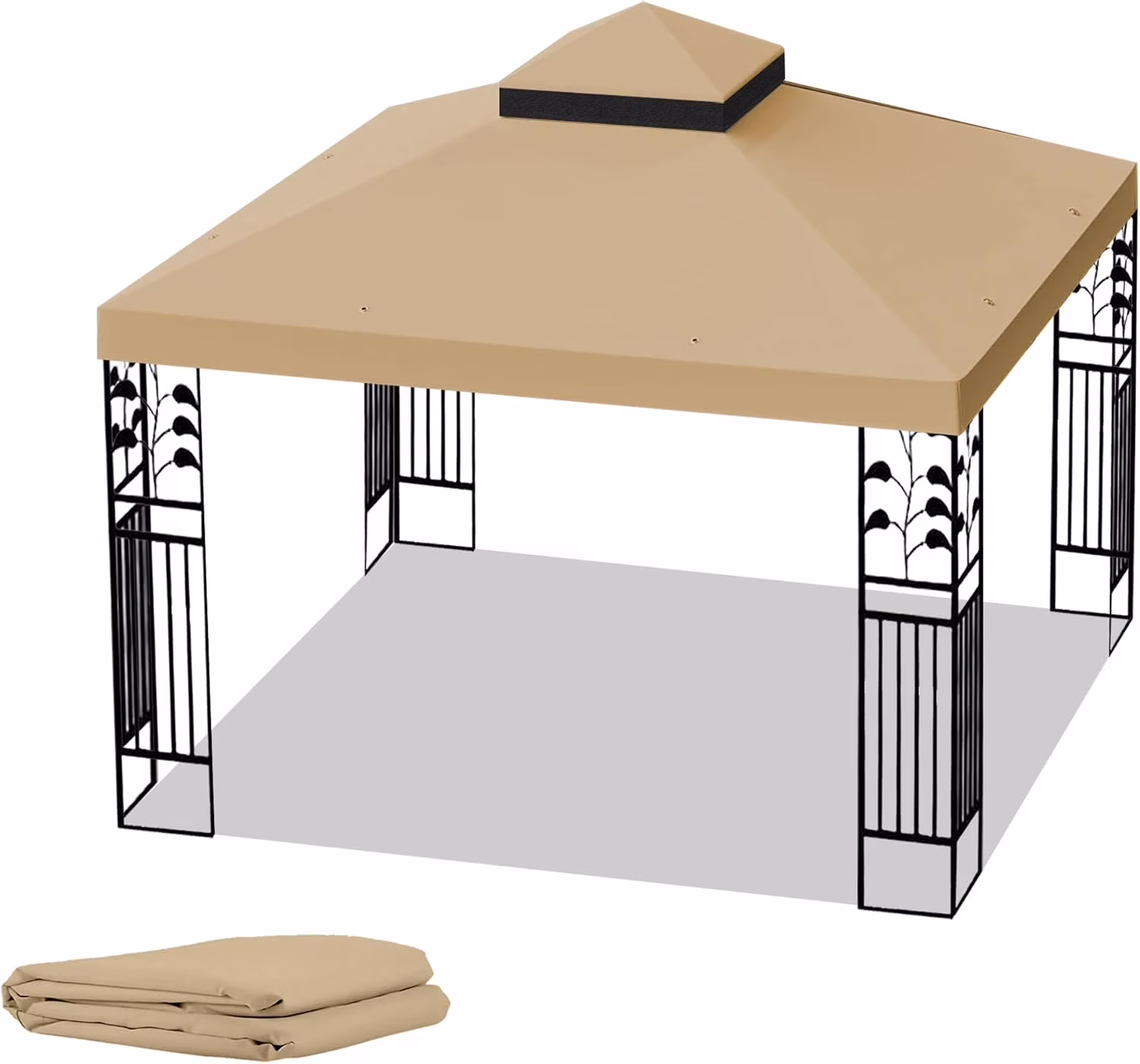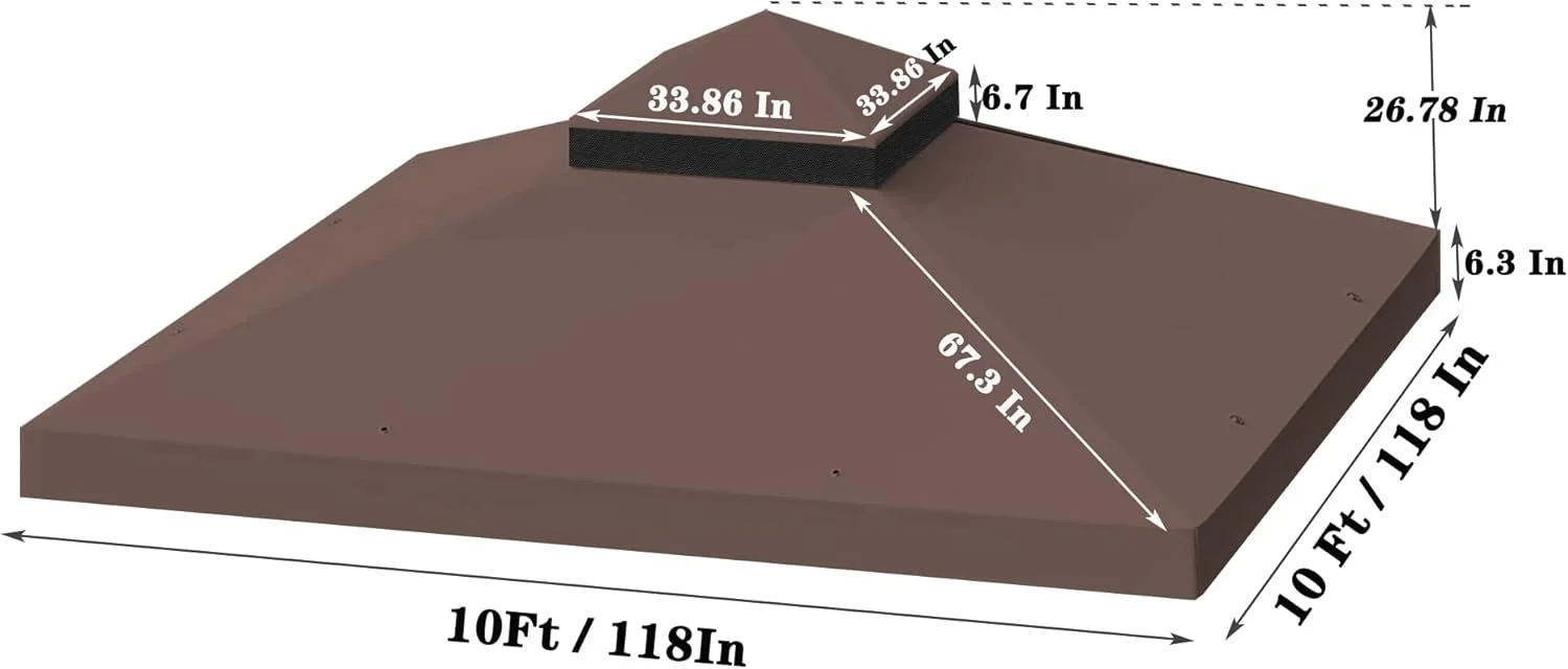 - ✅Perfect Fit for 10x10 Ft Gazebo Frames: This 10 x 10 gazebo canopy replacement cover is specifically tailored for 10x10 Ft gazebo frames. The base cloth measures 118 x 118 inches (300x300 cm), ensuring a snug fit. Before purchasing, please confirm the dimensions of your existing frame to ensure compatibility. This 10x10 gazebo replacement top does not include the metal structure.
