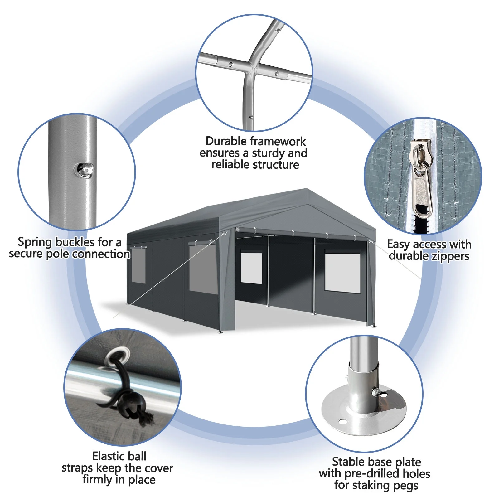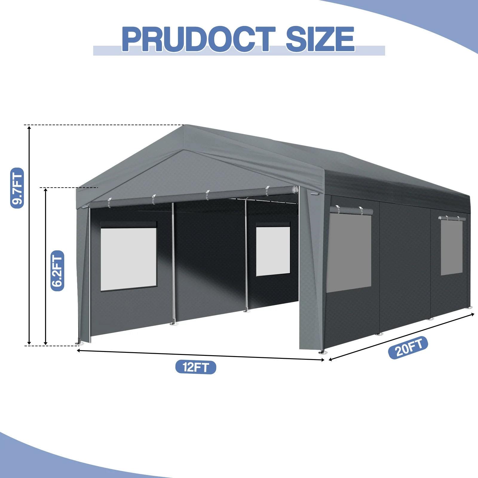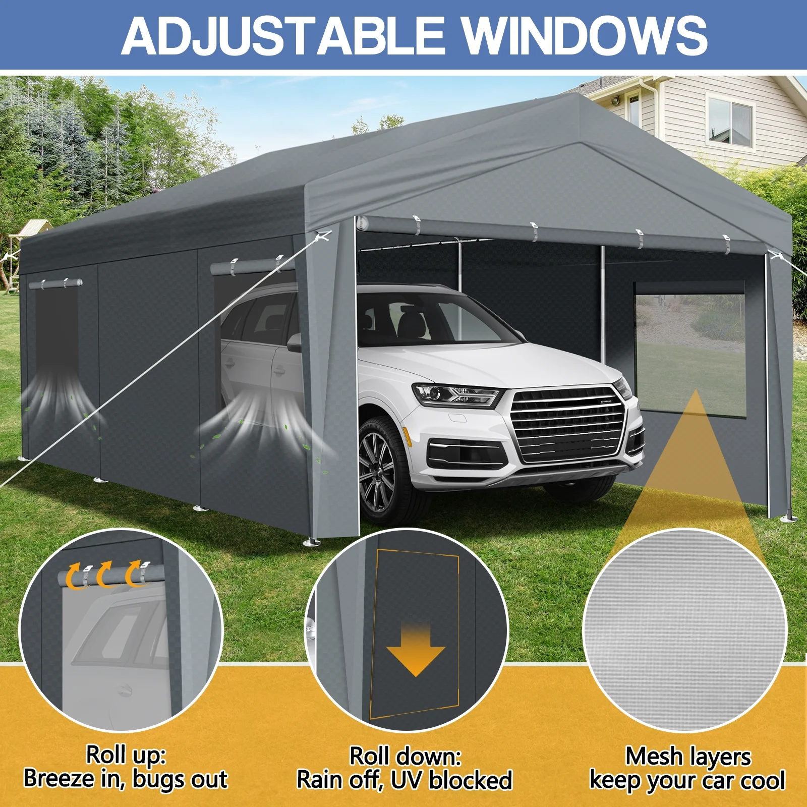 [VERSATILE DESIGN] Equipped with removable sidewalls and doors, this carport canopy can be adapted for various uses, from vehicle protection to hosting outdoor events like parties and fairs.