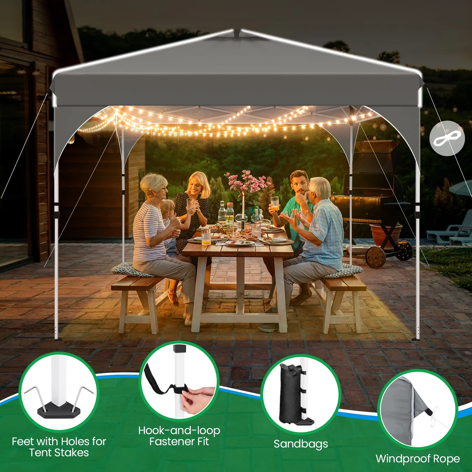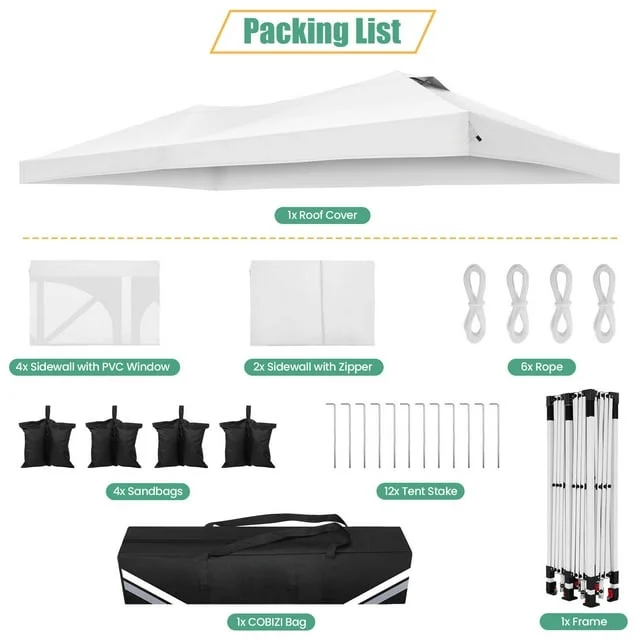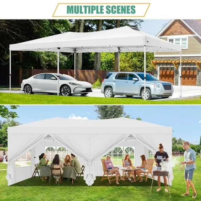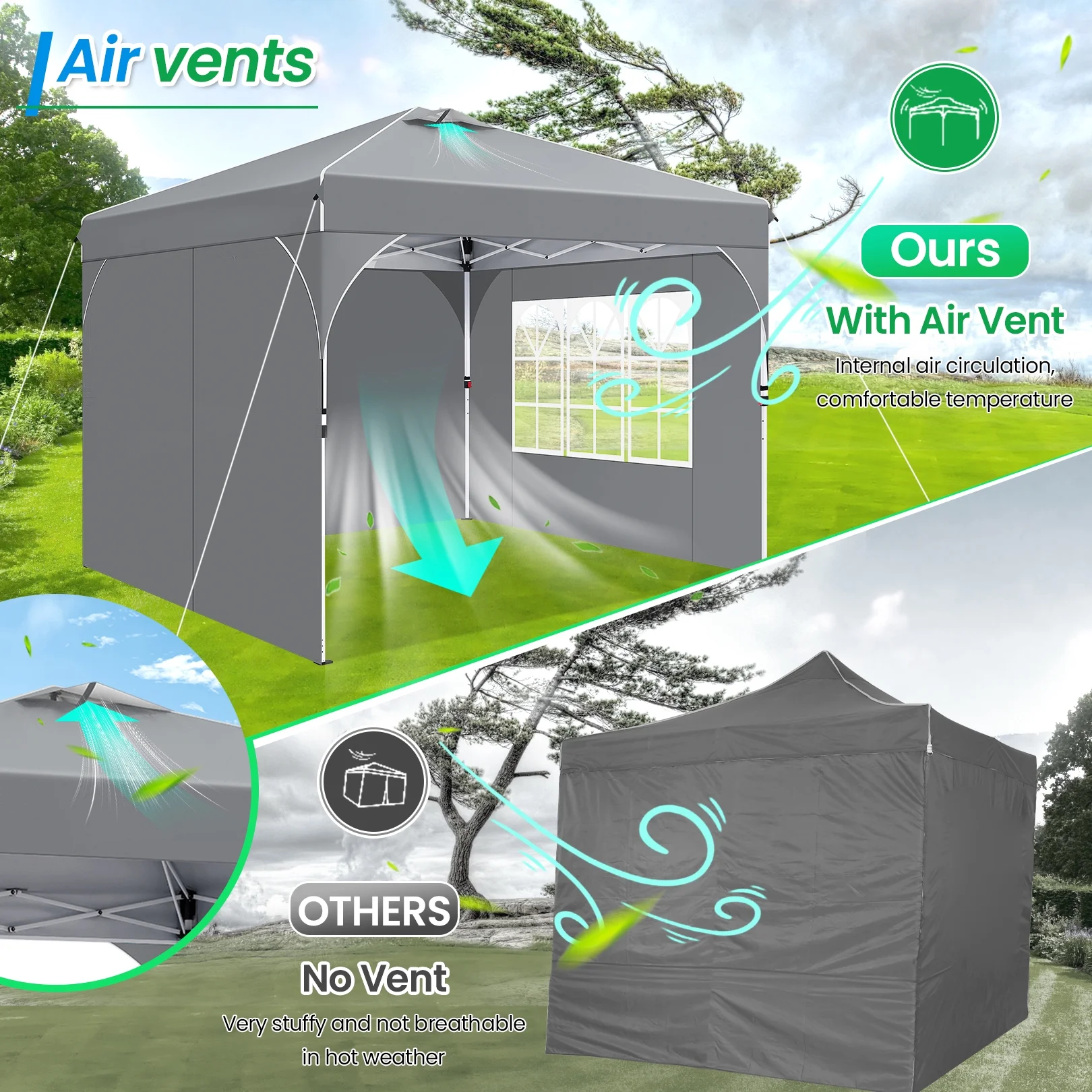 🌞—�?0x10 Ft & 3 Height Adjustable: This outdoor canopy height can be adjusted from 8.1' to 8.5' easily. This party tent can hold about 15 people with a table & chairs.
