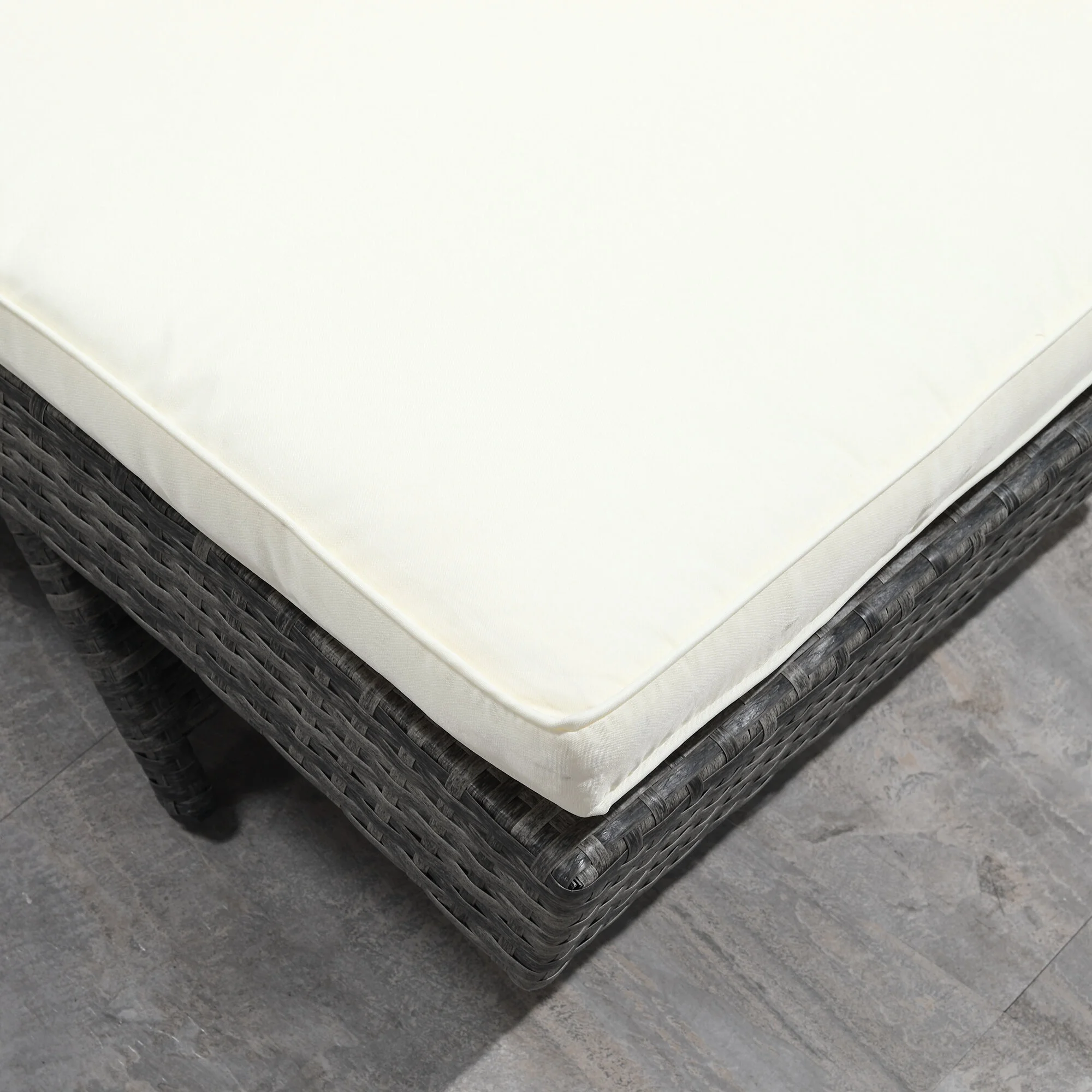 DUOSONG Outsunny 27 Gallon Patio Wicker Storage Bench, Outdoor Pe Rattan Patio Furniture, 2 - in - 1 Large Capacity Rectangle Garden Storage Box with Handles and Cushion, Cream White Brown+White Steel