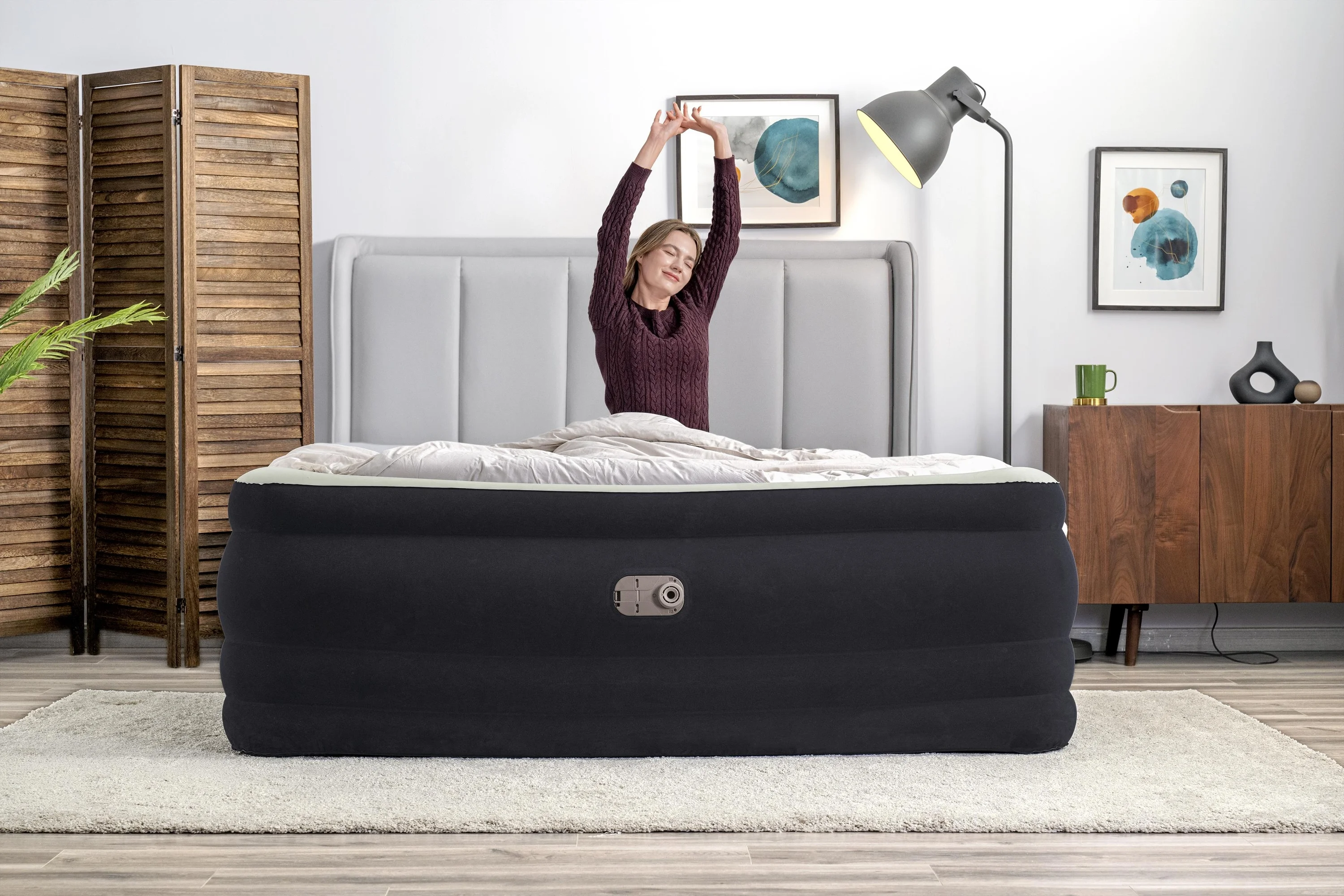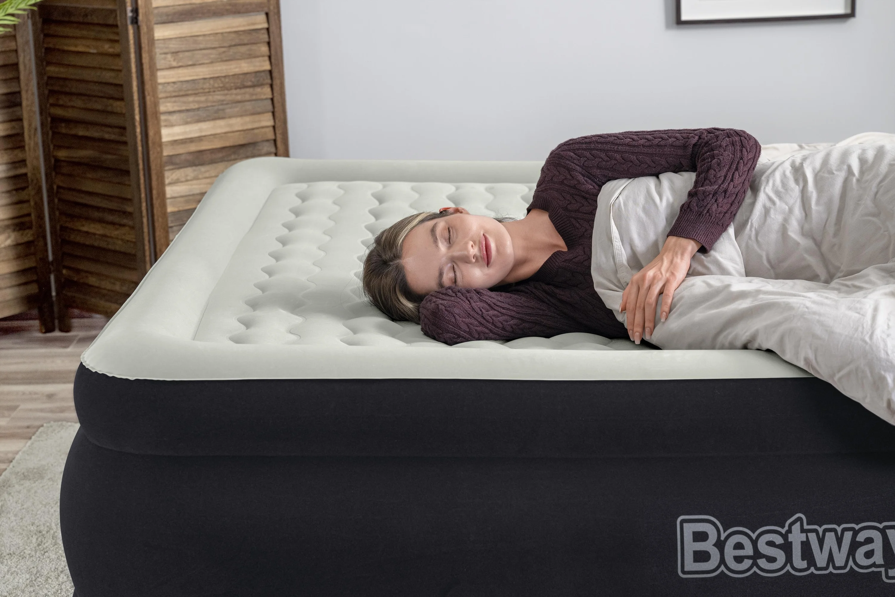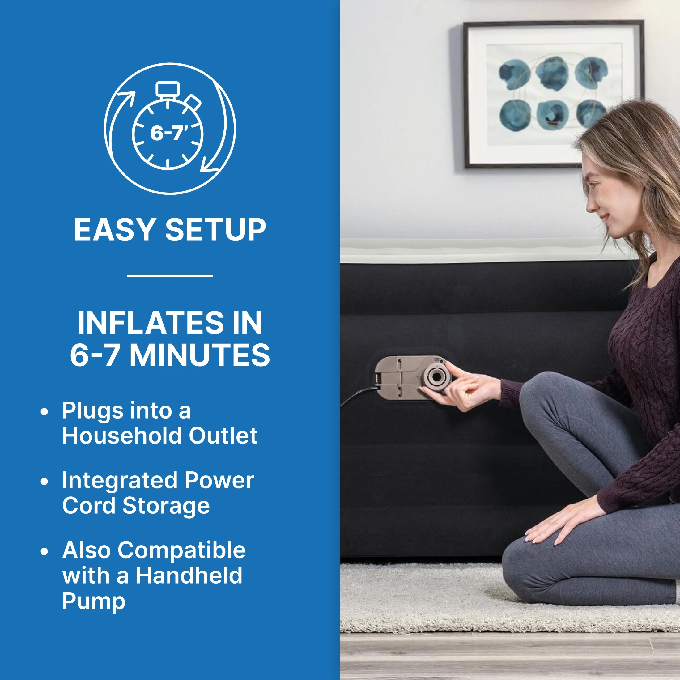 - Built-in 110-120V AC pump inflates the mattress in 6-7 minutes