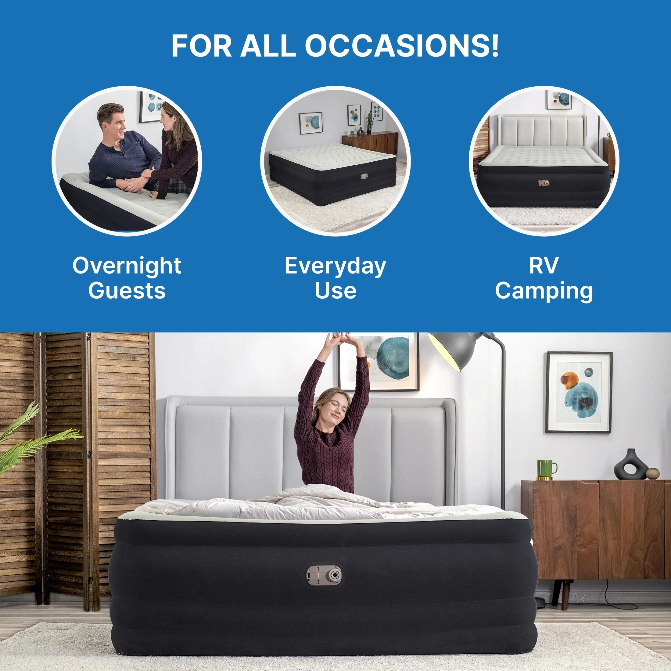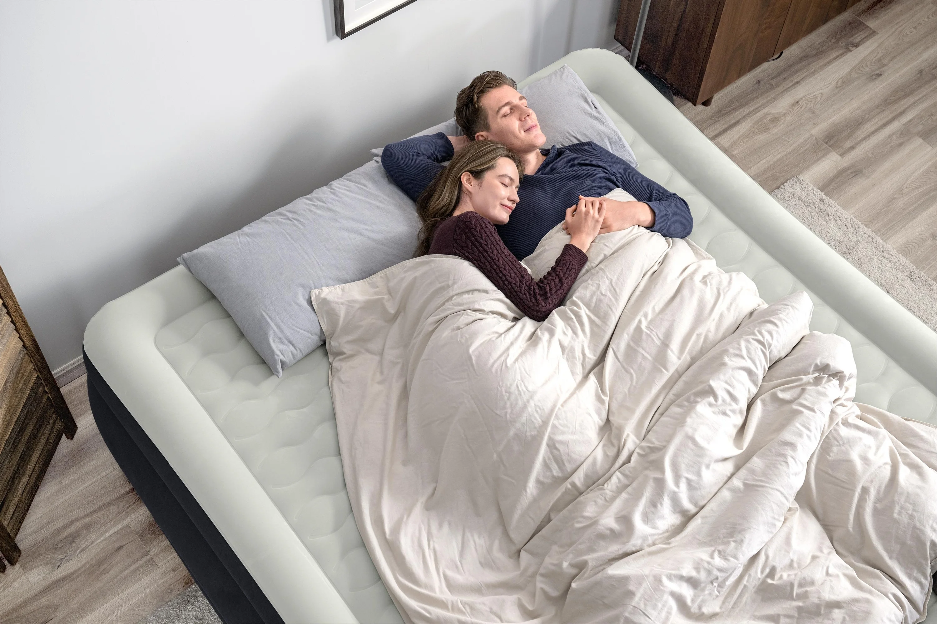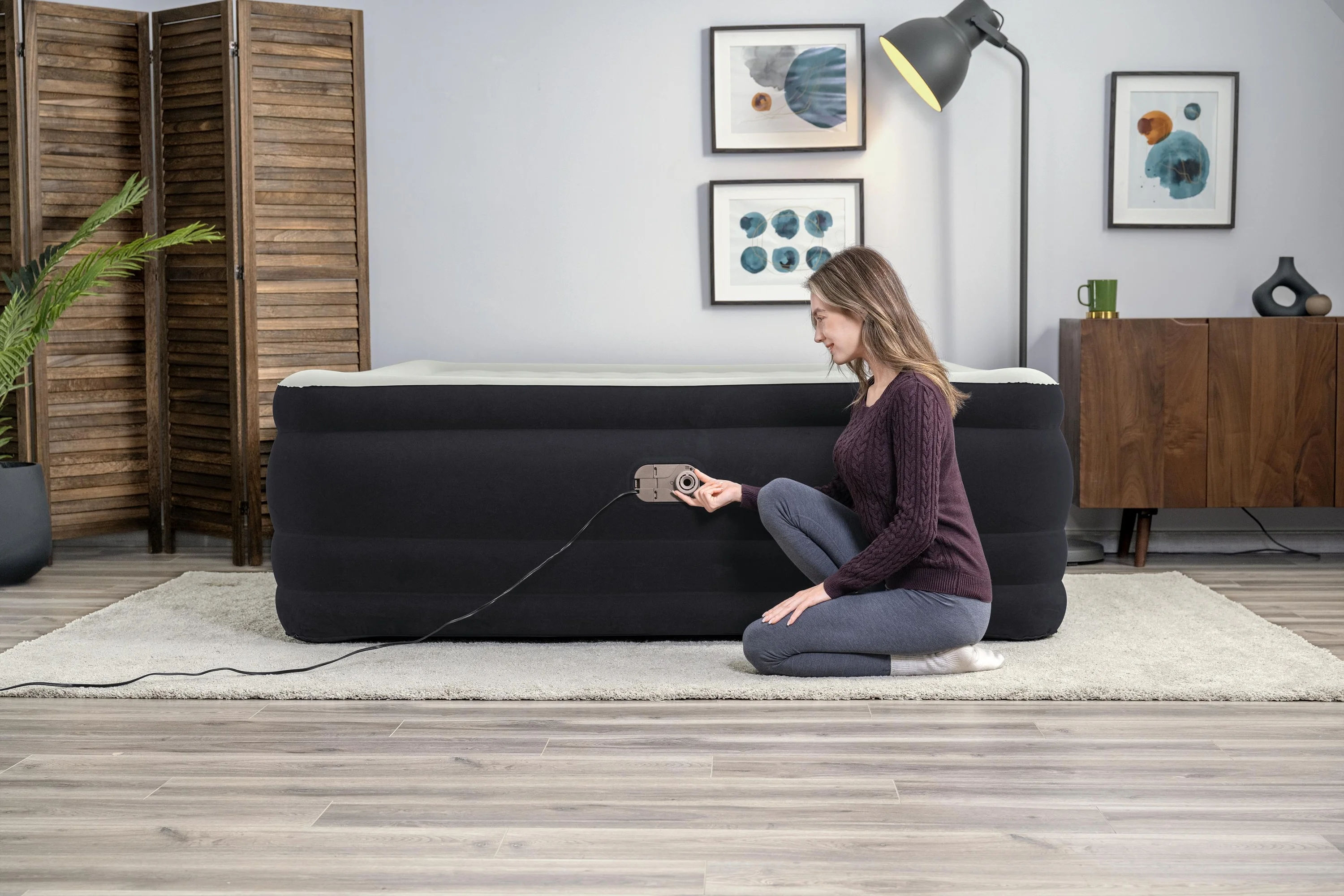 - Built-in 110-120V AC pump inflates the mattress in 6-7 minutes
