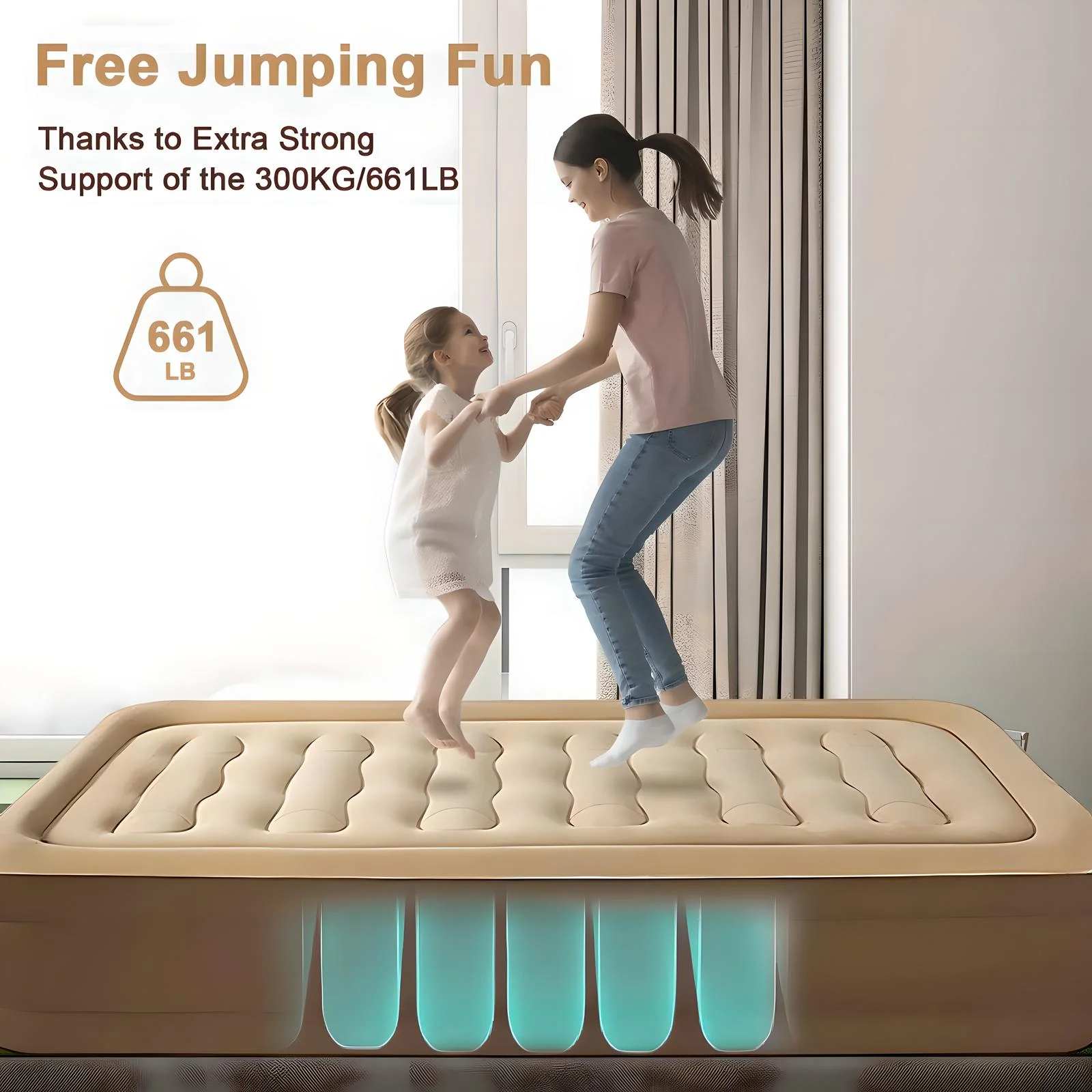 - Quick Inflation and Deflation: Equipped with a built-in electric pump, this mattress inflates in just minutes. The easy-to-use design allows for quick deflation as well, making storage and transportation hassle-free.
