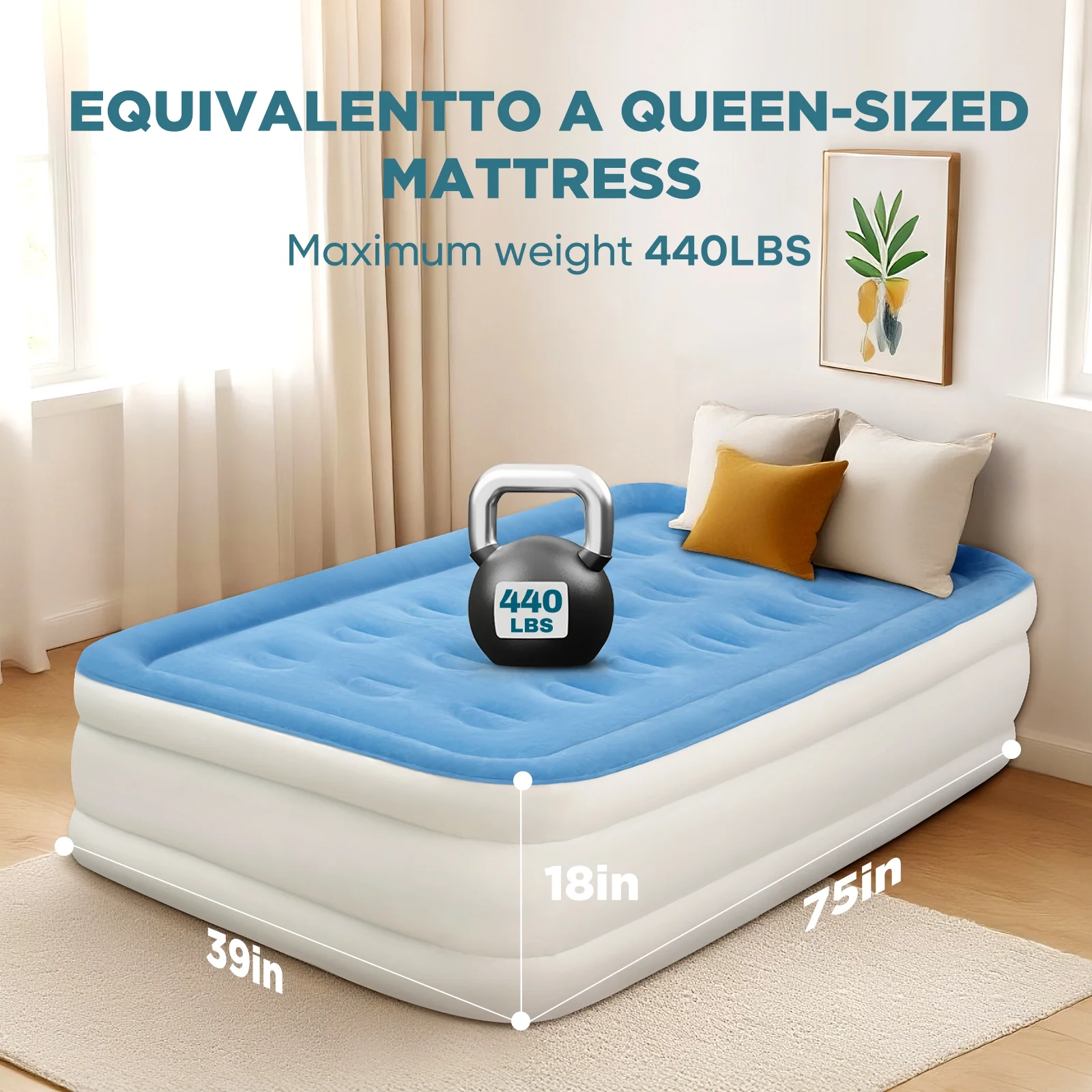 - Space-Efficient Design: When inflated, the queen air mattress measures 80��60��18 inches. When deflated, it conveniently folds down to just 17��7��13 inches and comes with a storage pouch for tidy storage in a cabinet, keeping it out of sight until needed. It's quick to set up for overnight guests and ready to use at a moment's notice.