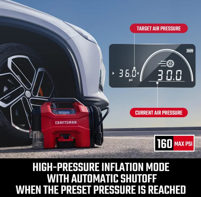 - High-Performance Inflation: 160 PSI output inflates most car tires in 4 minutes with auto shut-off and ��1 PSI accuracy