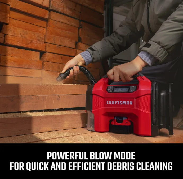 CRAFTSMAN 3 - in - 1 Tire Inflator, 160PSI Portable Air Compressor/Car Vacuum/Dust Blower, 20V Cordless & 12V Car Power, Air Pump with LED Light for Cars Trucks RV Tires (Battery Sold Separately)