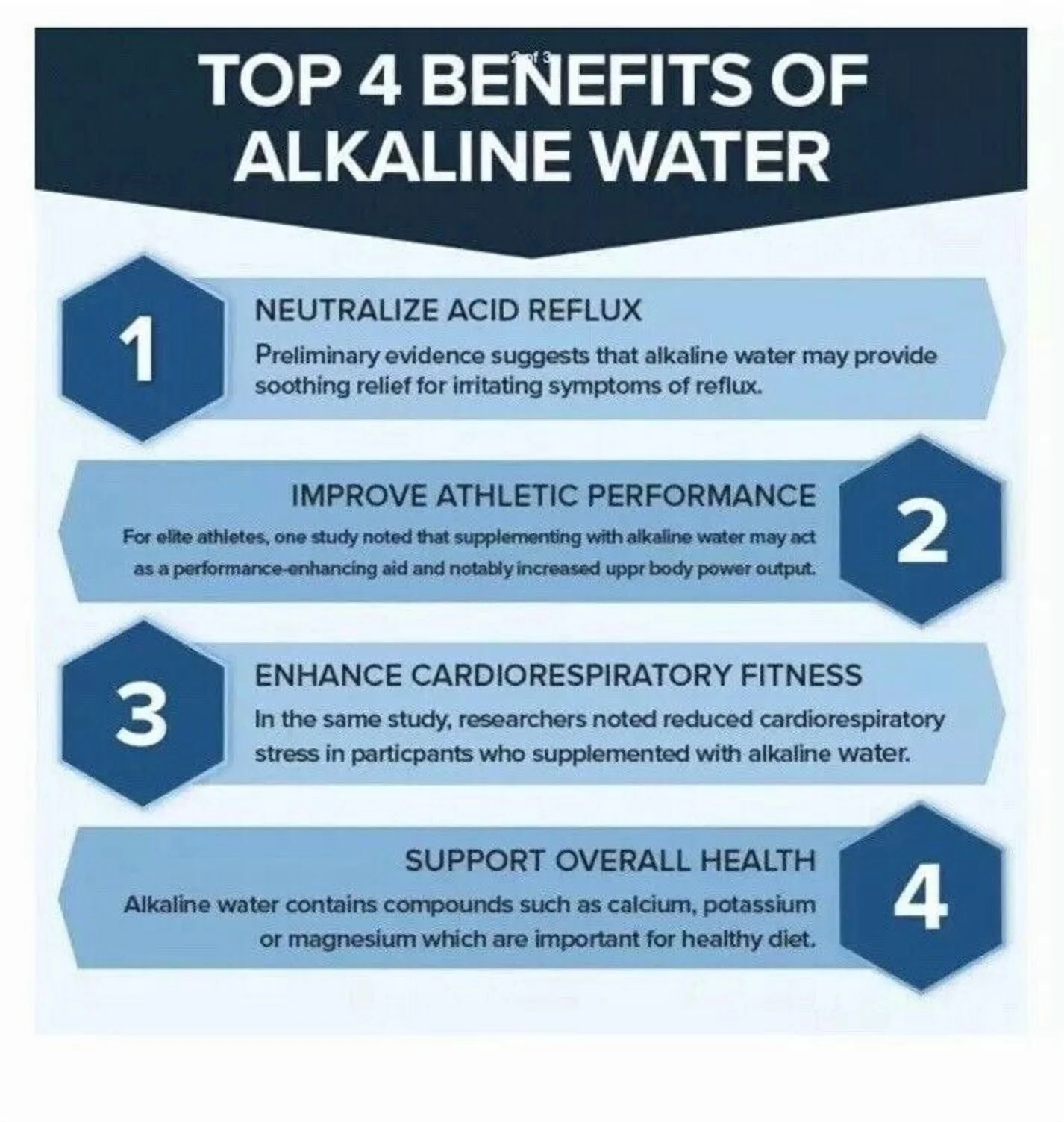 >Alkaline water also helps balance the body's pH, which tends to be acidic because of our high acid food diet, stress and exposure to environmental toxins such as smog.