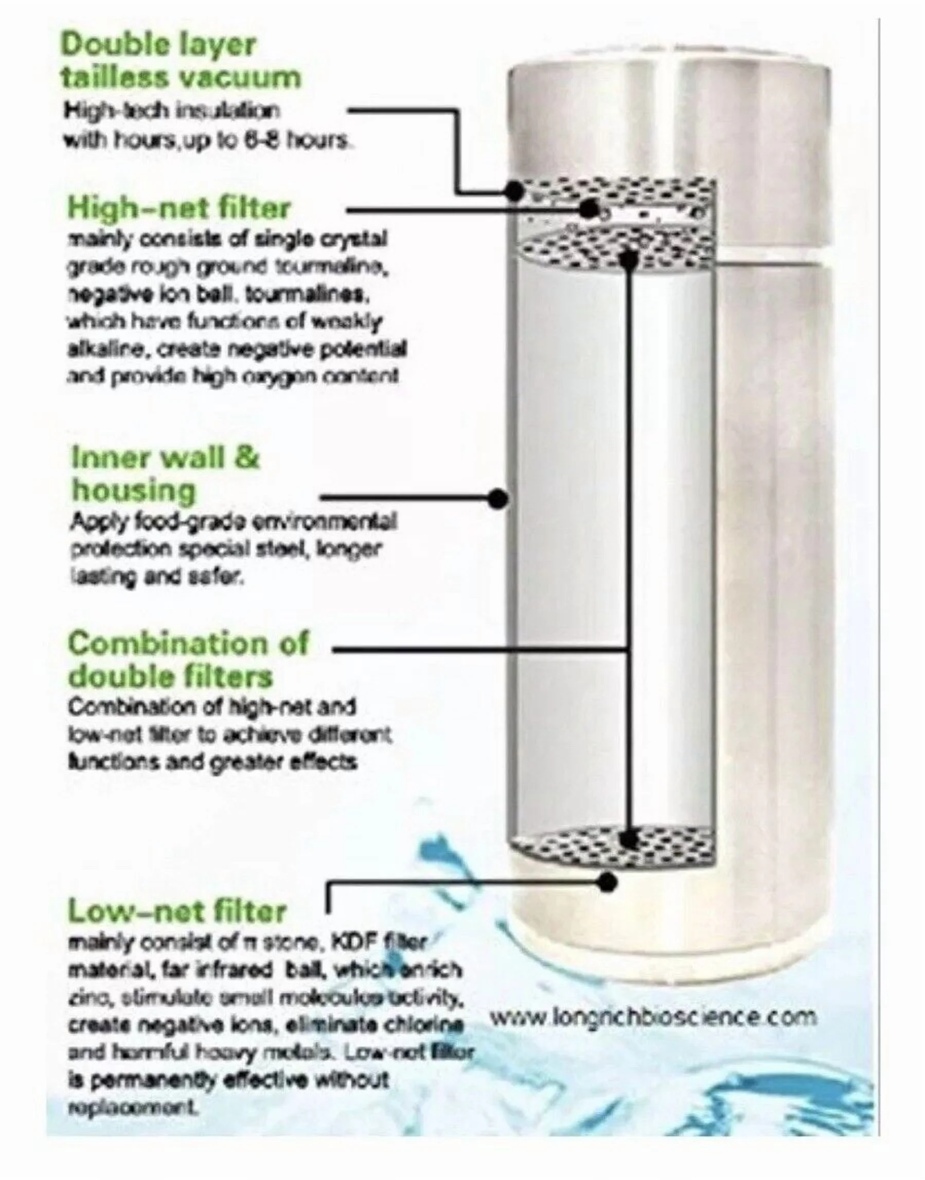 >Zinc-Rich: Upon unique combination of the Pi Cup's filter, rich of supplements, minerals and trace elements according to the most appropriate proportion for human body suitable enough for water absorption, it also can effectively strenghten the rate of zinc extraction to 100% plus enhance human immunity.