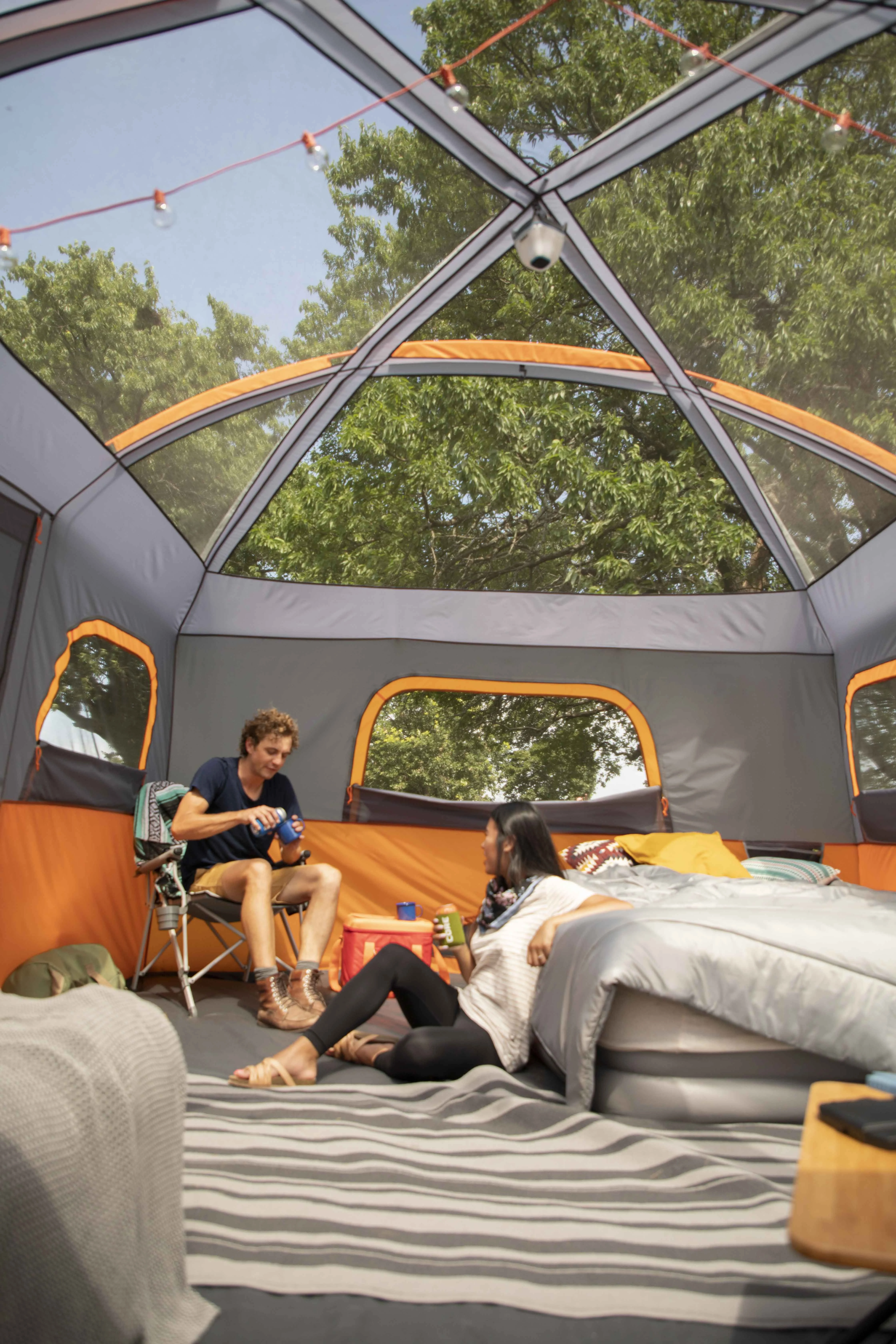 - Multi-room options: enter from the front T-Door or back D-Door. Attach the included room divider to create separate living and sleeping spaces.