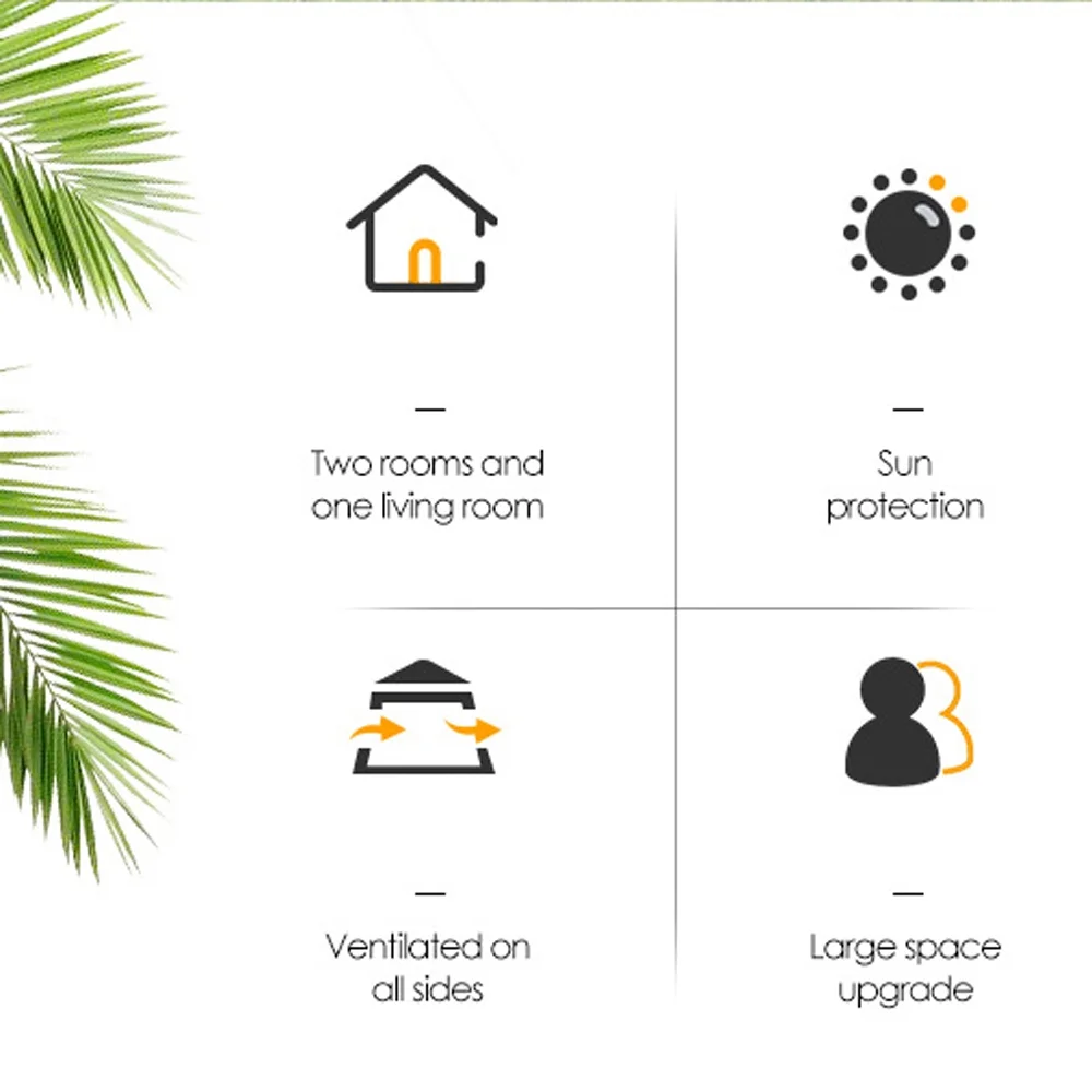 - Features 2 divided curtains to create 3 separate rooms for added privacy