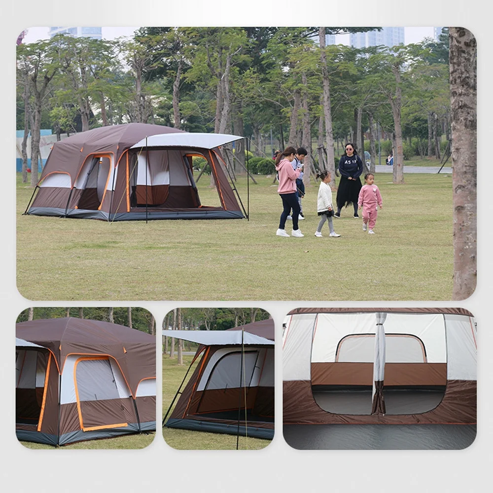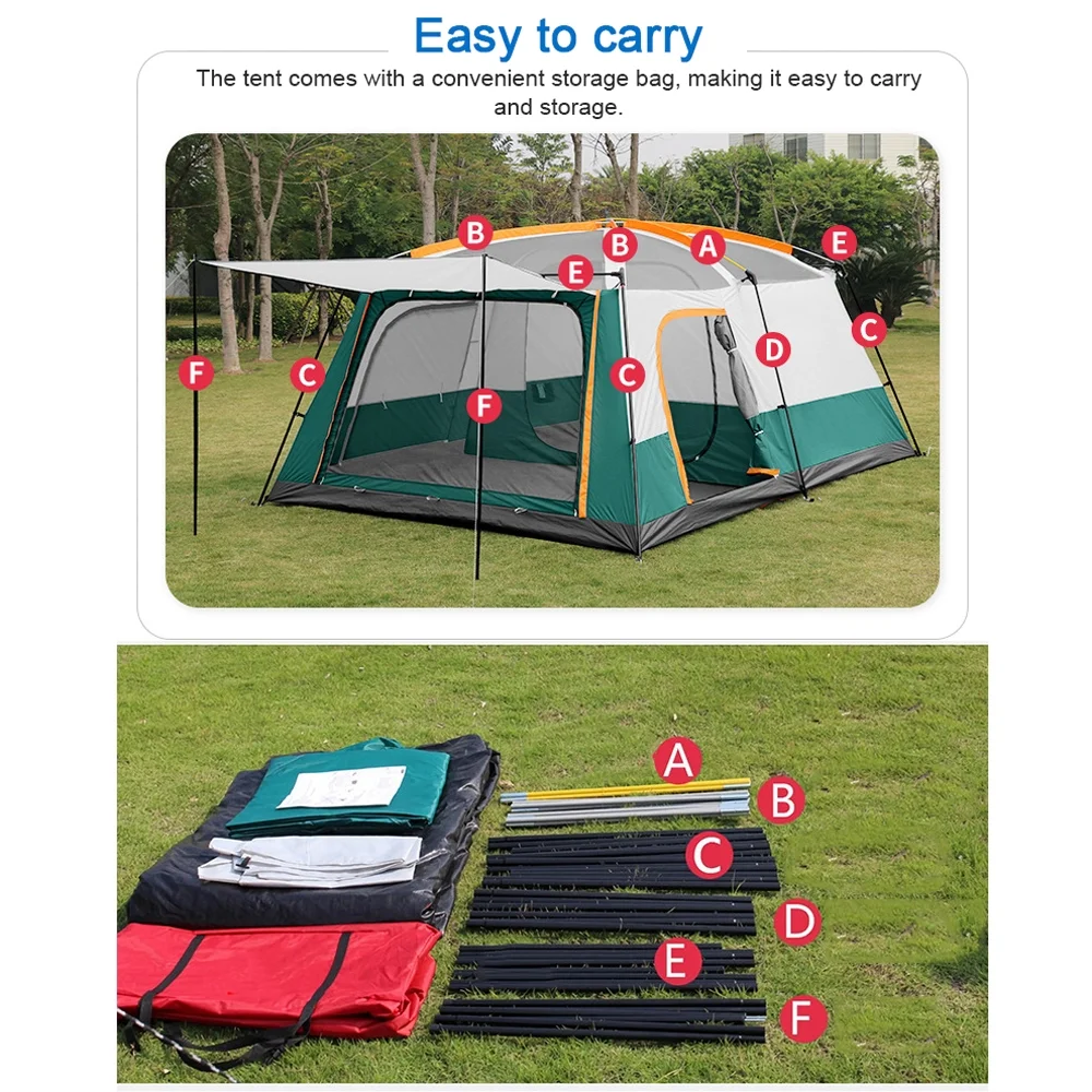 - Spacious camping tent for 8-12 people, fits 3 queen air mats and other camping gear