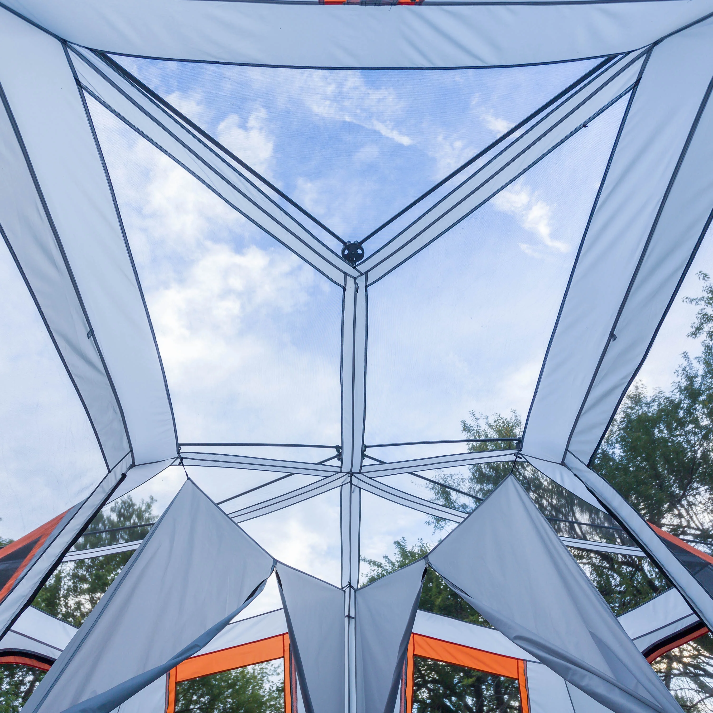 - Ozark Trail 12 person instant cabin tent measures: 20' x 18'